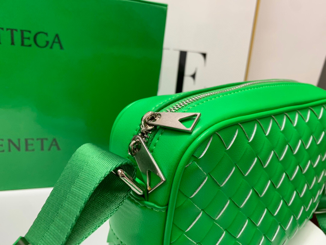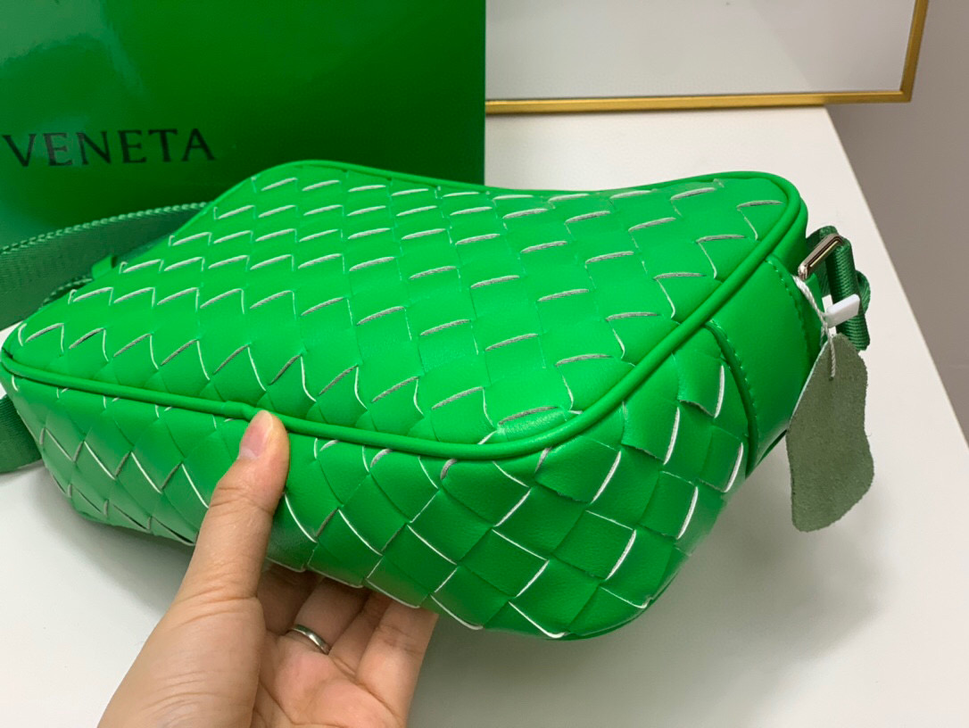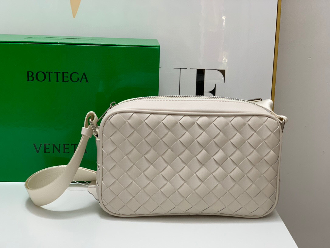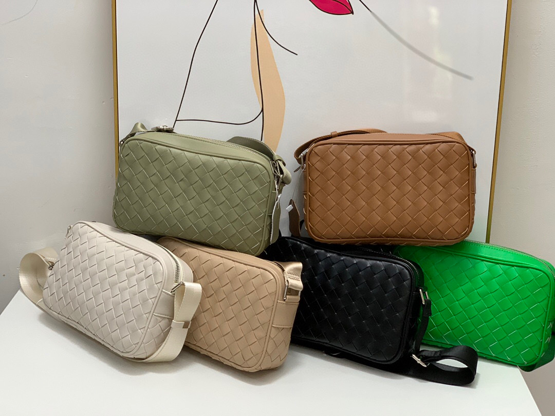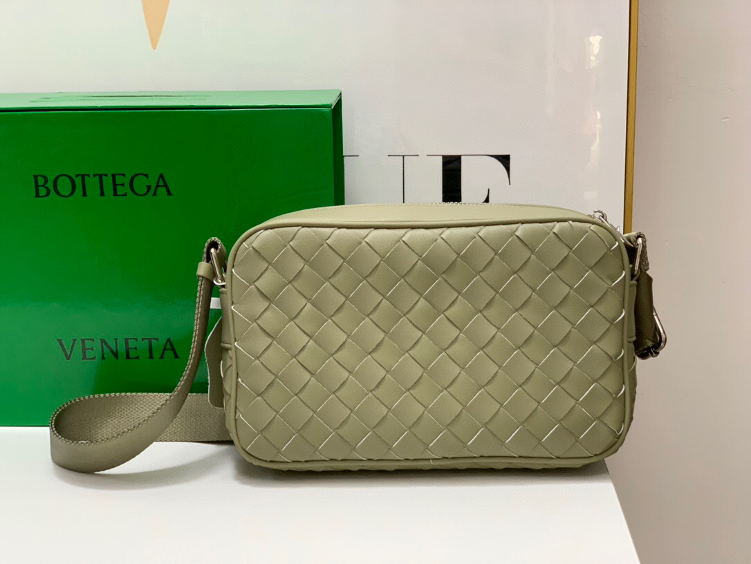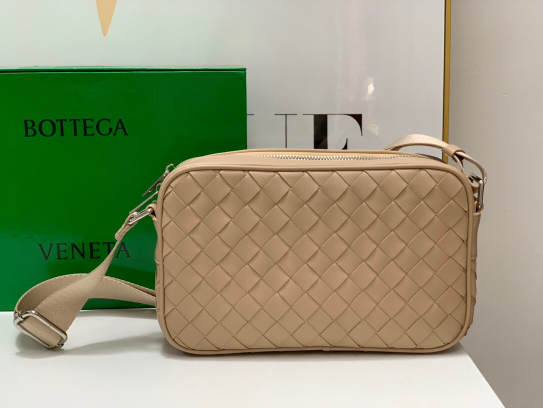 Bolsa tiracolo pequena com trama Intrecciato marrom de couro, Bottega Veneta. Com detalhe de nó, fechamento por zíper e acabamento mate.