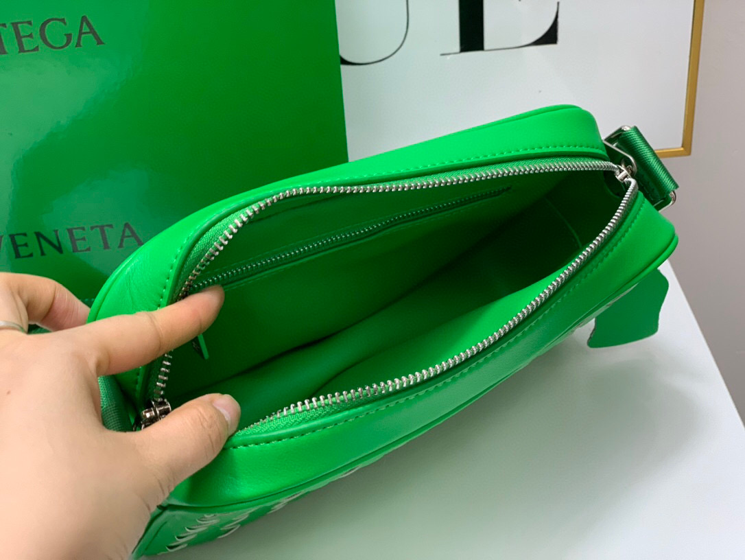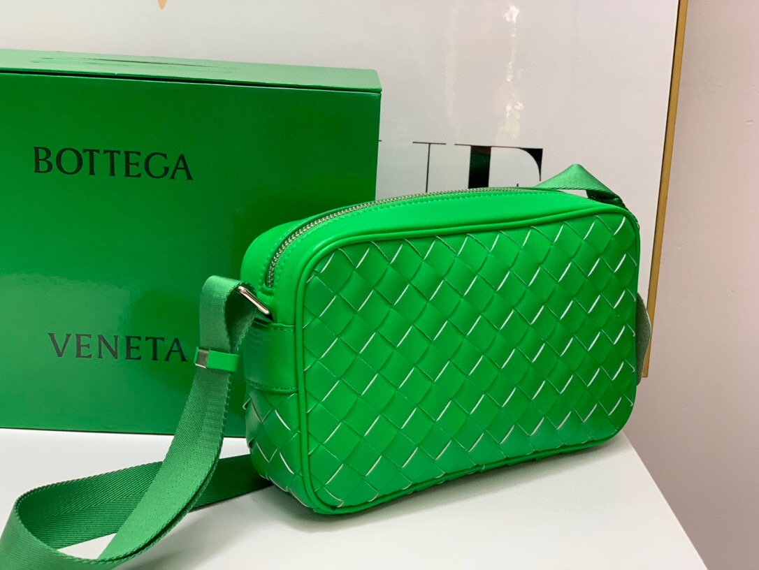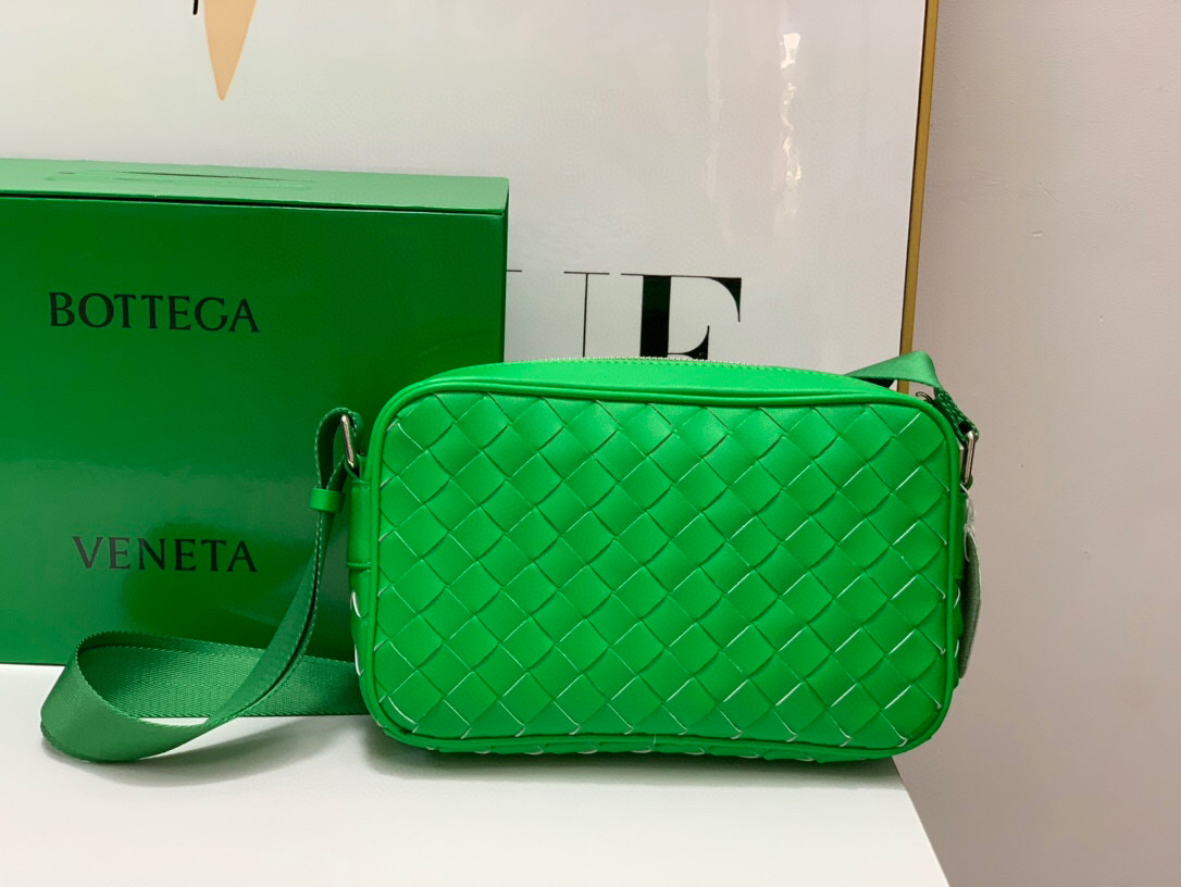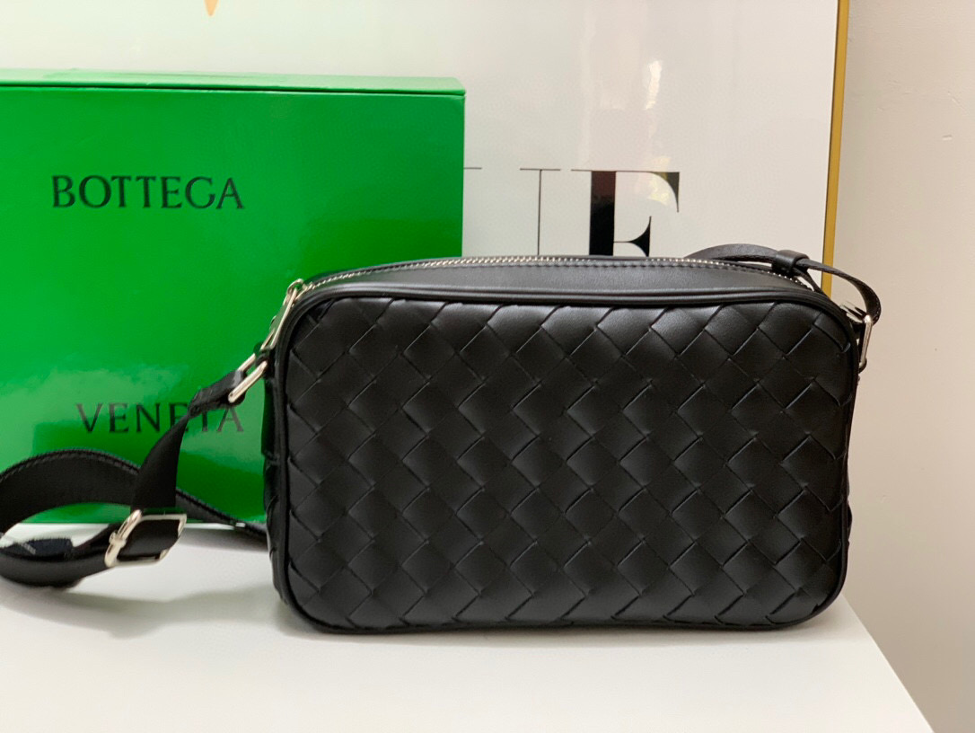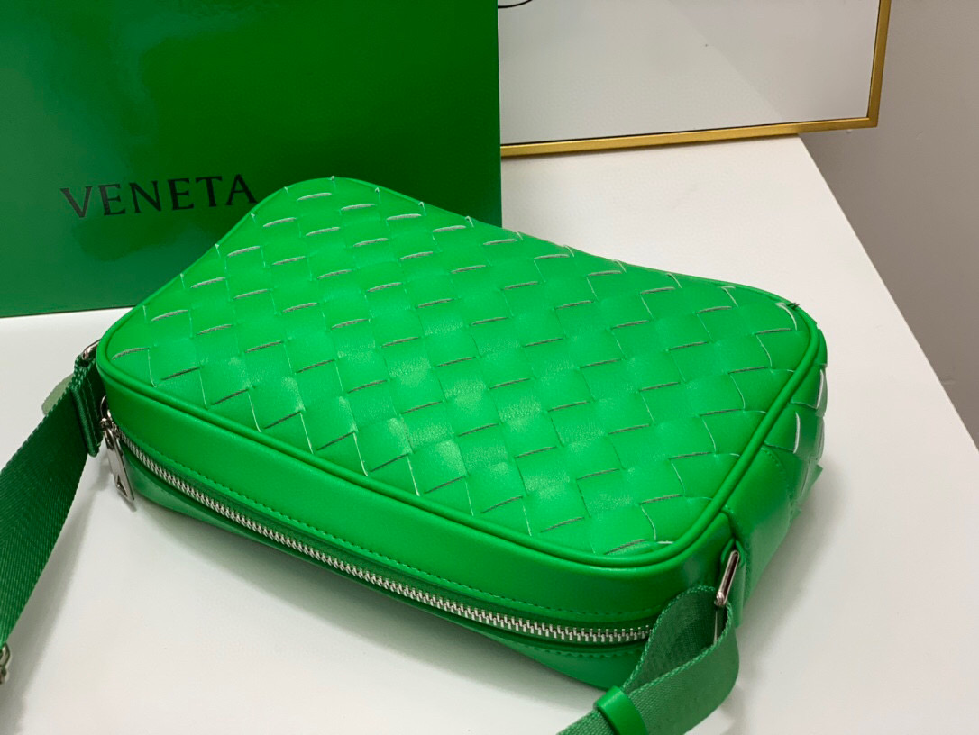 Bolsa tiracolo pequena com trama Intrecciato marrom de couro, Bottega Veneta. Com detalhe de nó, fechamento por zíper e acabamento mate.