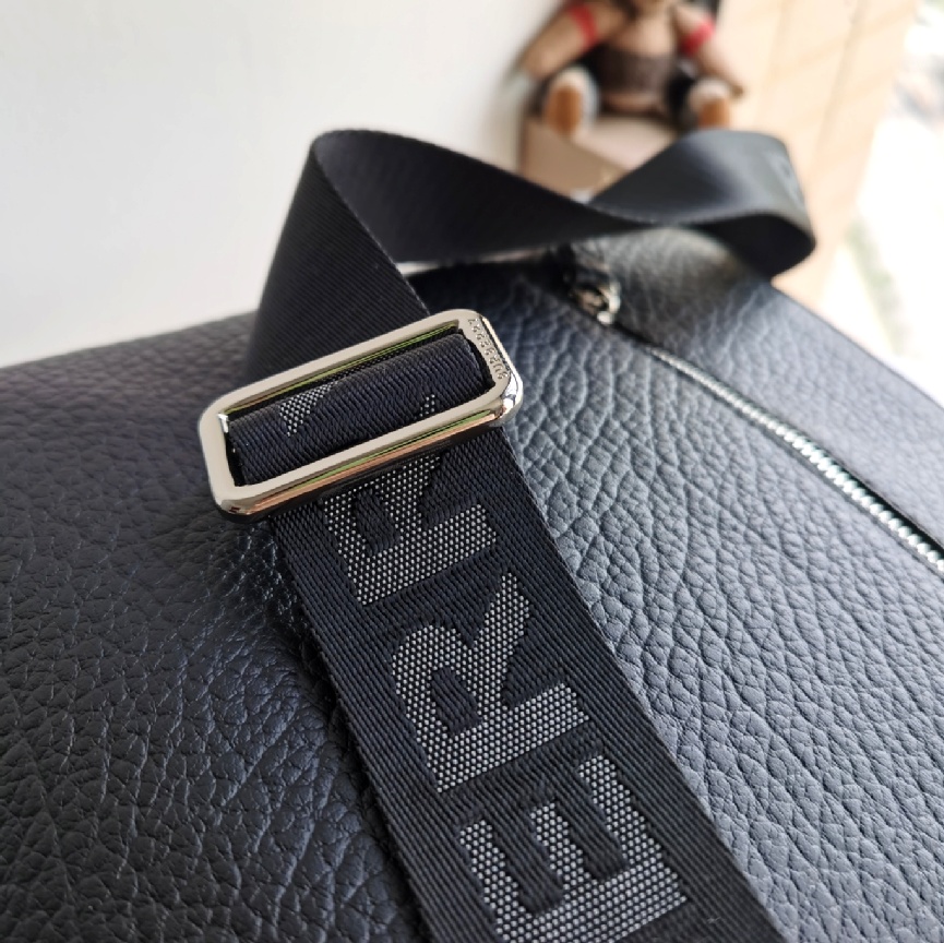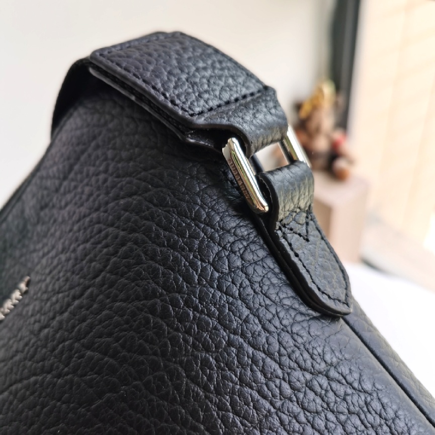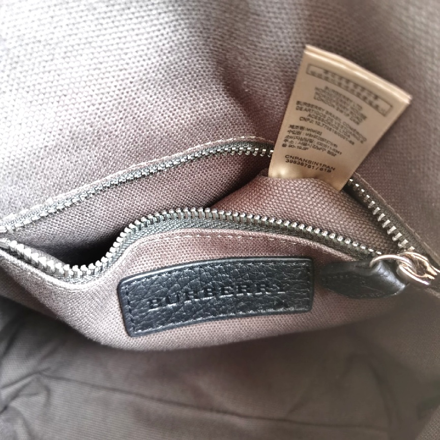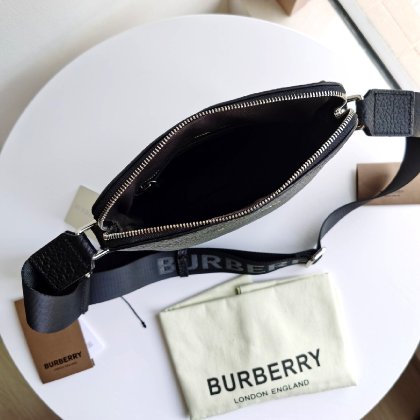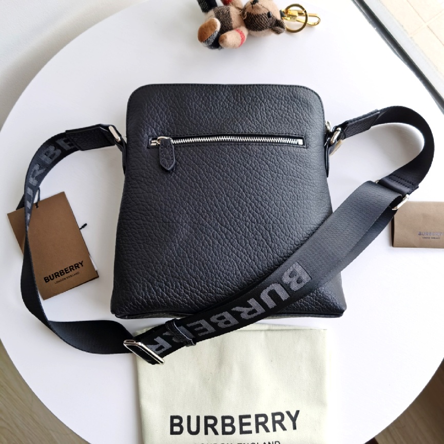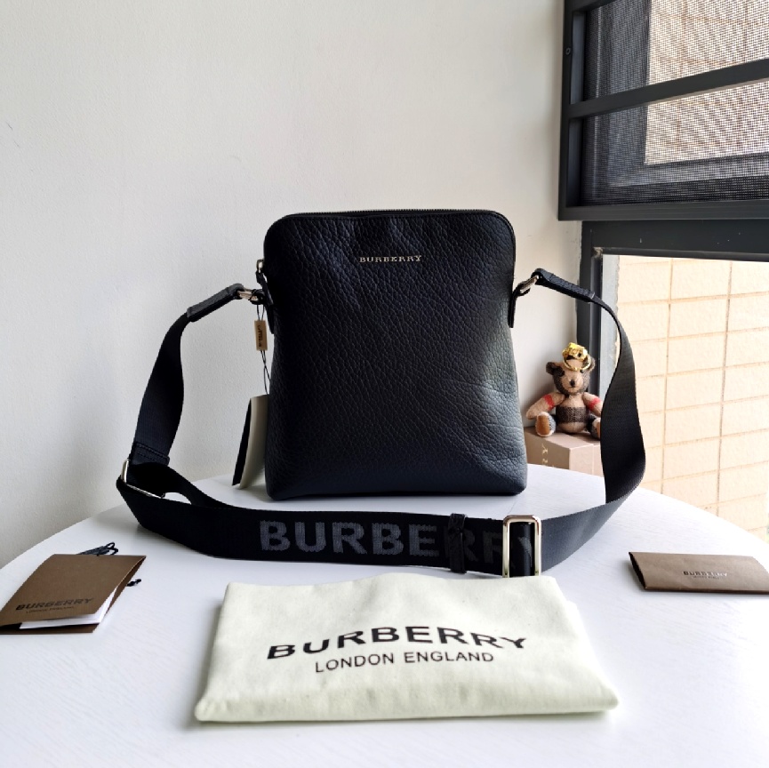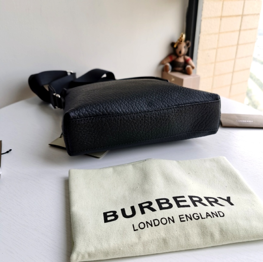 BOLSA BURBERRY EM COURO, MODELO COM DETALHES EM METAL E ESCRITA NA ALÇA