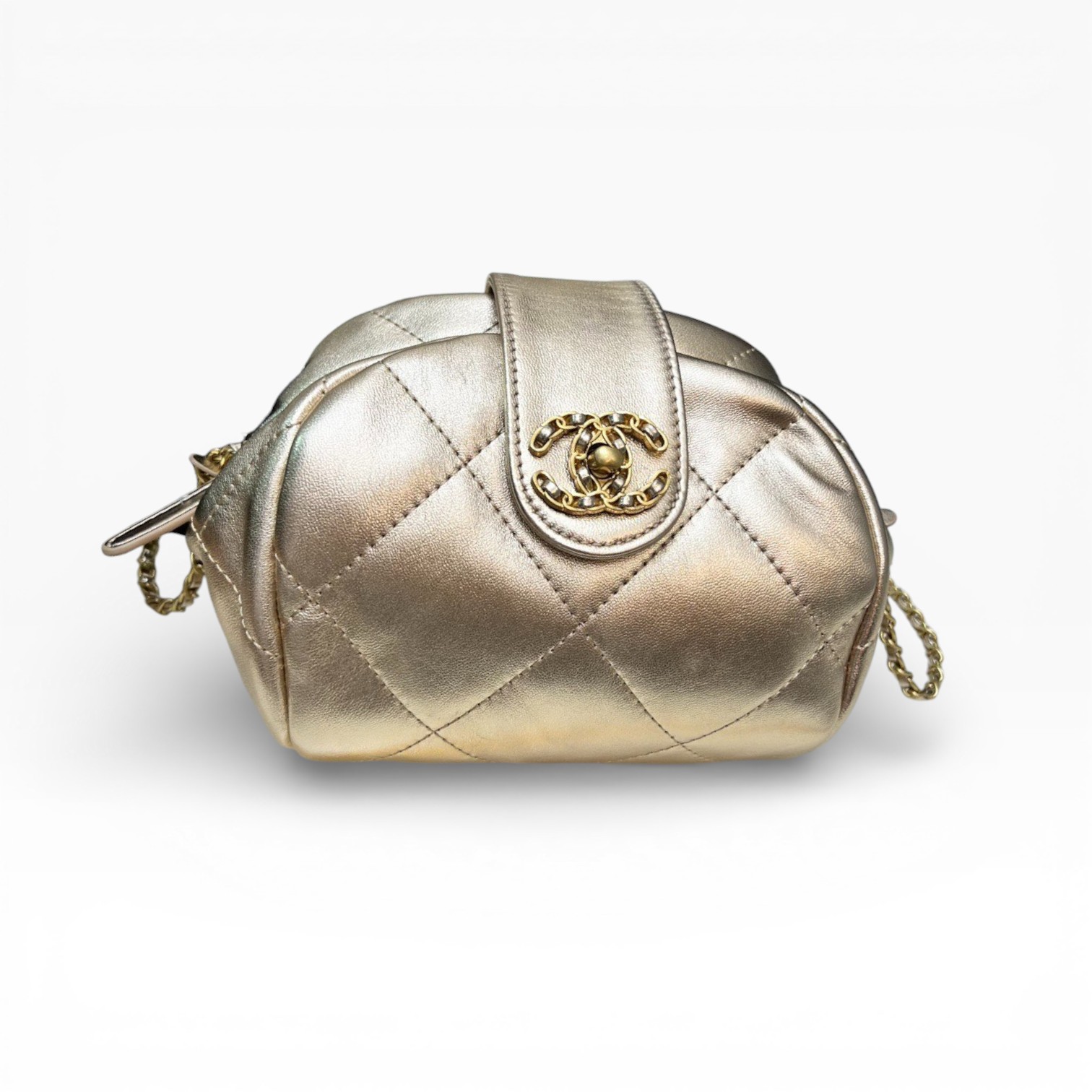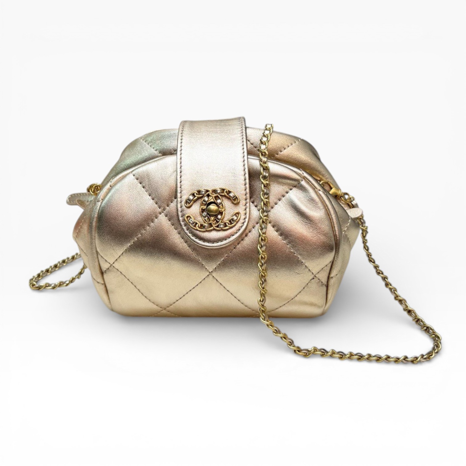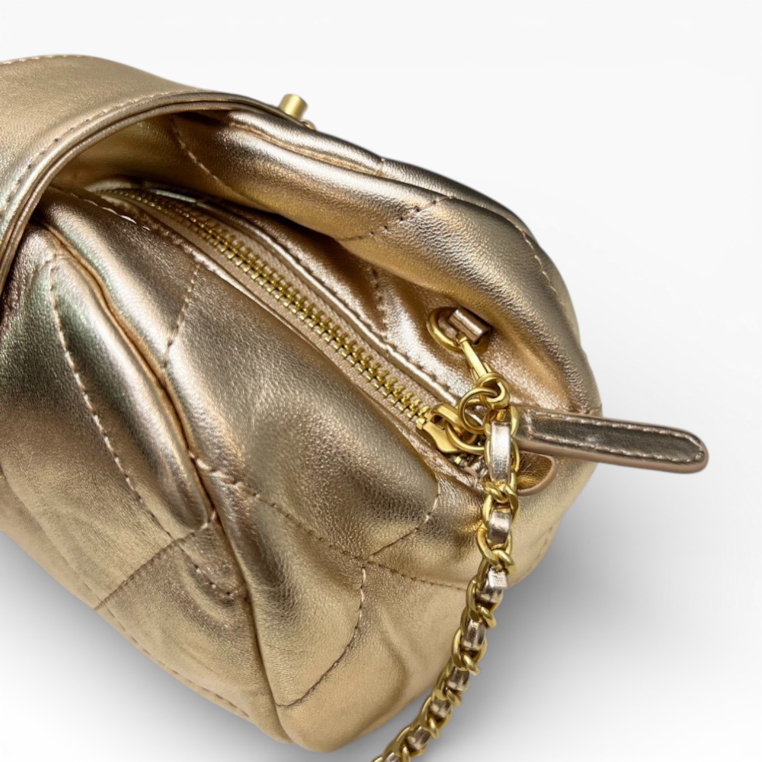 Bolsa Chanel Cuff Bag dourada em couro lambskin réplica italiana