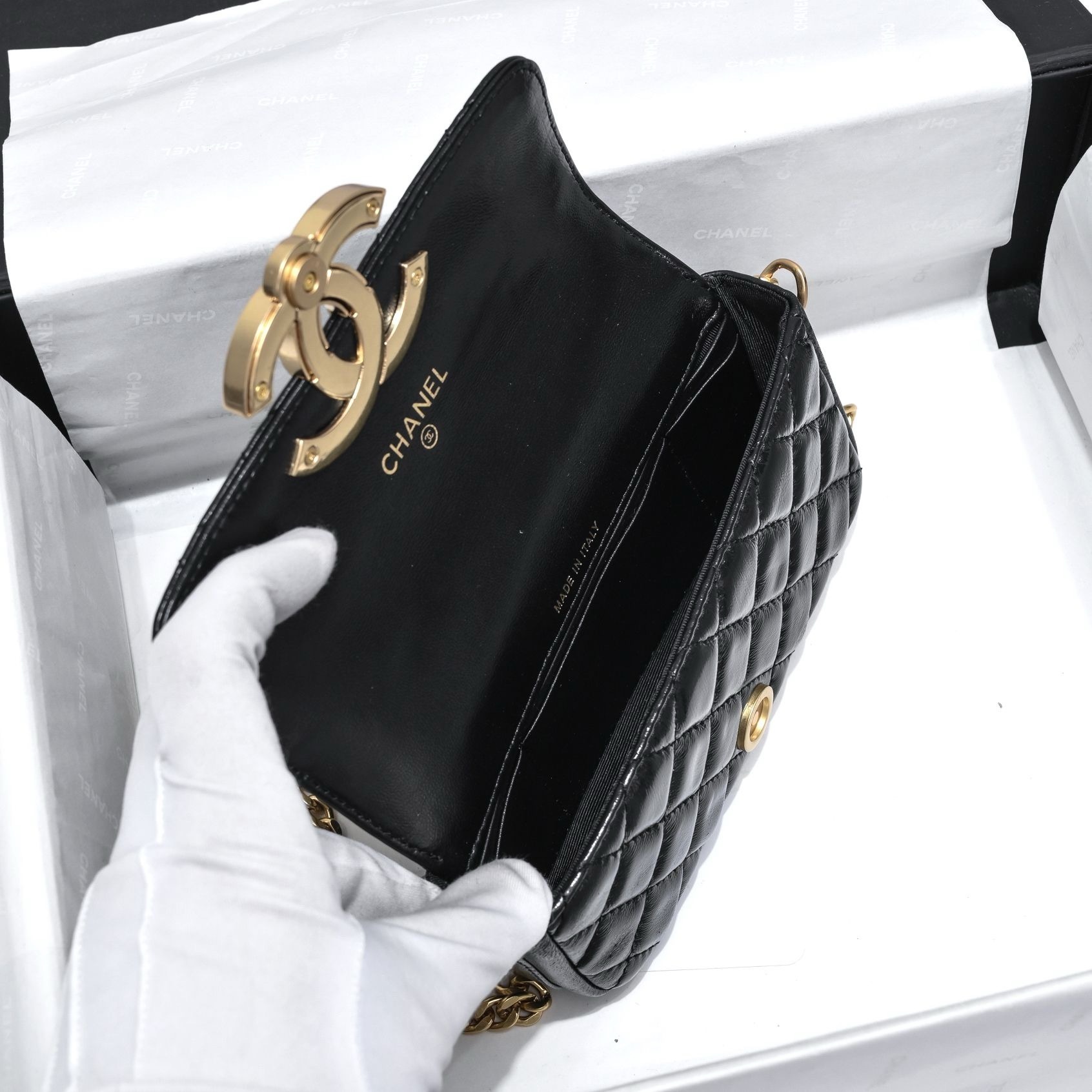 réplica perfeita é idêntica à original , mantendo o famoso acabamento matelassado da Chanel
