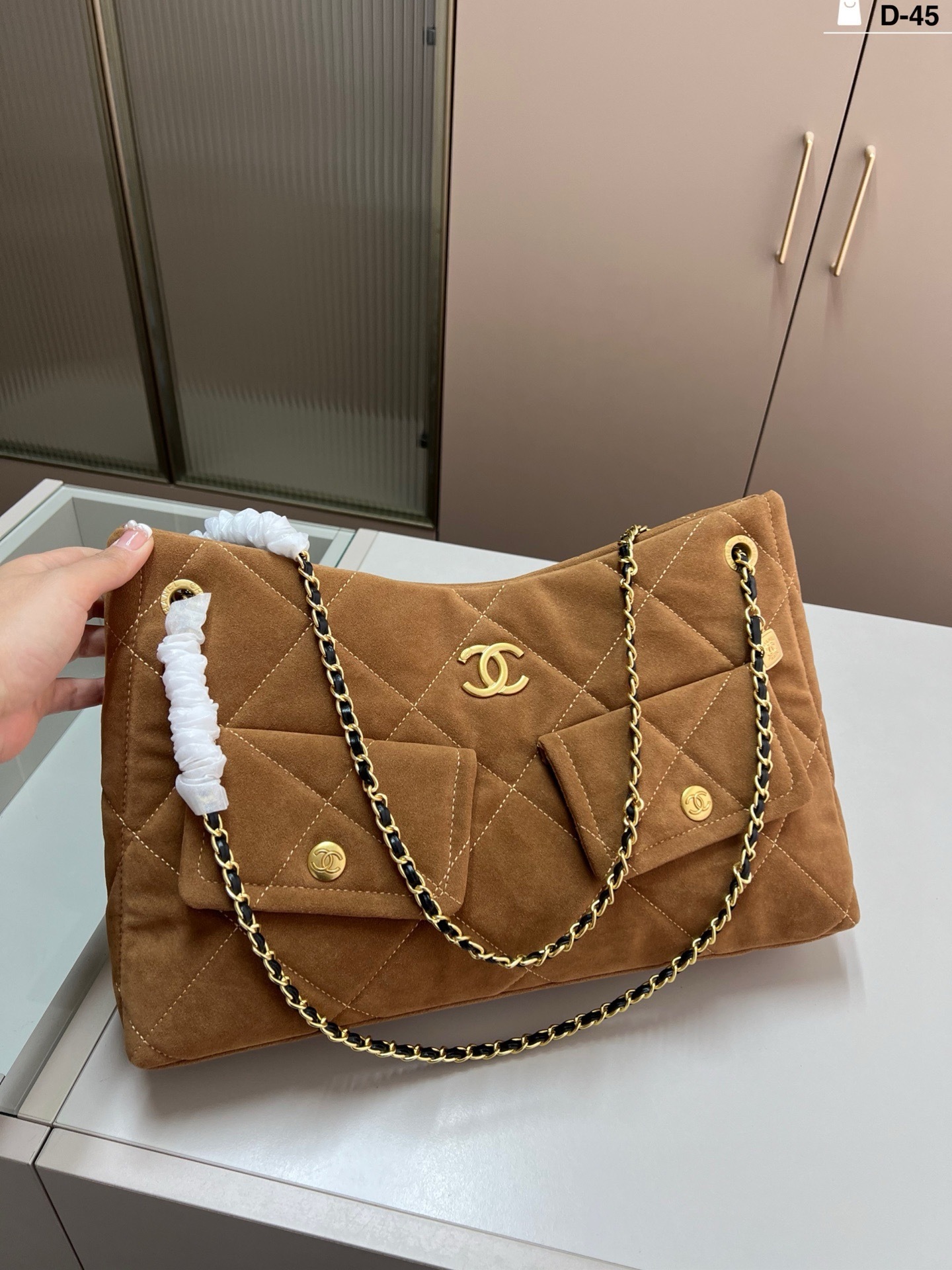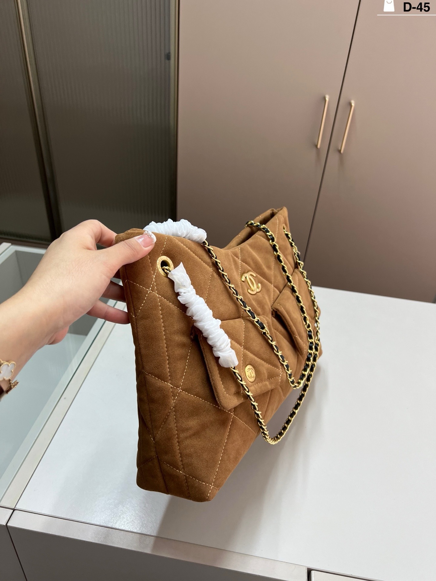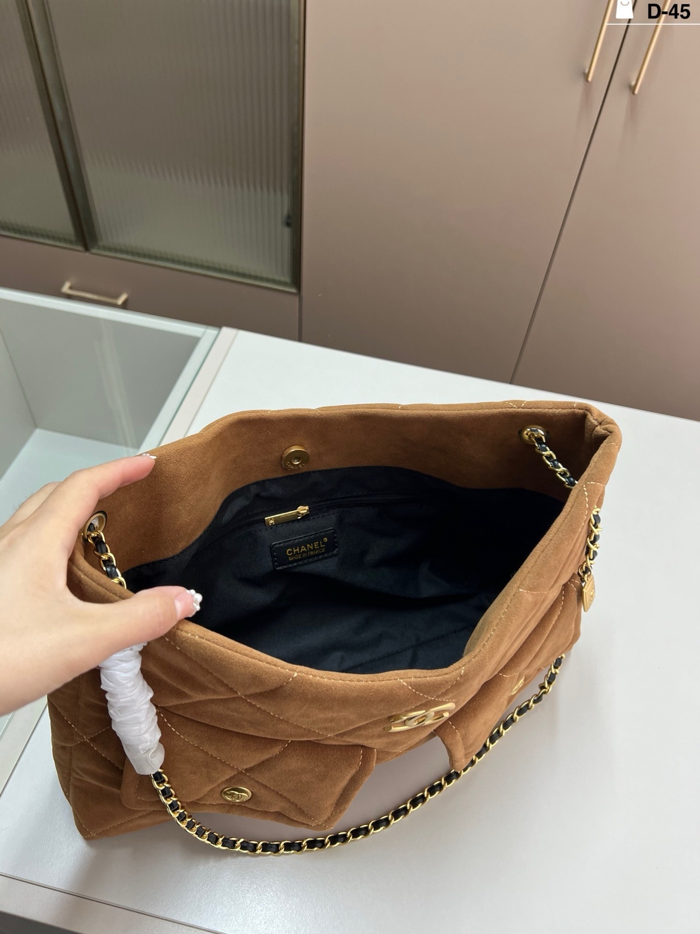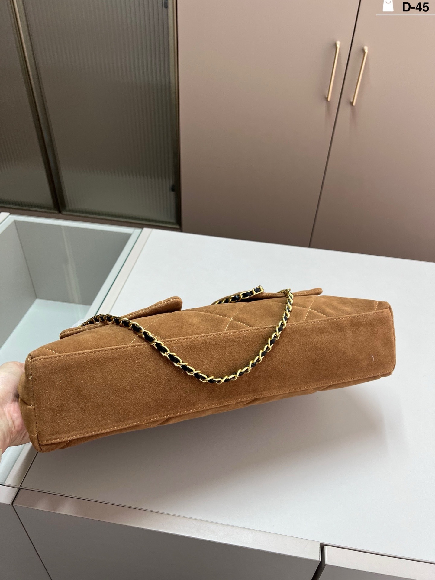 réplica perfeita é idêntica à original , mantendo o visual sofisticado, o toque aveludado da camurça e o acabamento impecável que definem a Chanel.
