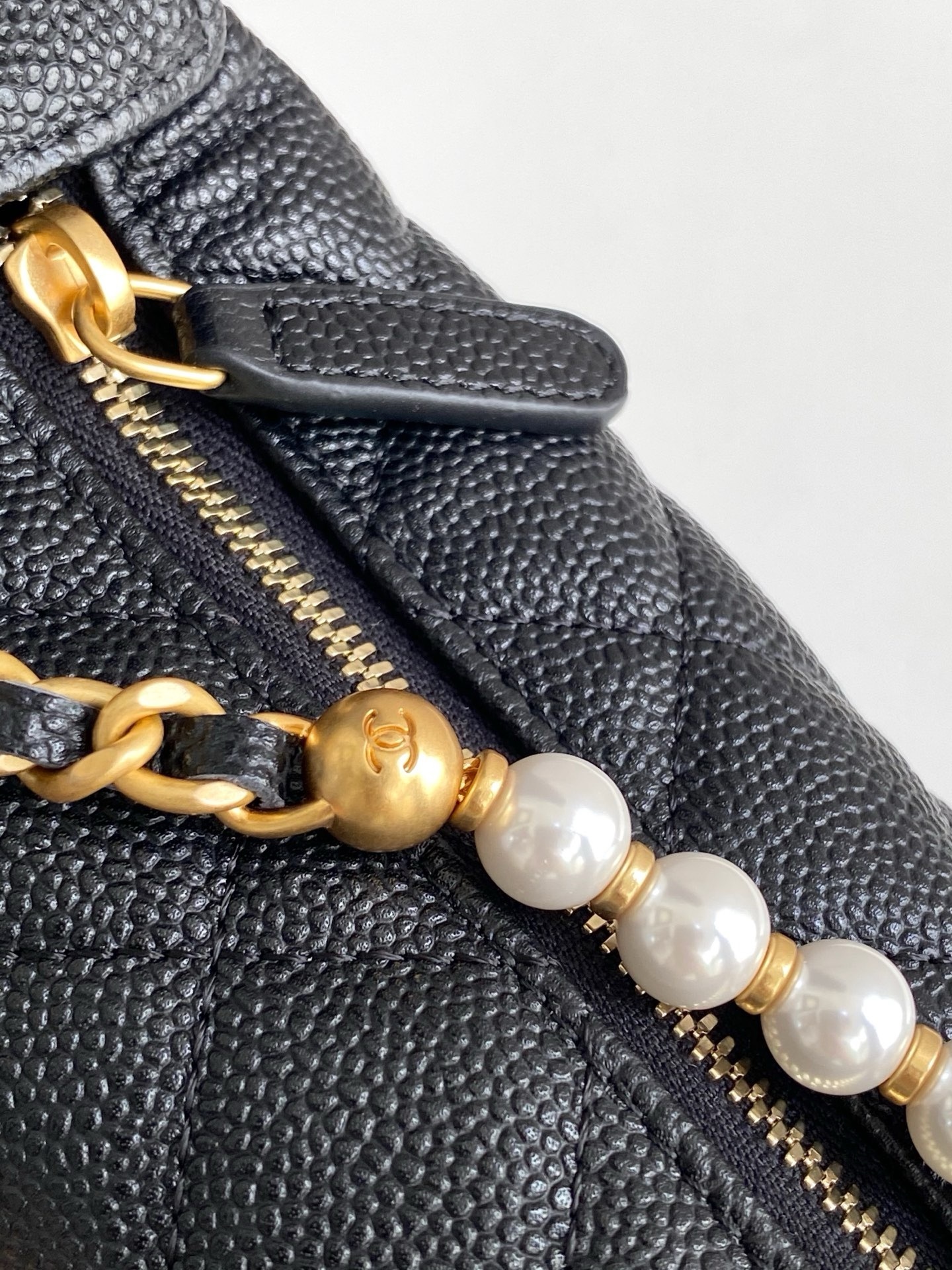 padrão matelassado da Chanel , o icônico logotipo duplo “CC” e a textura cintilante do couro caviar, símbolo de requinte e sofisticação.