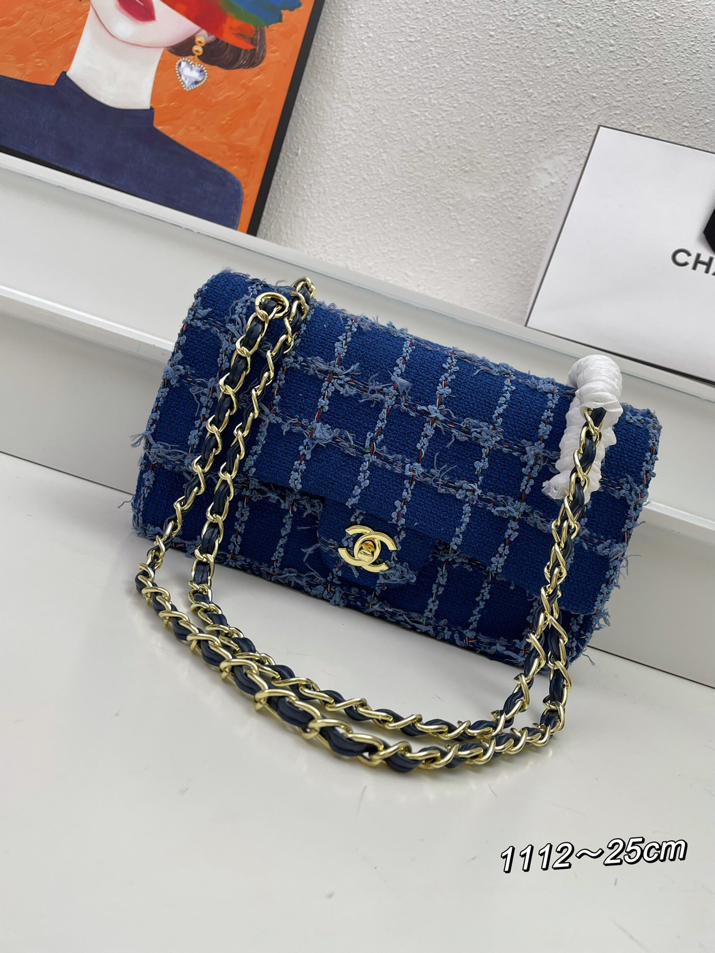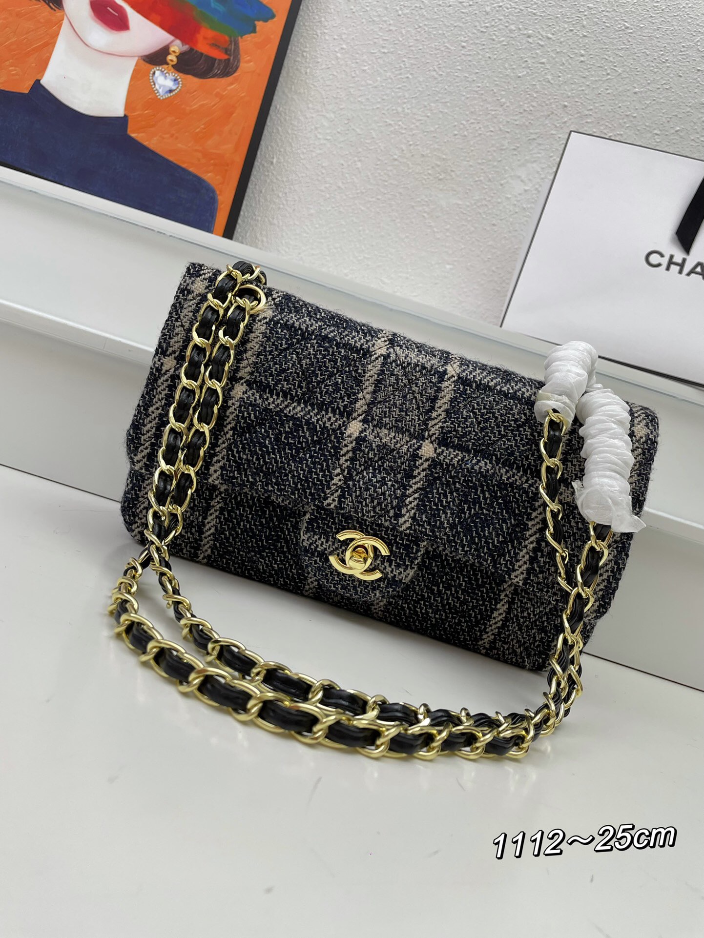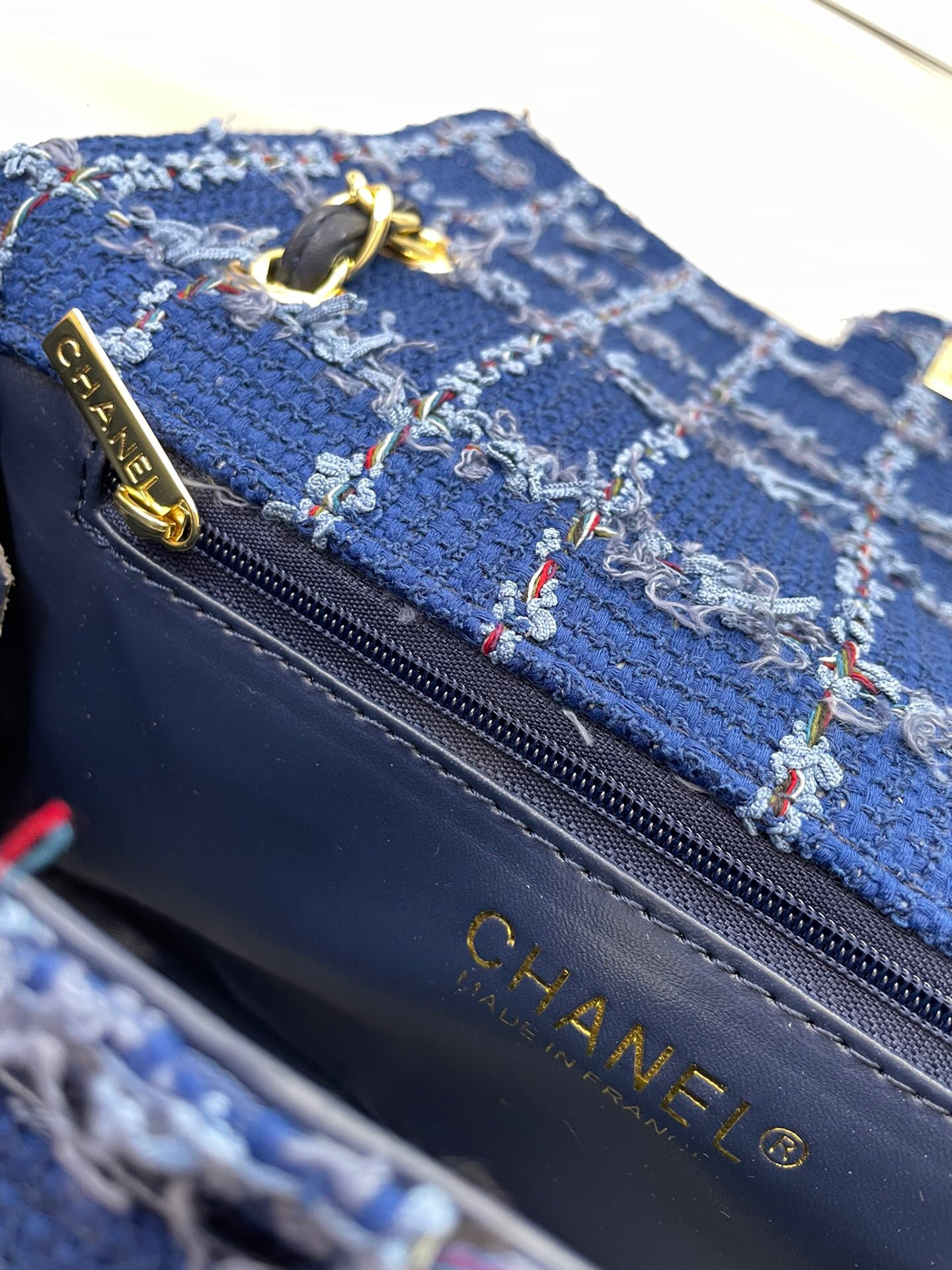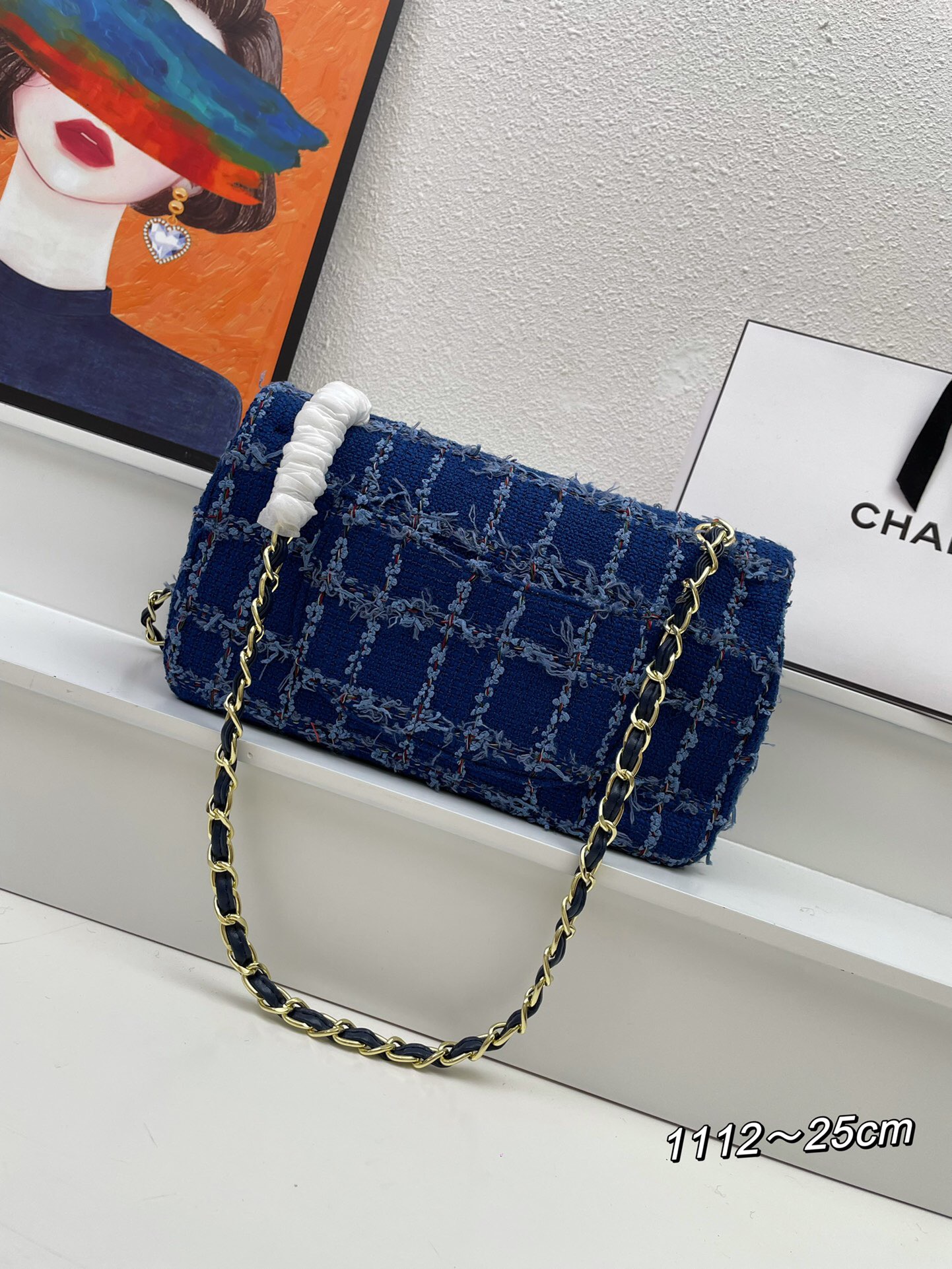 BOLSA CHANEL TWEED, MODELO EM COURO REVESTIDO DE TECIDO, COM LOGO EM METAL MEDIDAS: 25 CM OBS: PRAZO DE ENTREGA 25 A 30 DIAS CORRIDOS