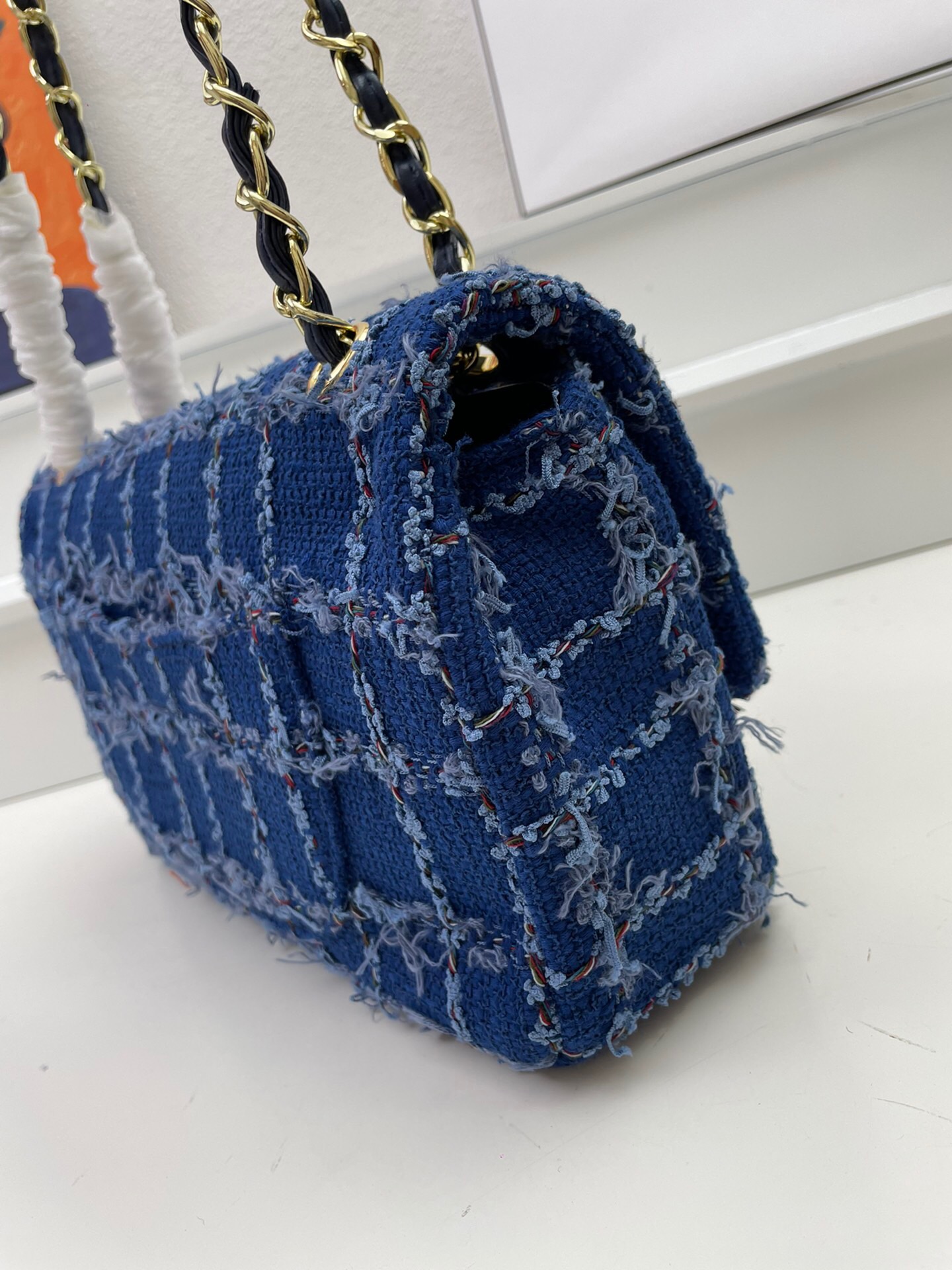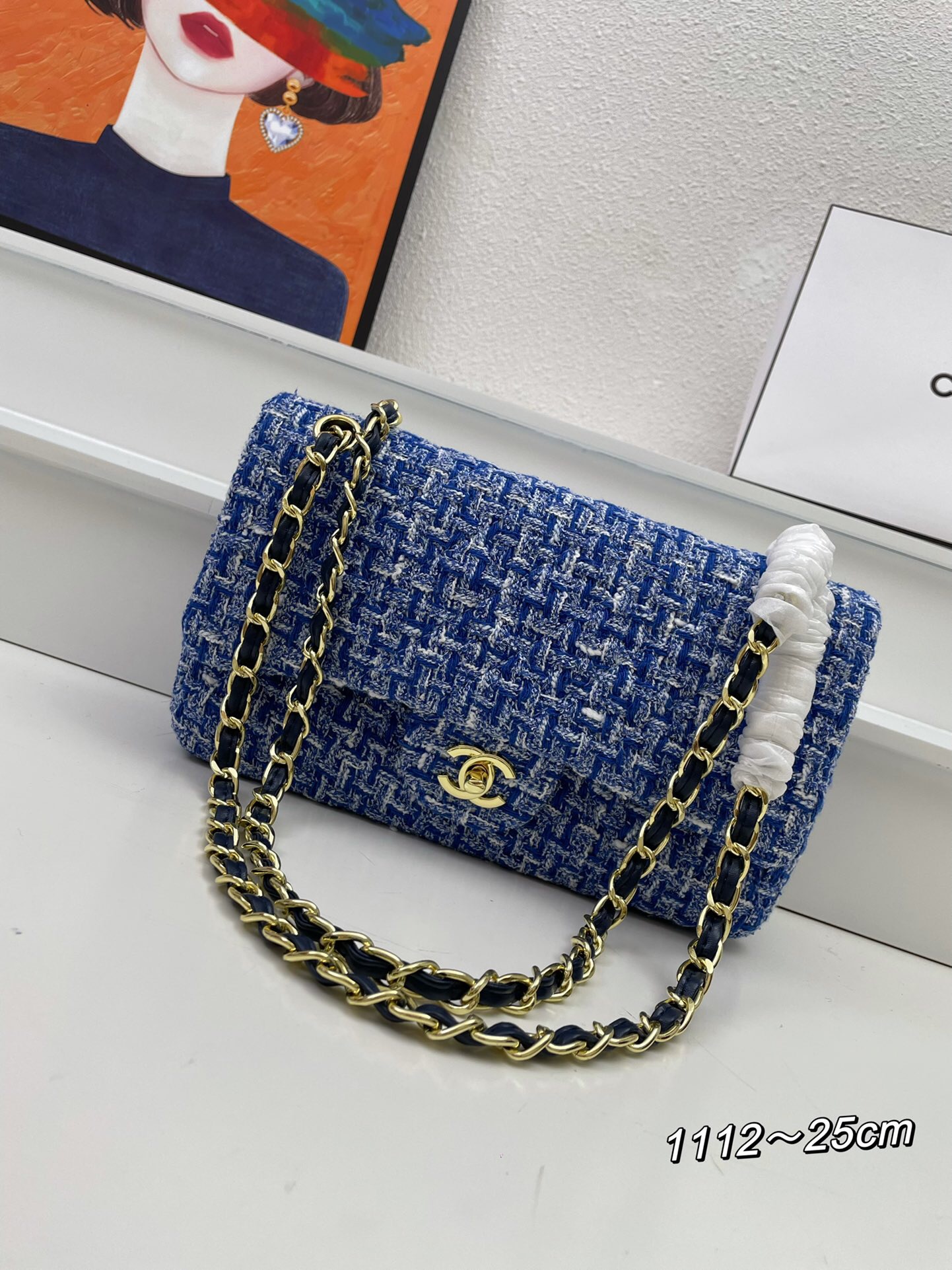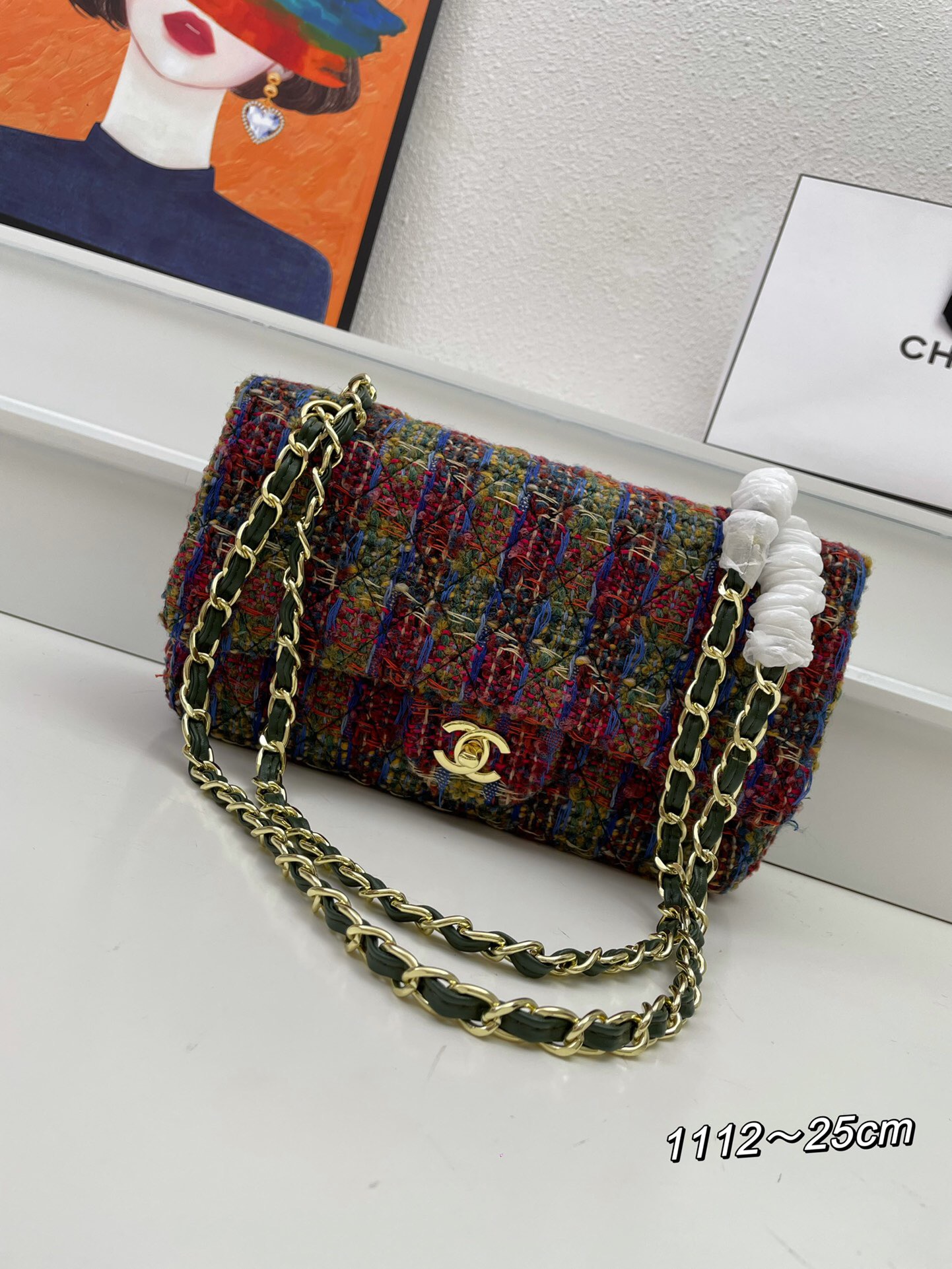 BOLSA CHANEL TWEED, MODELO EM COURO REVESTIDO DE TECIDO, COM LOGO EM METAL MEDIDAS: 25 CM OBS: PRAZO DE ENTREGA 25 A 30 DIAS CORRIDOS