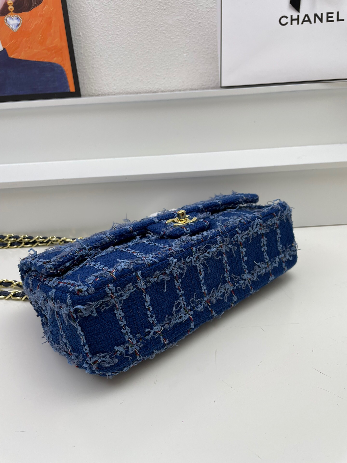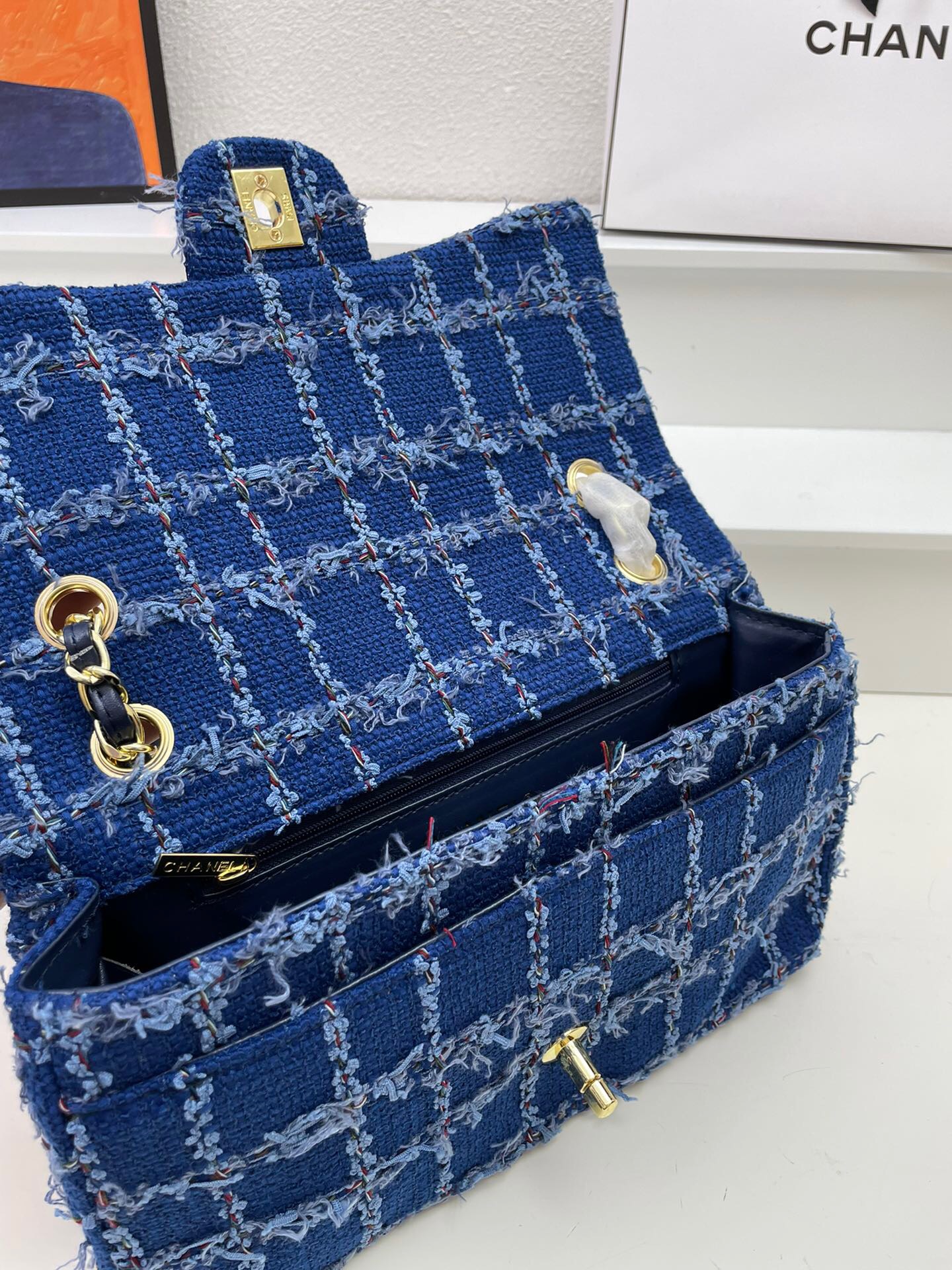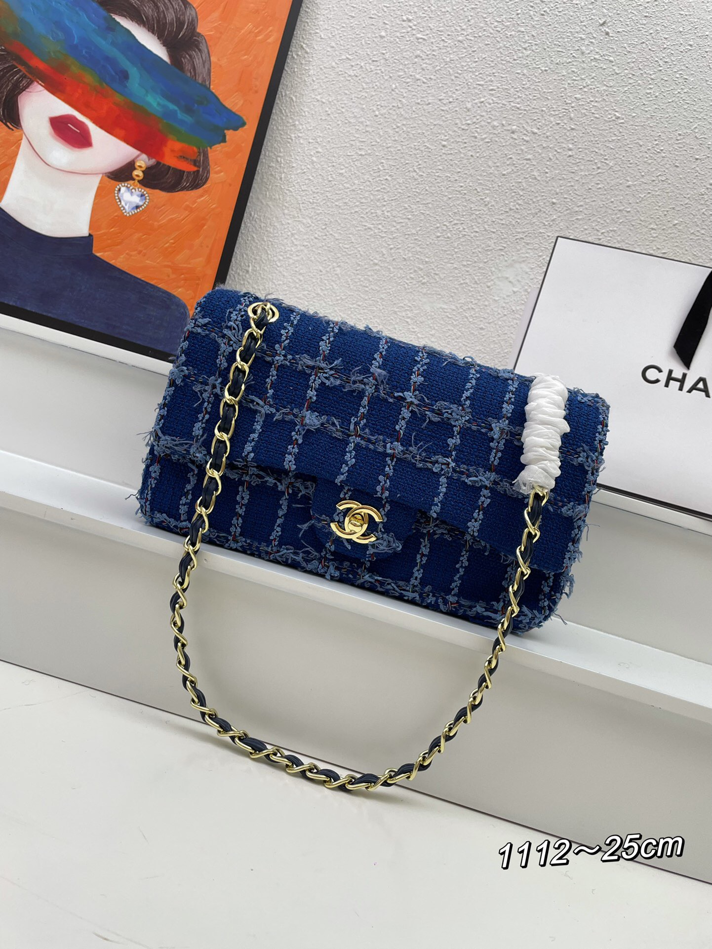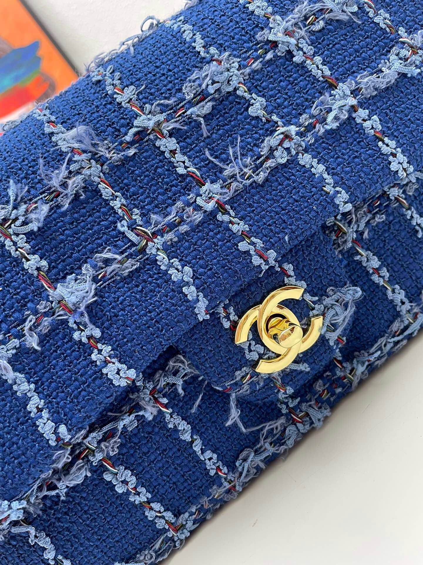 BOLSA CHANEL TWEED, MODELO EM COURO REVESTIDO DE TECIDO, COM LOGO EM METAL MEDIDAS: 25 CM OBS: PRAZO DE ENTREGA 25 A 30 DIAS CORRIDOS