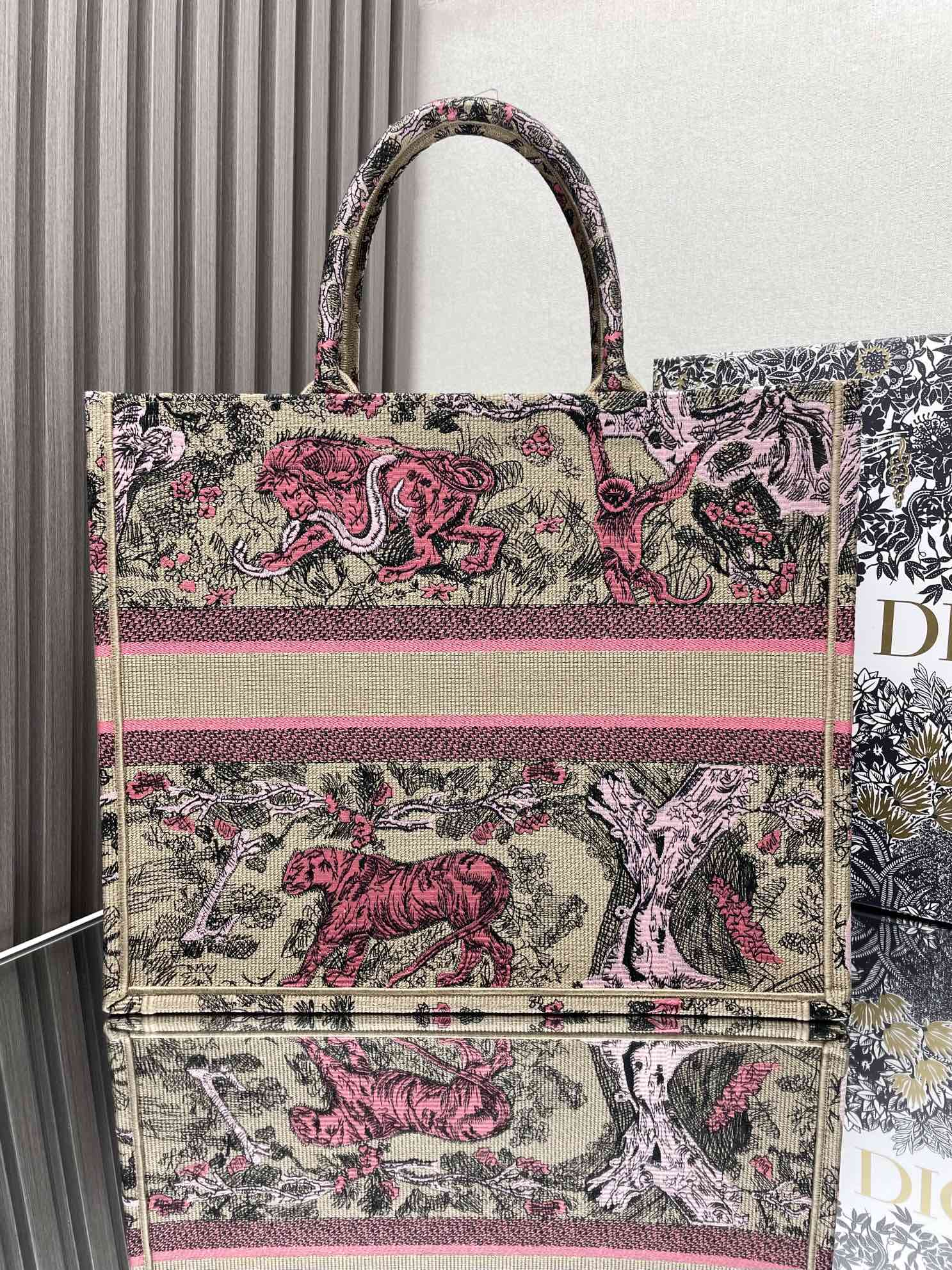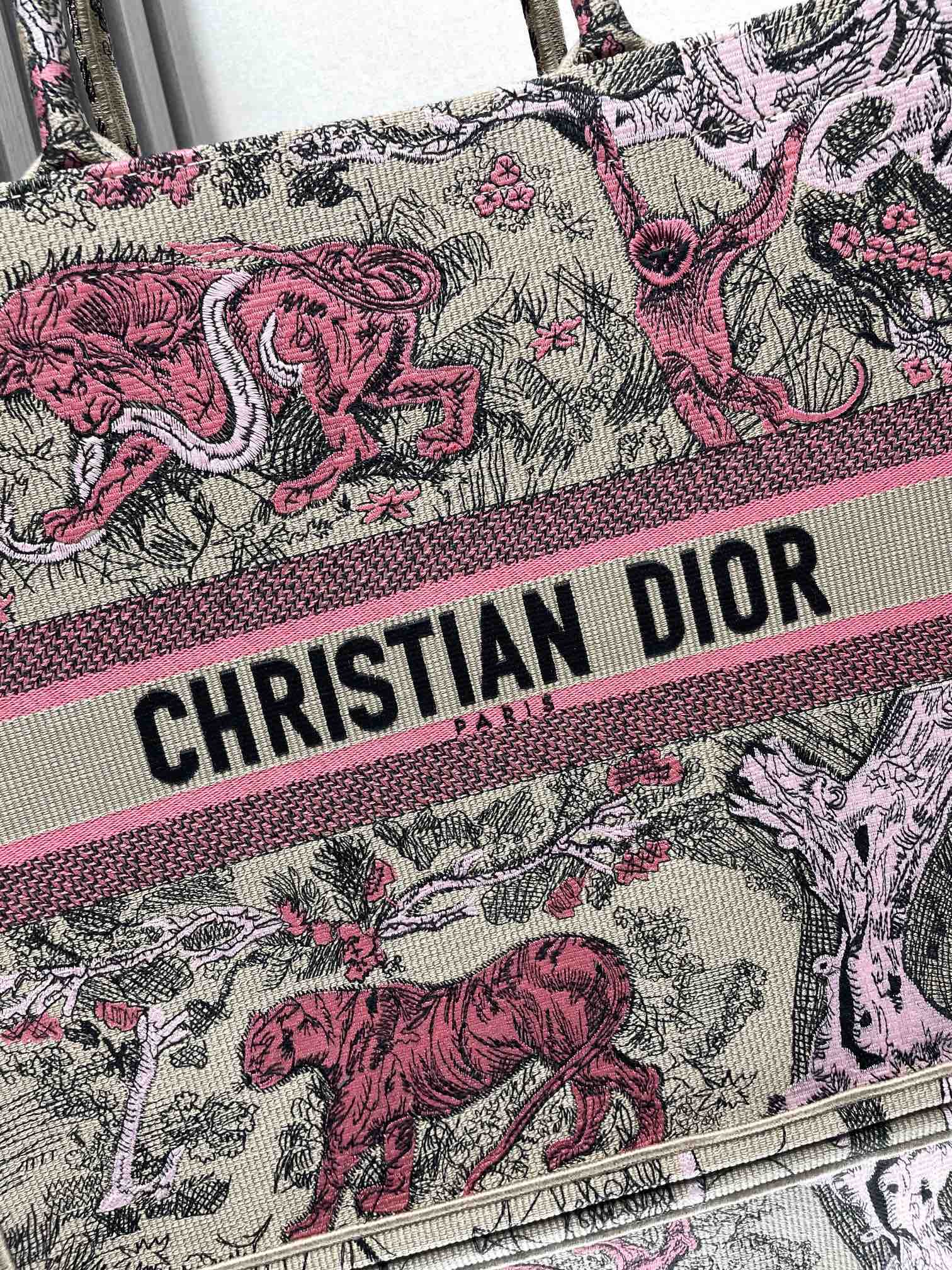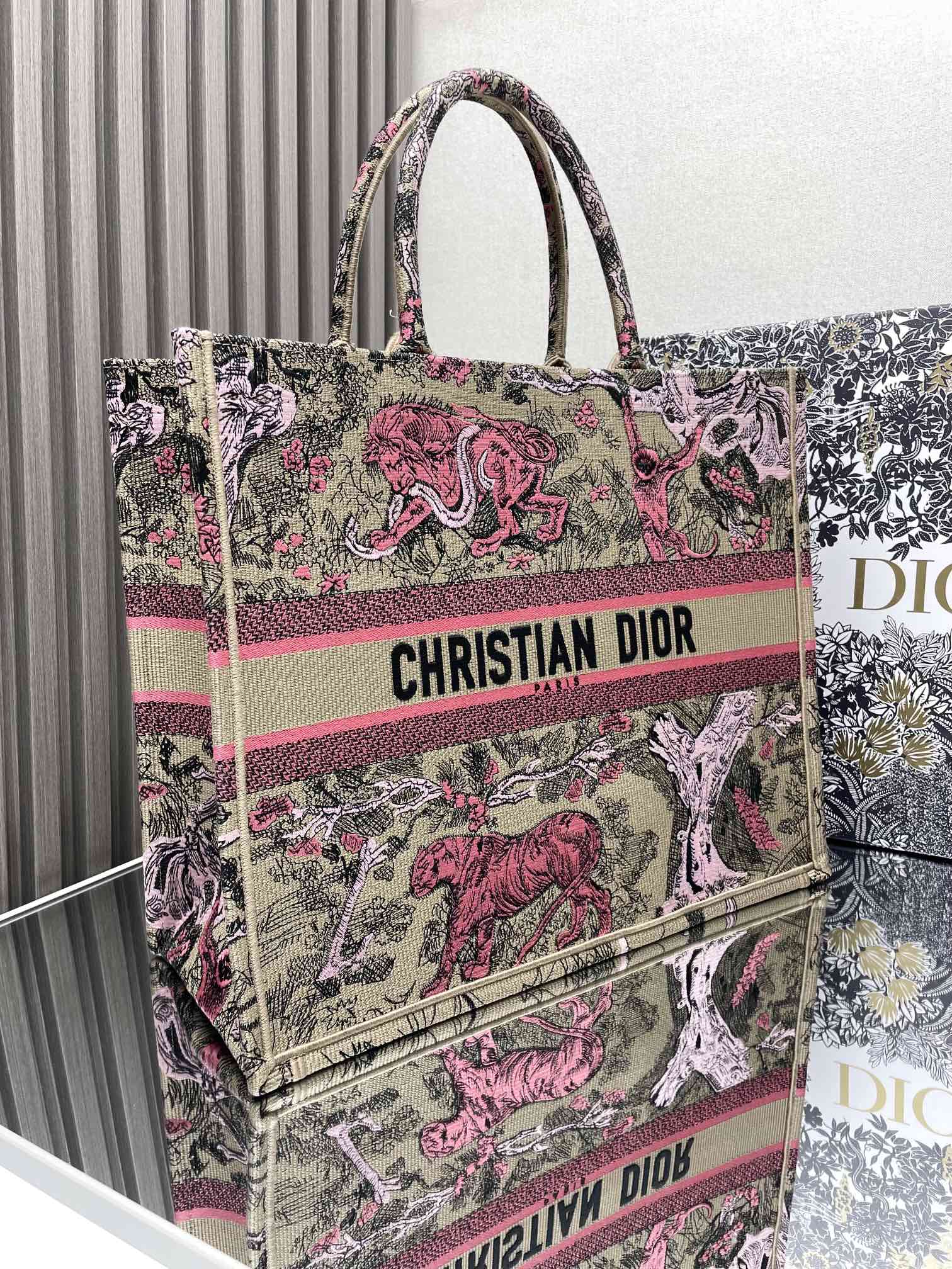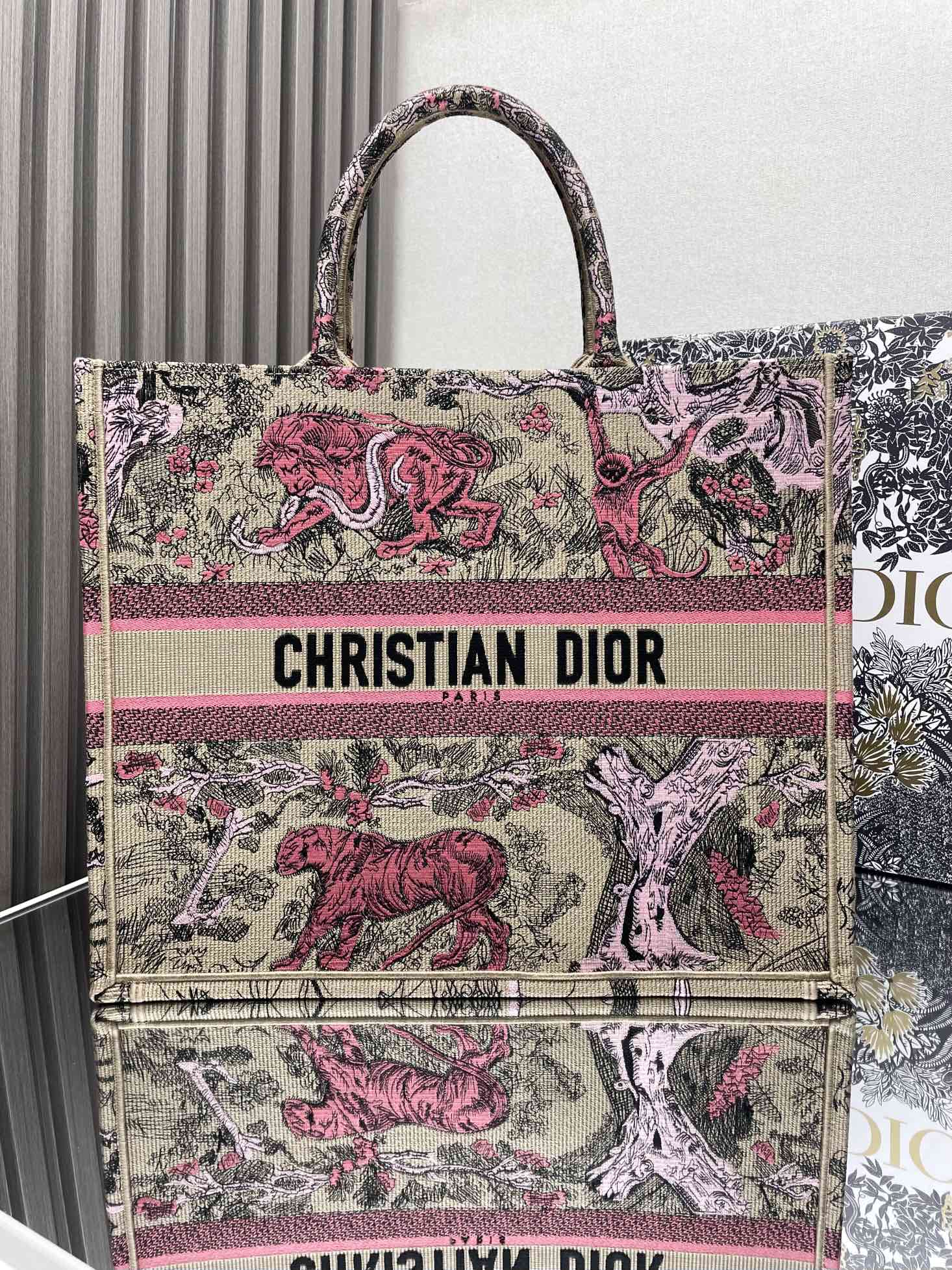 Adquira agora a sua Bolsa Dior Tote Book Tamanho Grande com Tigre Vermelho Damasco na Paris Bolsas