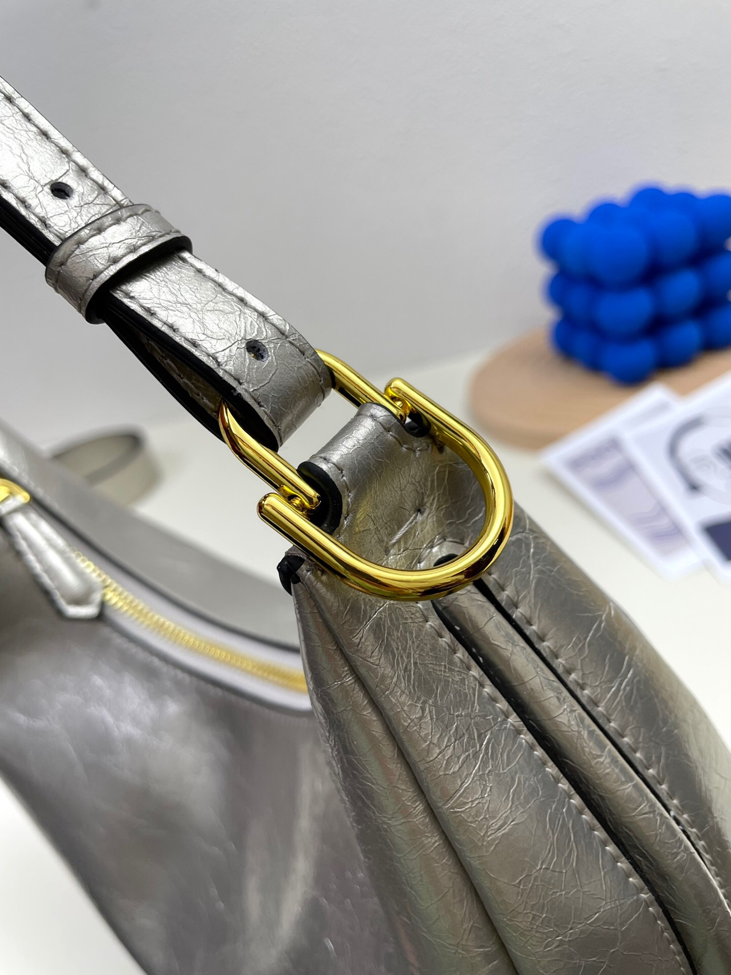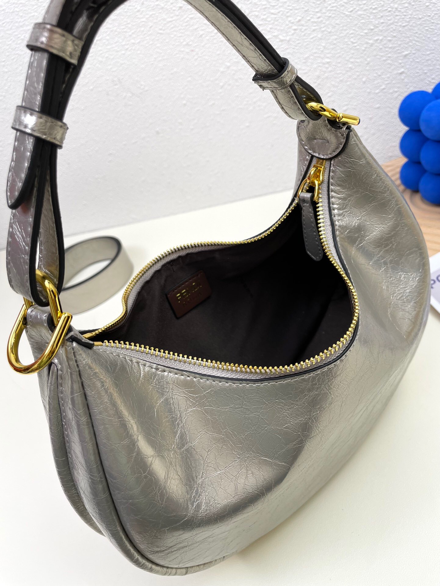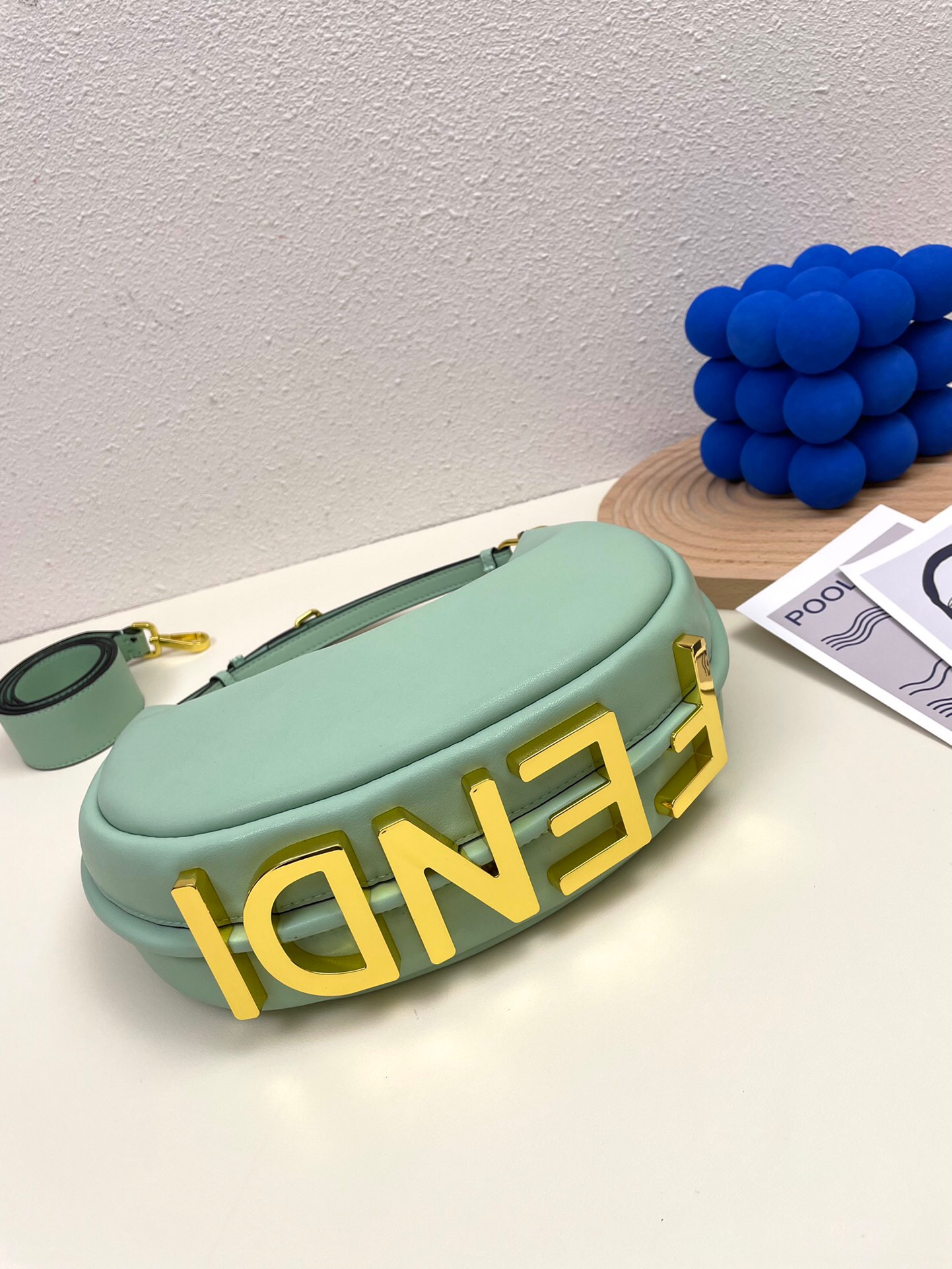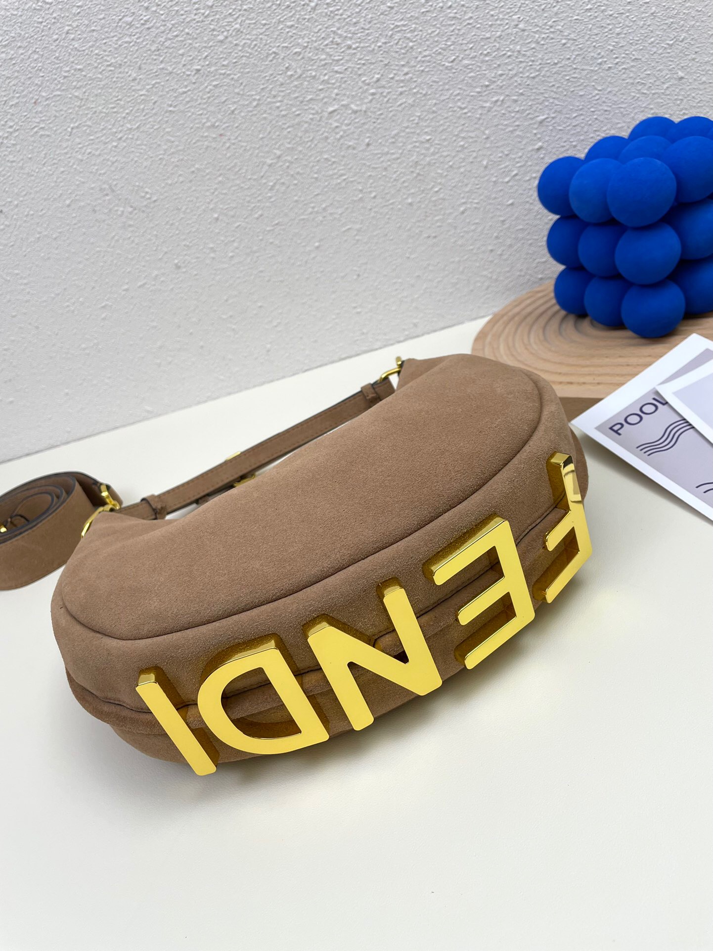 Ela possui detalhes no seu fundo na cor dourada, onde está escrito Fendi, o nome da sua marca.
