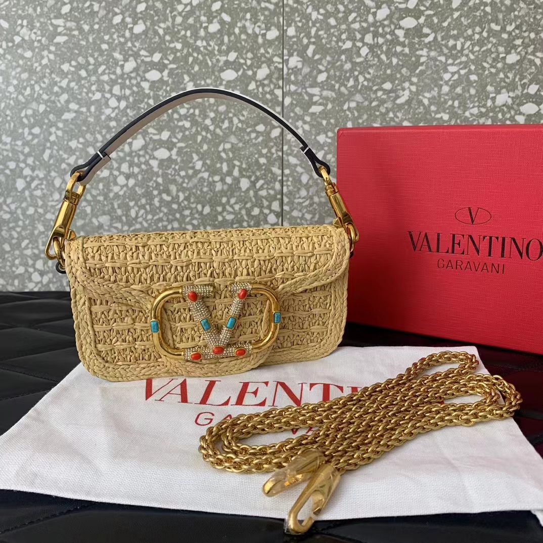 Bolsa Tiracolo Locò Pequena em Ráfia – Valentino Garavani
