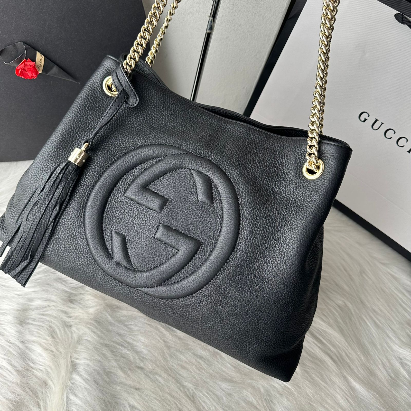 A BOLSA GUCCI LARGE SOHO BAG é um item indispensável para quem busca elegância e sofisticação no dia a dia. Na Paris Deluxe, garantimos a melhor qualidade e acabamento do mercado.