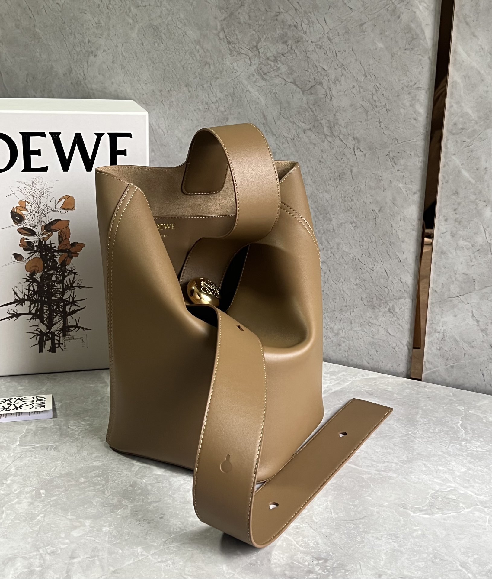 Bolsa Loewe Pebble Bucket Bag Medium caqui réplica italiana premium