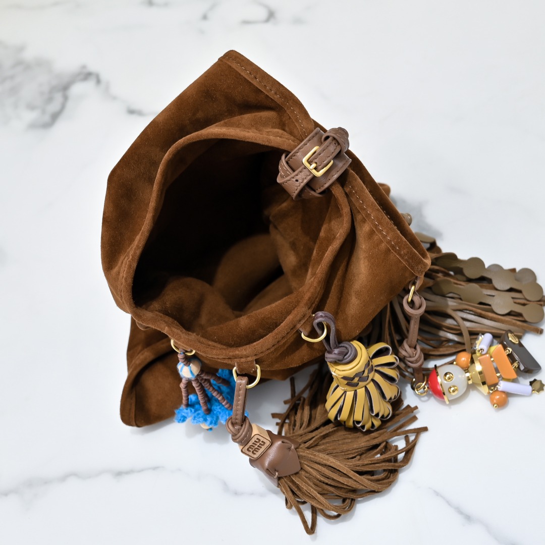 Bolsa Miu Miu Suede Hobo Bag com Charms