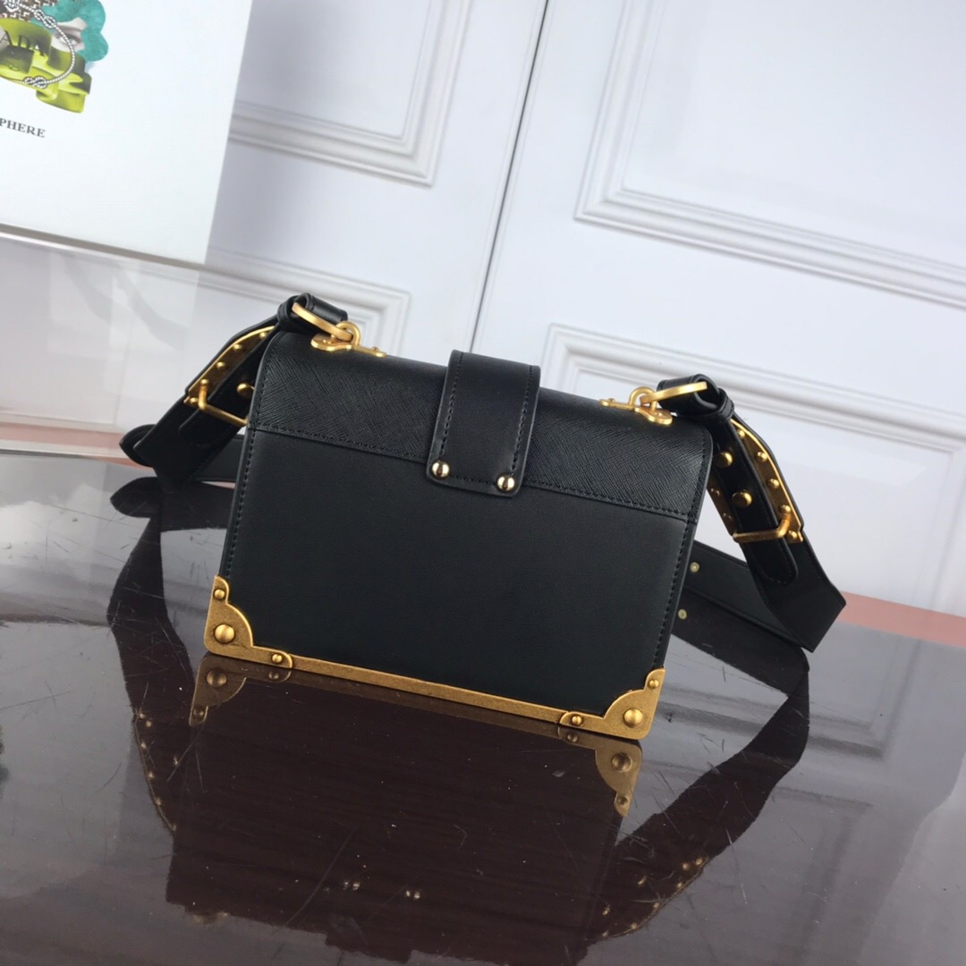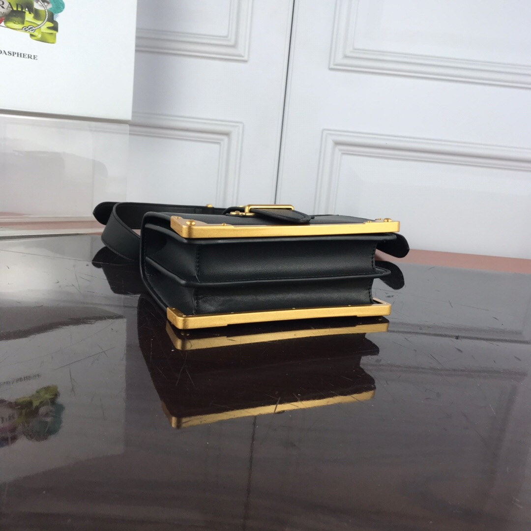 O Design da Bolsa Prada Cahier foi inspirado em livros antigos e valiosos, que possuíam detalhes em dourado e capa dura, que guardavam muito bem todo o conhecimento de seu interior.