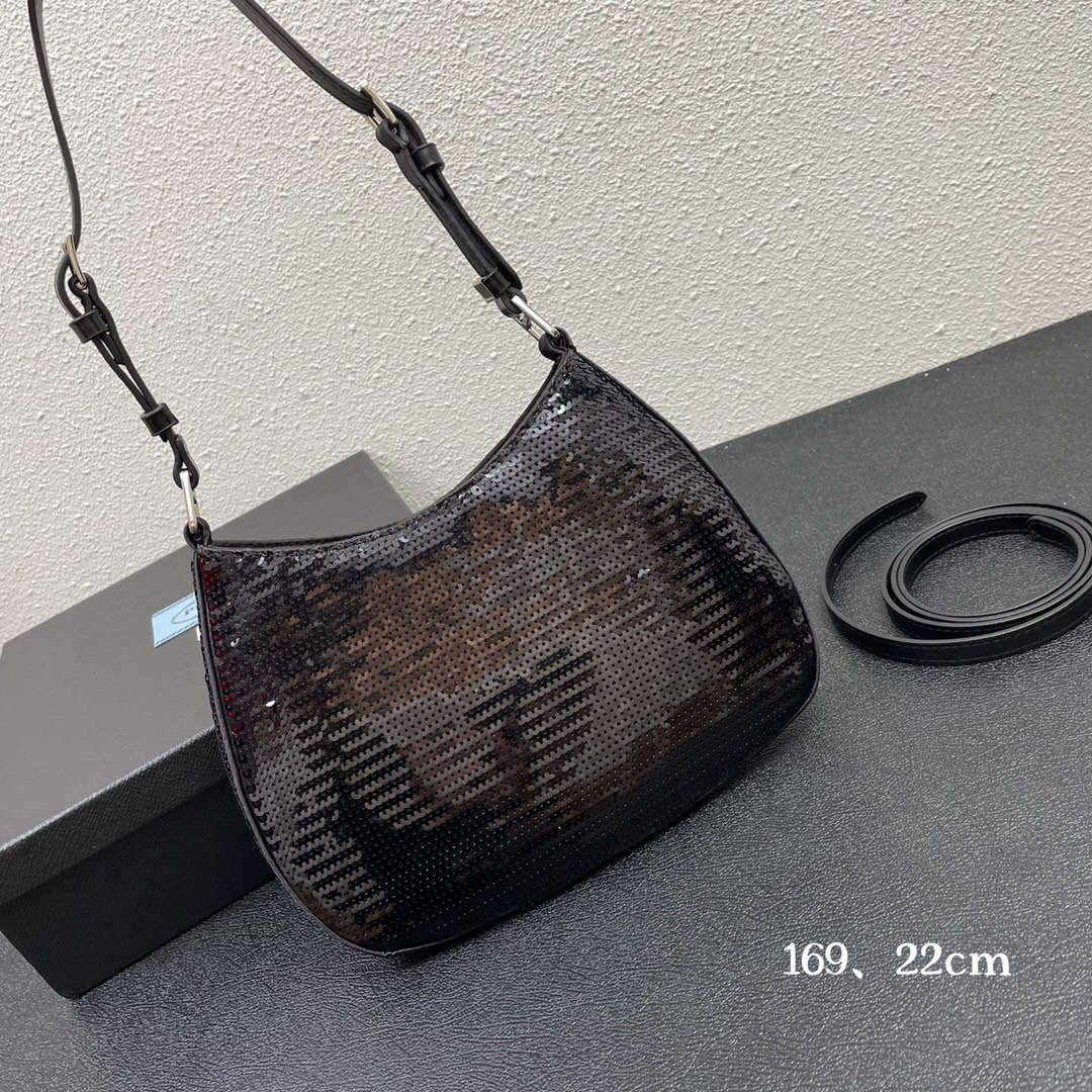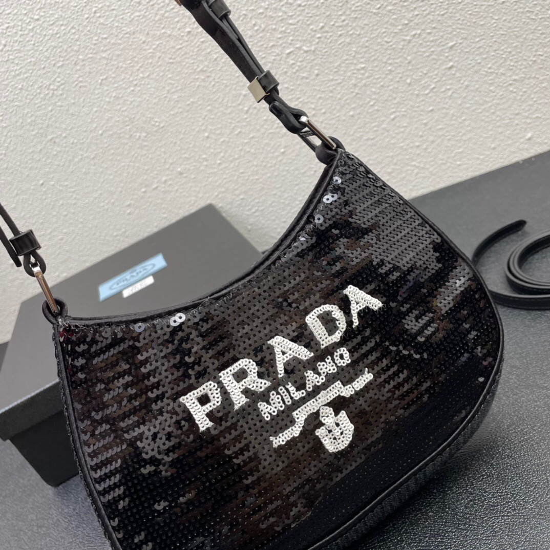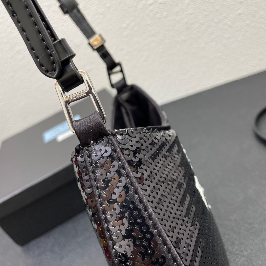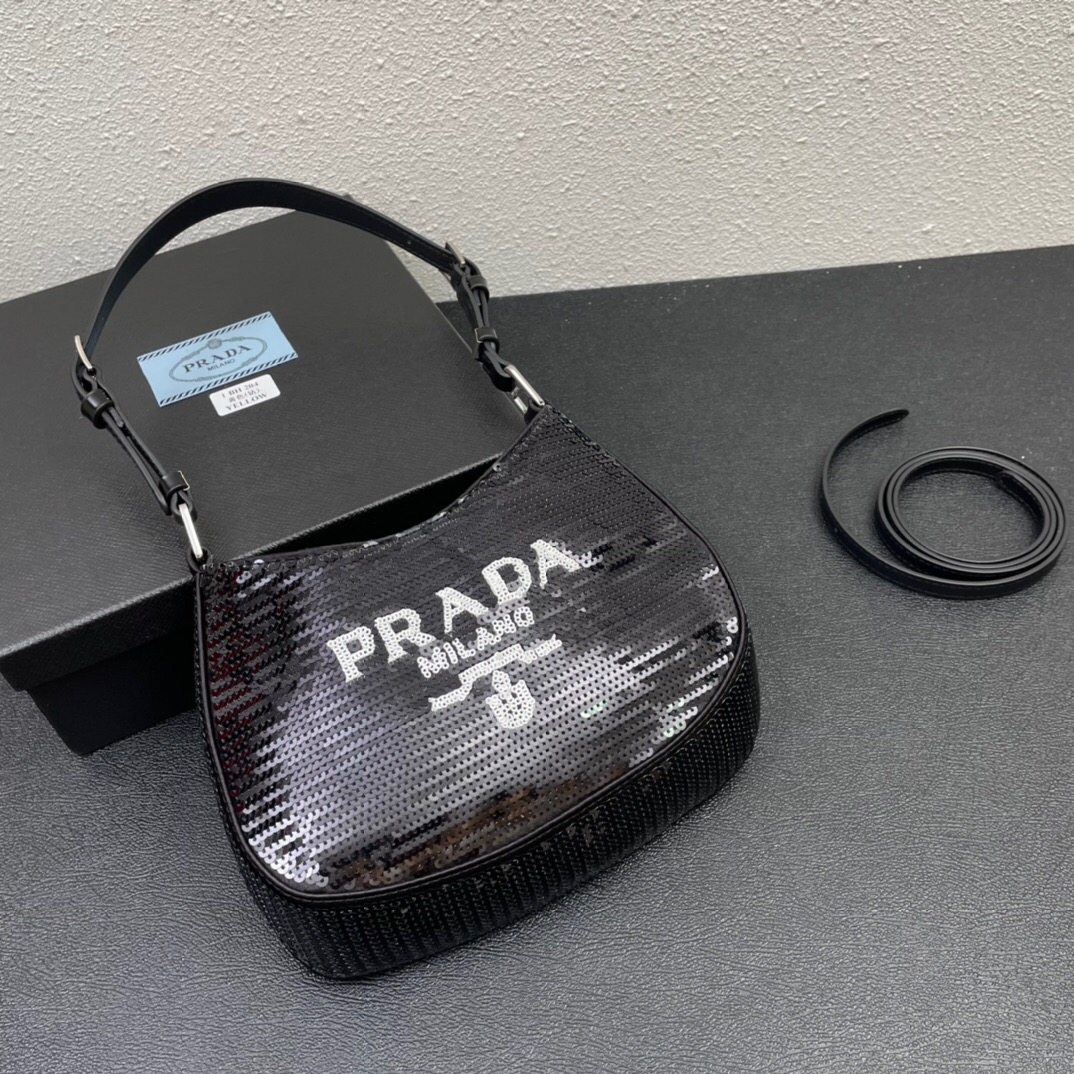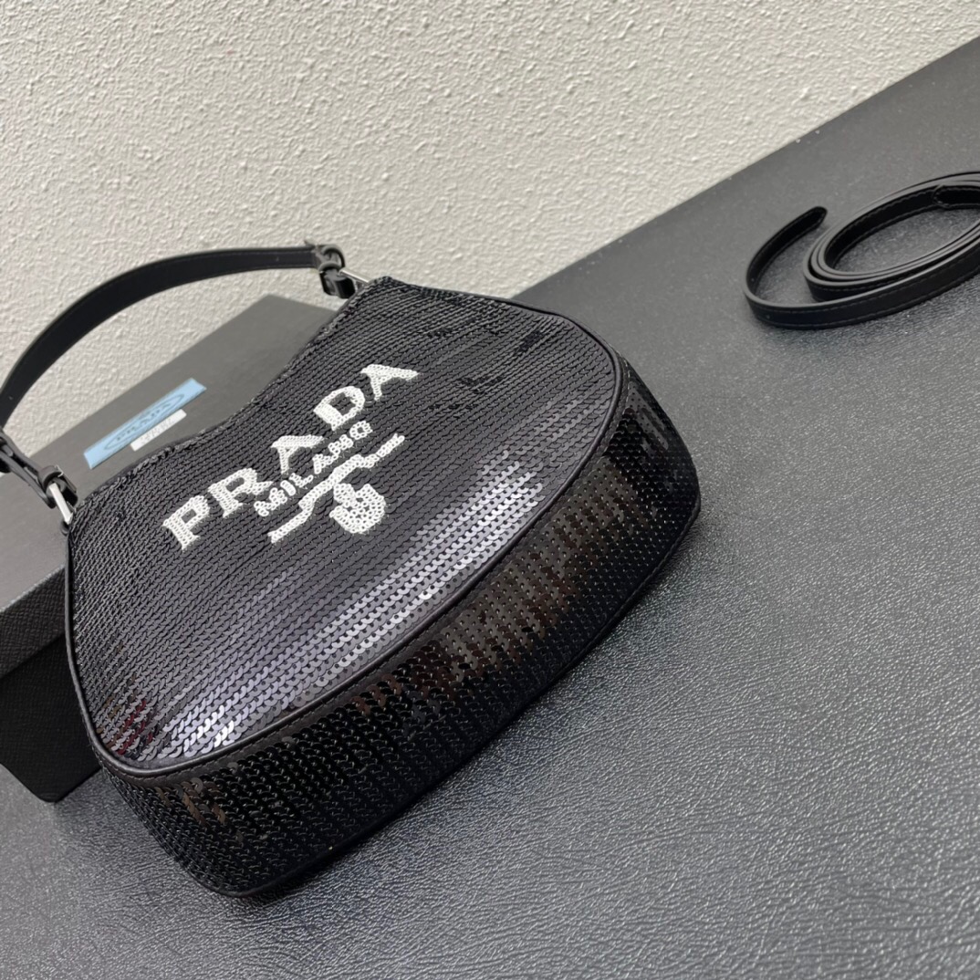 A bolsa Prada Cleo Paetê transborda muita elegância e sofisticação. Ela possui um design diferente, que atrai os olhares de pessoas que estão próximas.