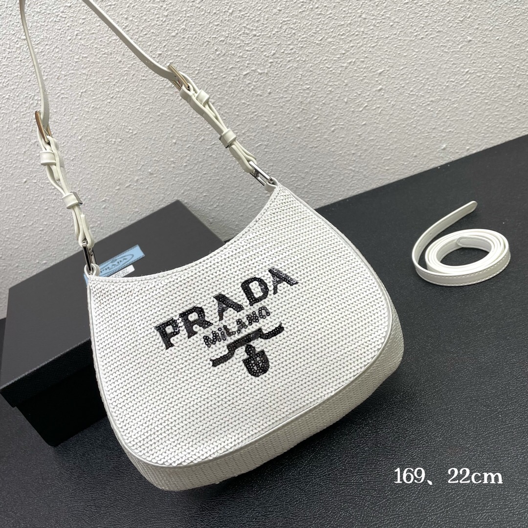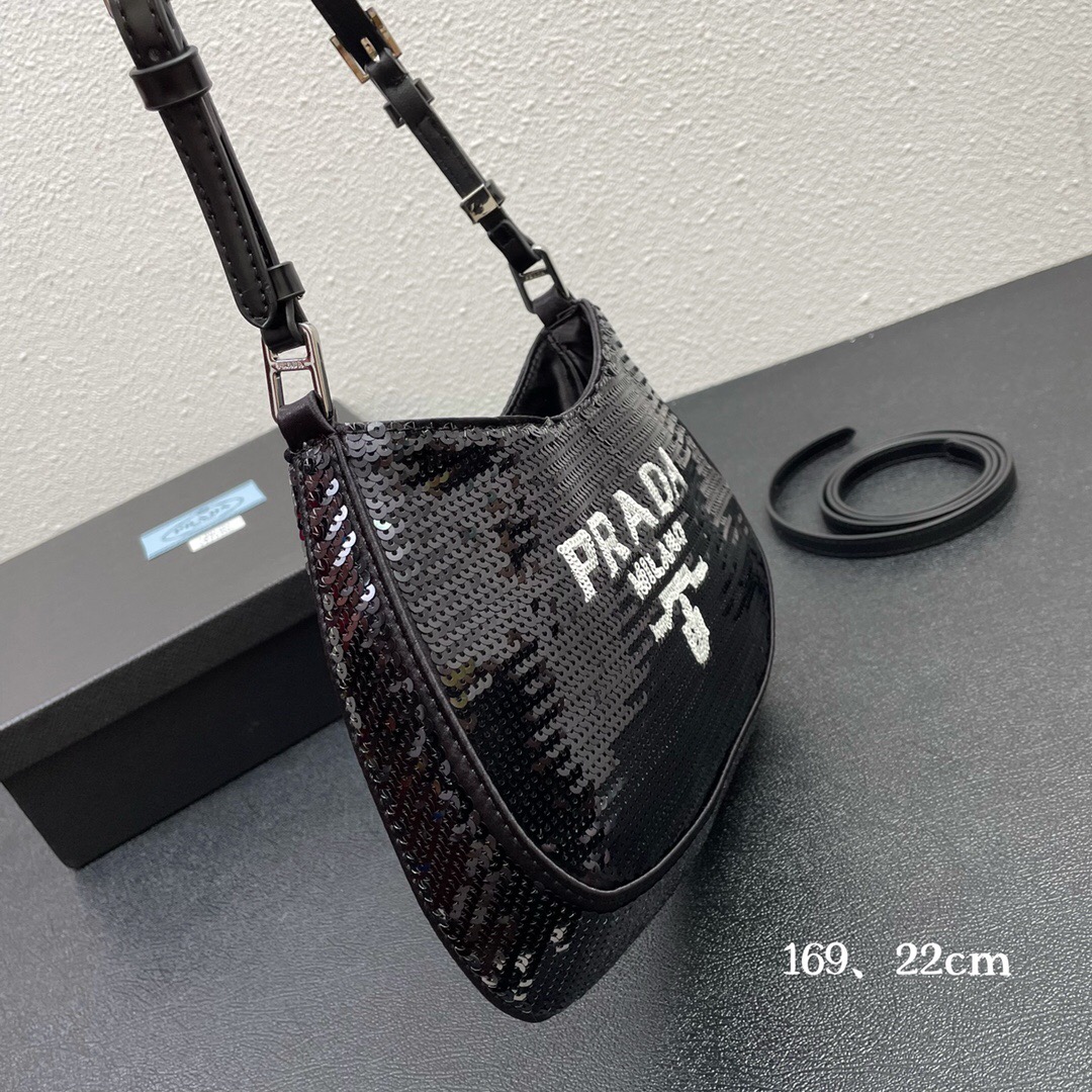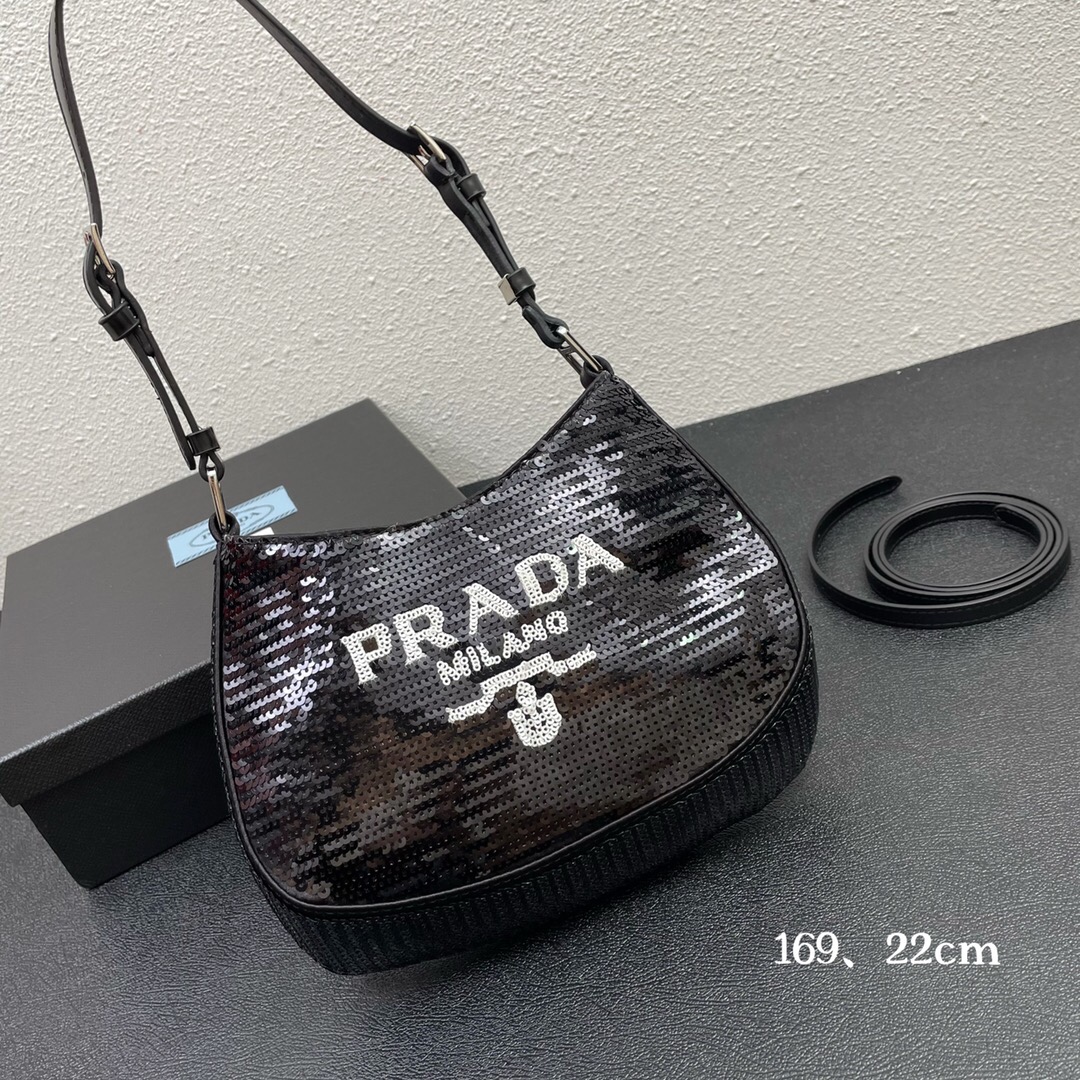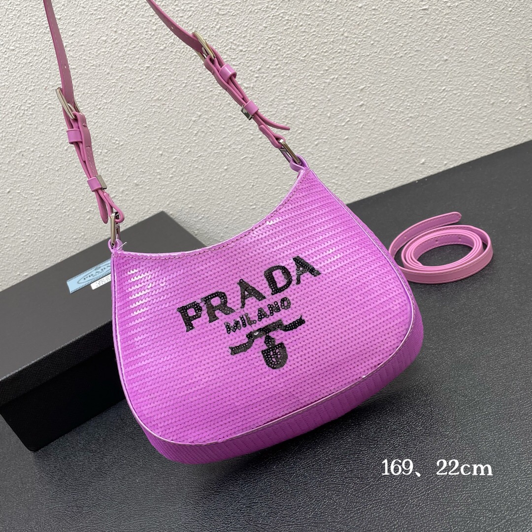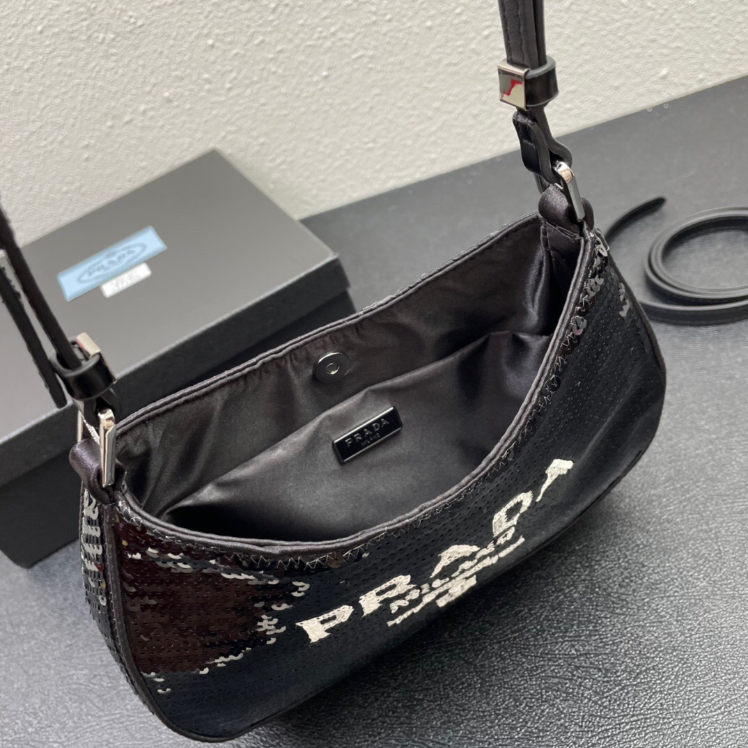 A bolsa Prada Cleo Paetê transborda muita elegância e sofisticação. Ela possui um design diferente, que atrai os olhares de pessoas que estão próximas.
