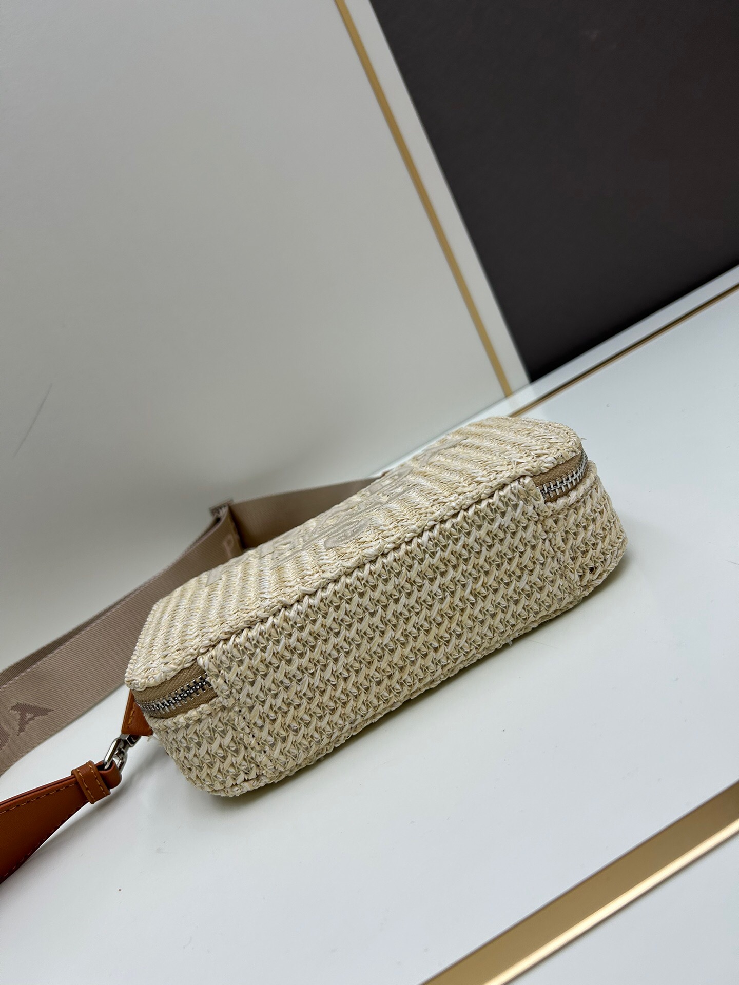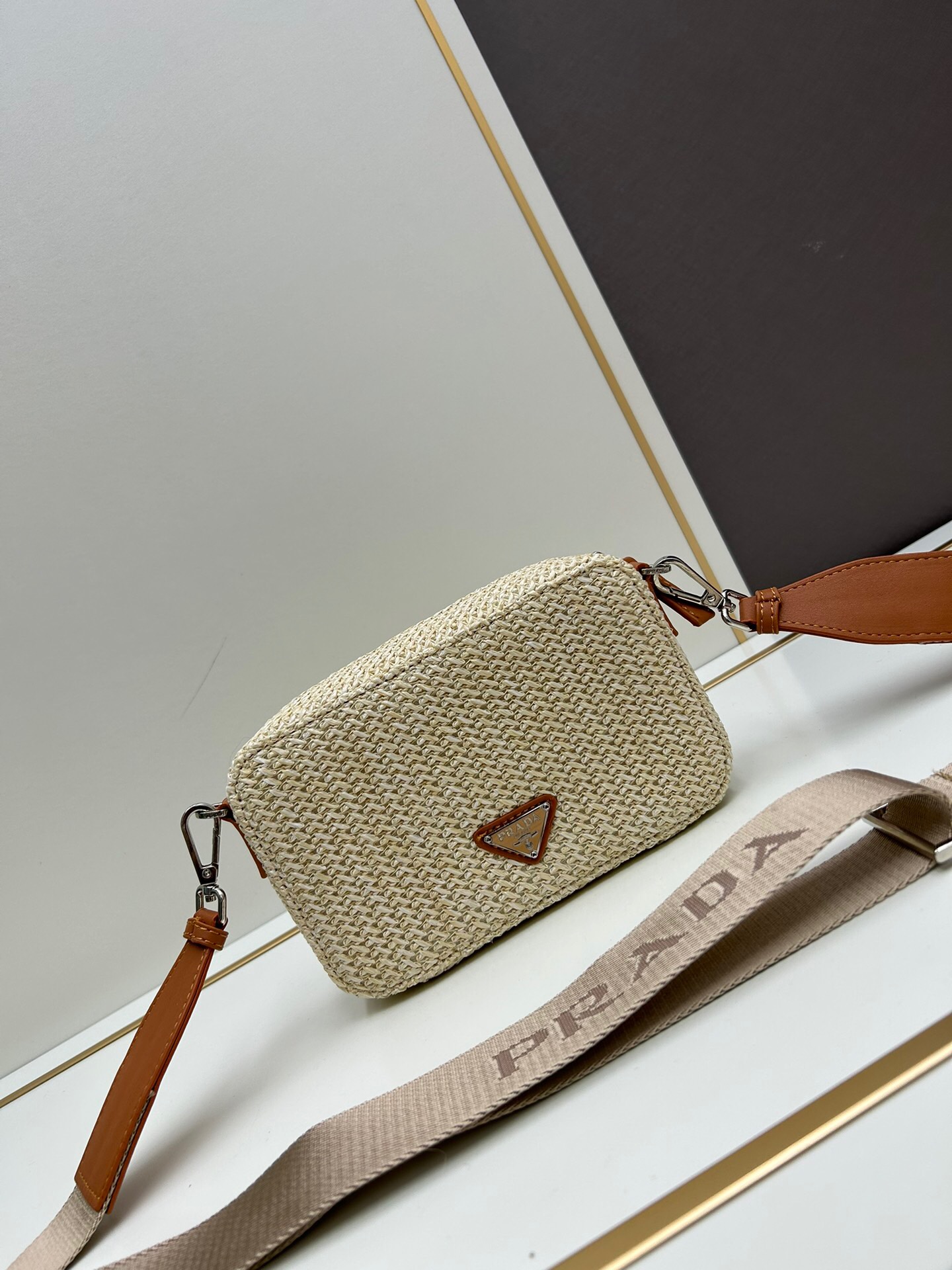 A bolsa transversal Prada em ráfia combina a textura natural da ráfia com o design sofisticado da marca. Este acessório versátil é ideal para quem busca um toque de elegância casual, com sua estrutura leve e prática para uso diário. A bolsa oferece um estilo moderno, destacando-se pela sua estética refinada e funcionalidade.