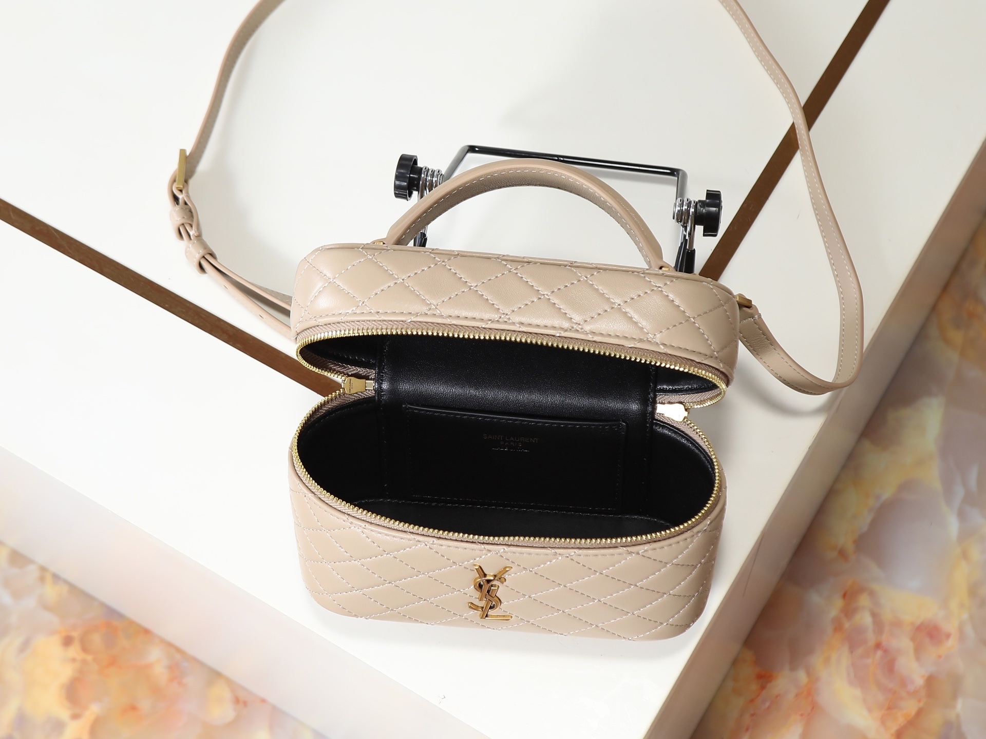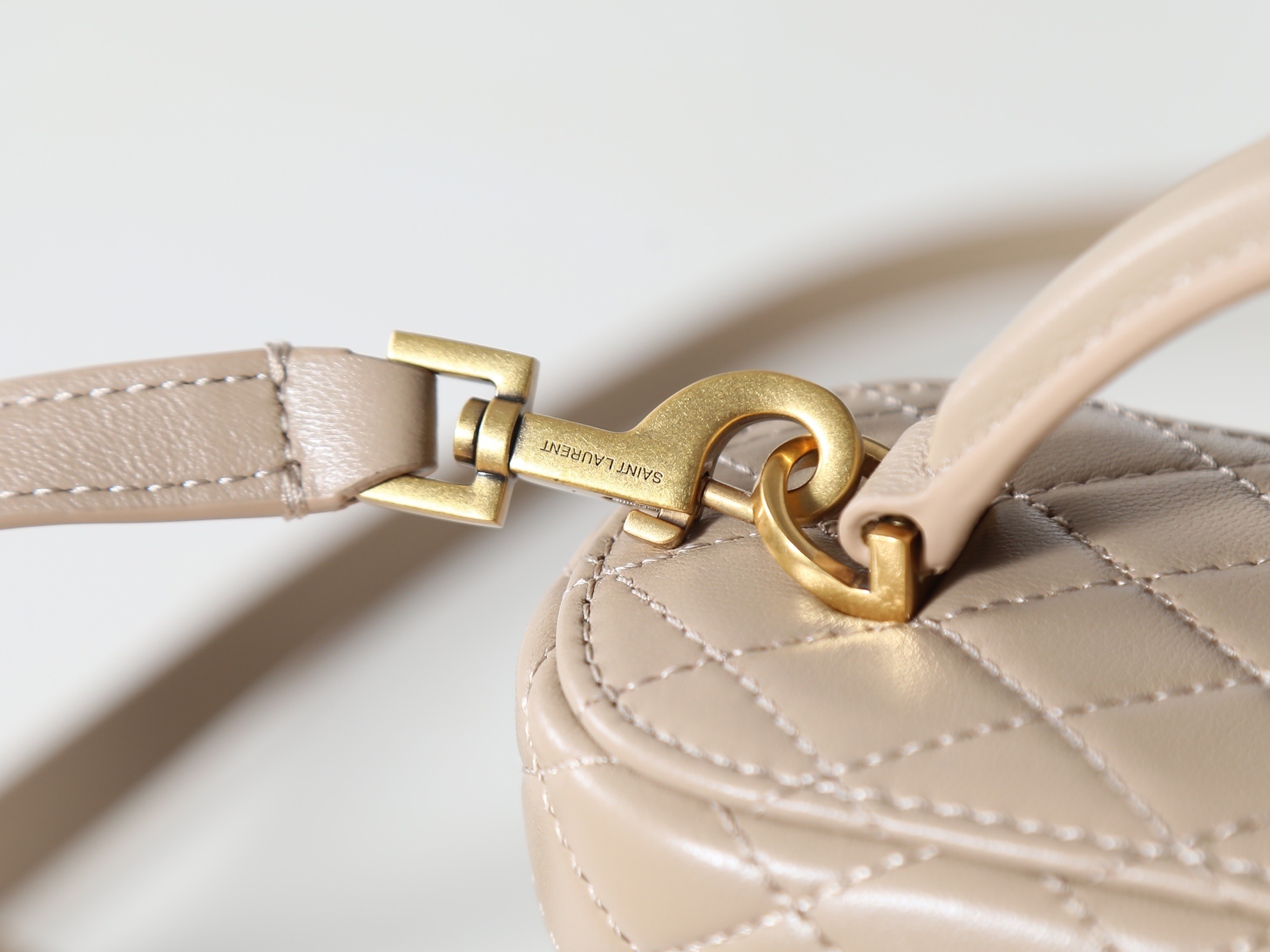 Bolsa Saint Laurent Gaby bege réplica italiana possui textura refinada e acabamento luxuoso que valoriza ainda mais o design moderno da peça.