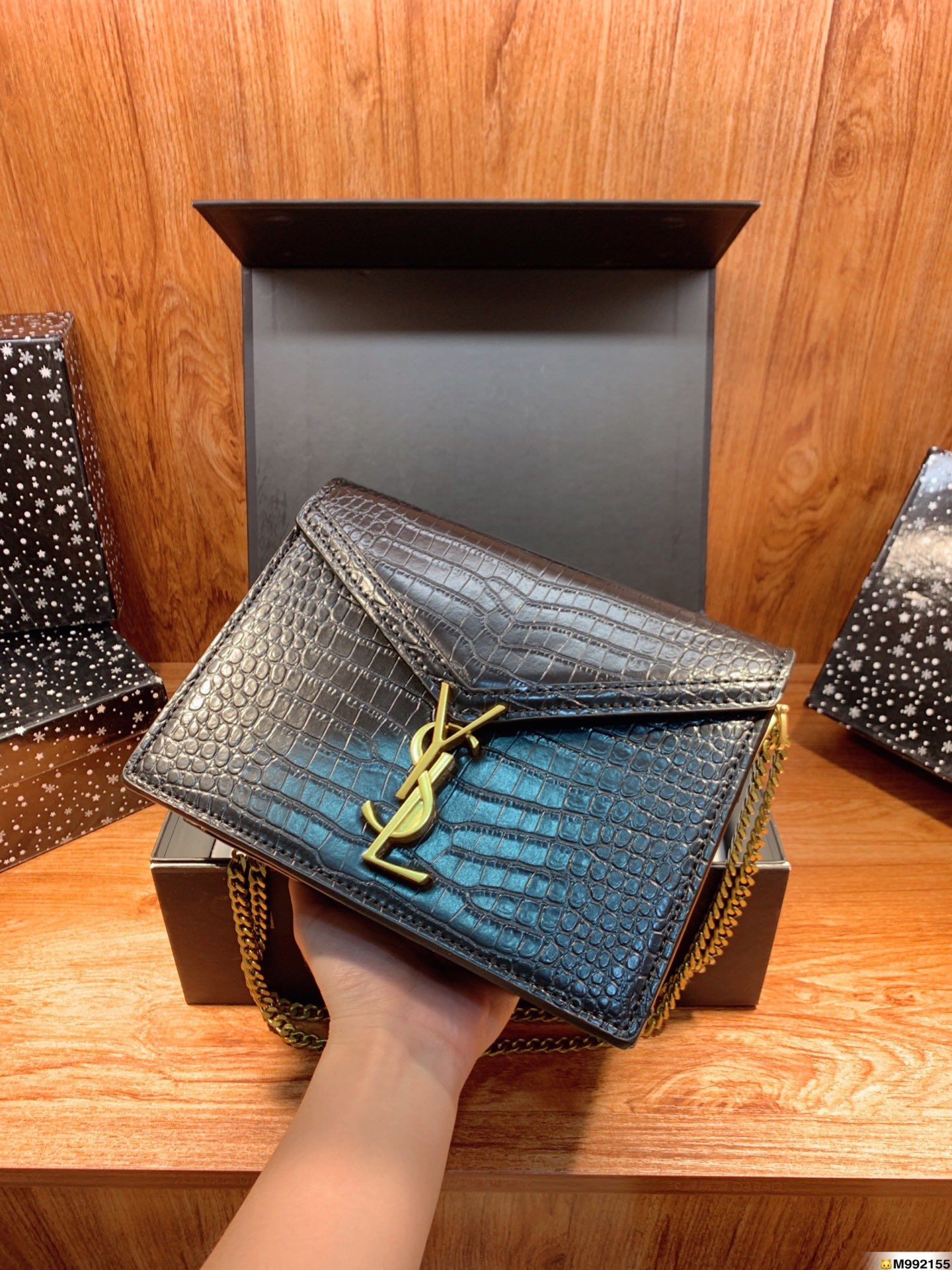 YSL Mini Cassandra chegou para arrasar nessa coleção e assim que coloca nos ombros com alça de corrente em dourado, a mulher arrasa em qualquer ambiente. Então essa é a arte em forma de bolsa da Yves Saint Laurent feita para a mulher que exala o poder da sedução nos seus trajes de luxo.