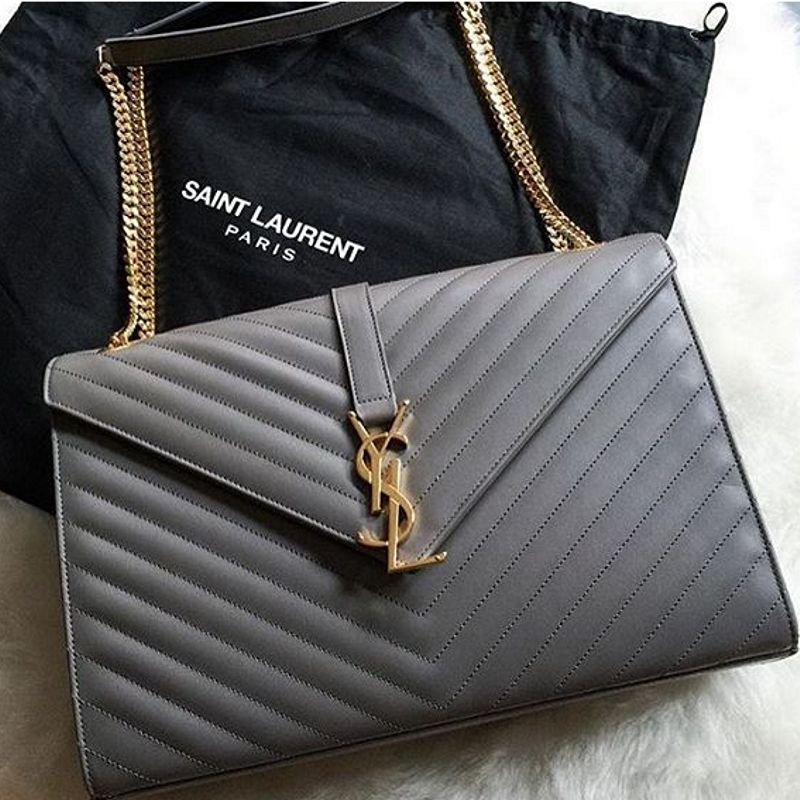 YVES SAINT LAURENT SATCHEL ENVELOPE FERRAGEM PRATEADA PRETA