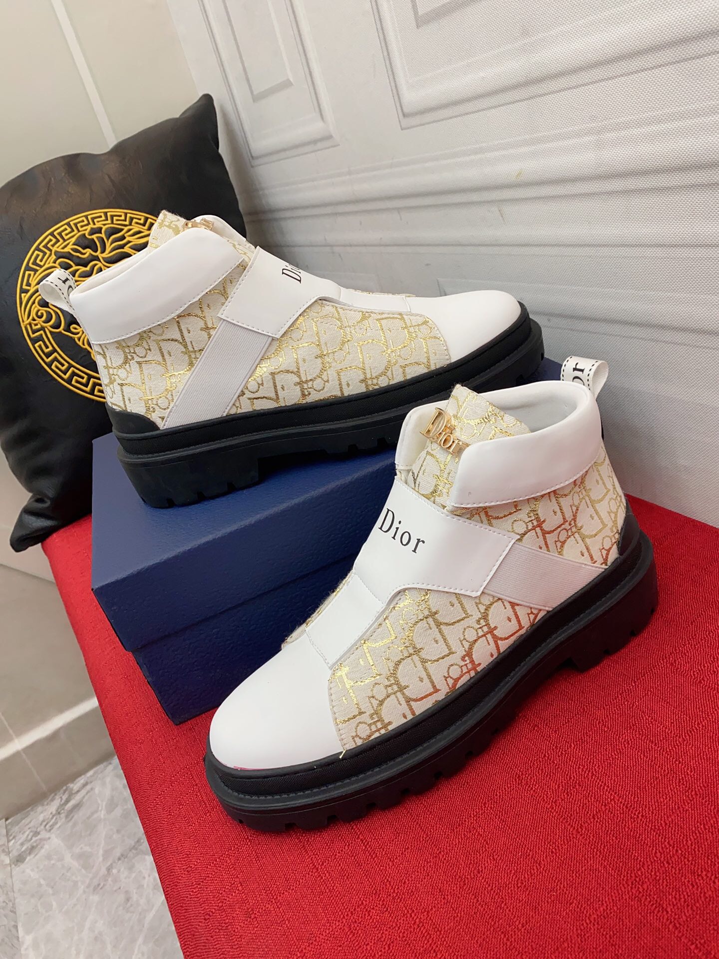 A bota no modelo cano médio Dior além de todo o conforto, traz uma beleza excêntrica e clássica como a grife. O calçado é revestido em detalhes de acabamento em couro legítimo e composto por tecido em algodão e linho, com as estampas da logomarca Dior.