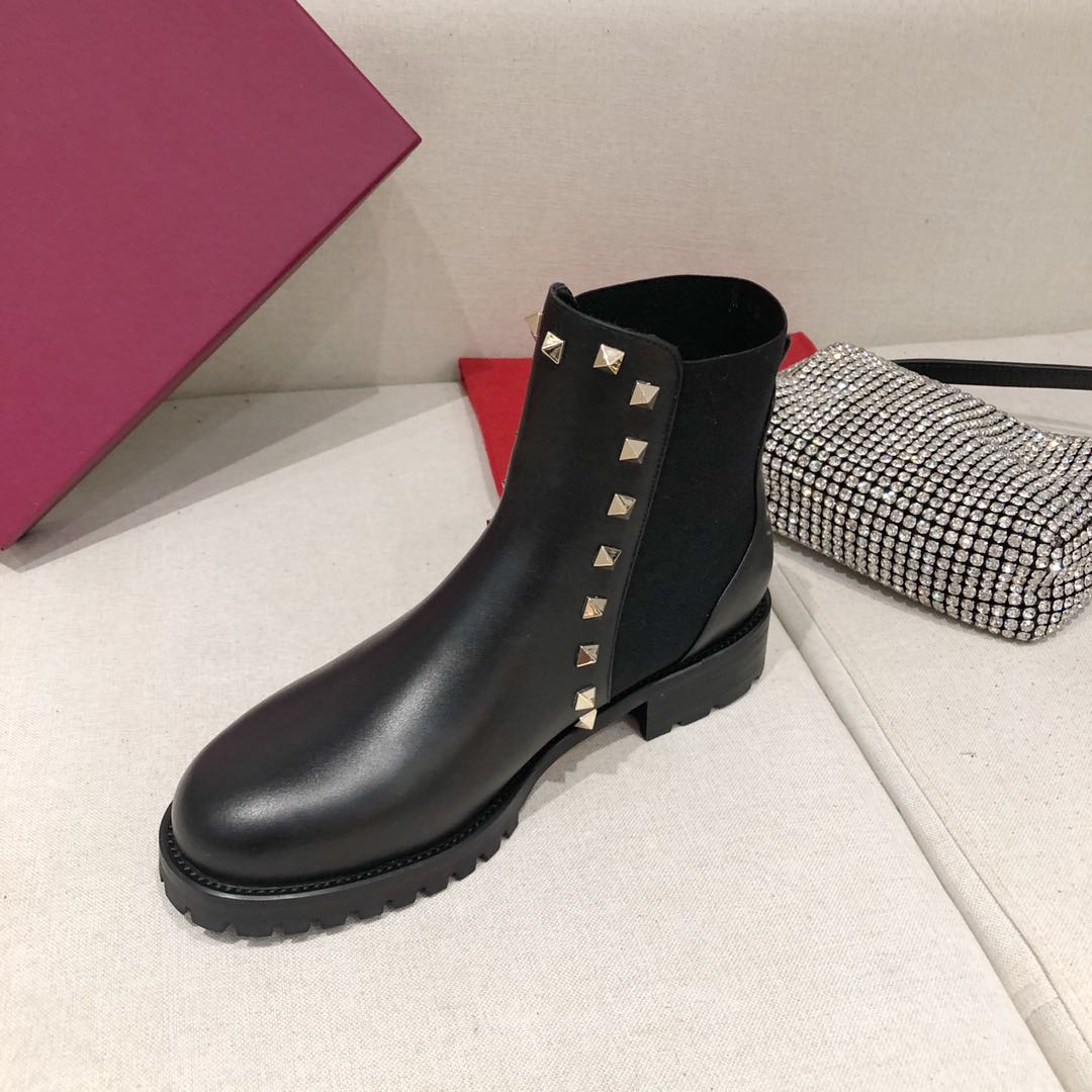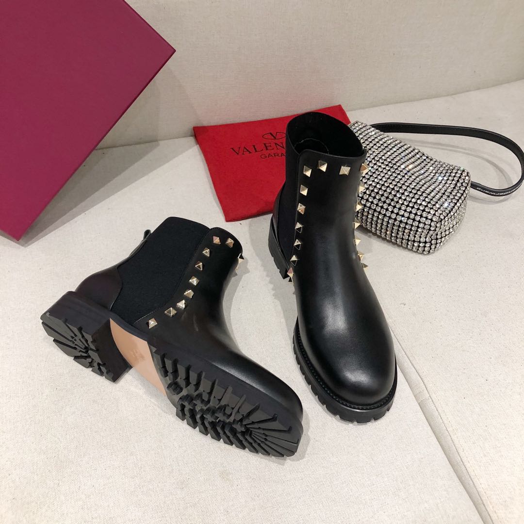 BOTA VALENTINO ROCKSTUD, MODELO EM COURO DETALHES EM METAL E SOLADO EMBORRACHADO