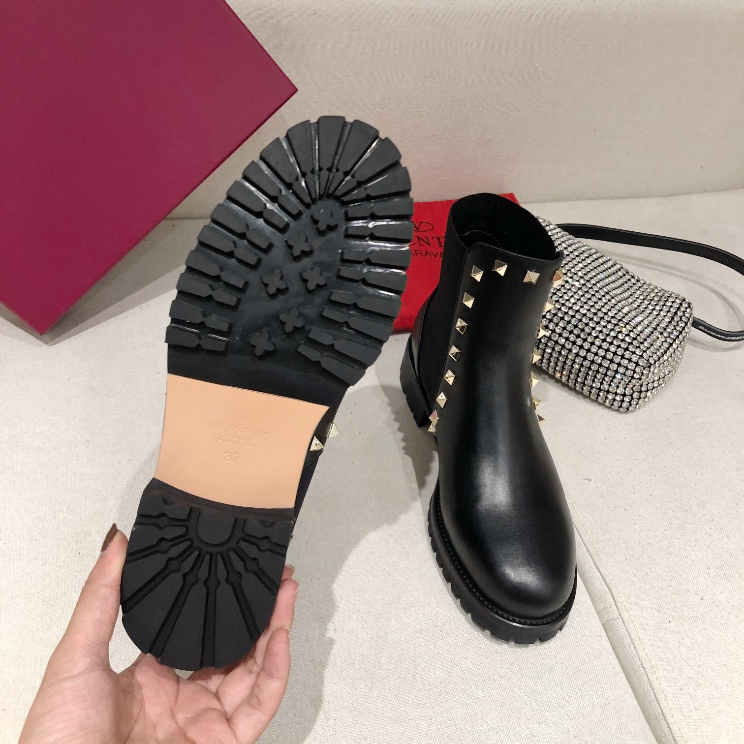 A BOTA VALENTINO ROCKSTUD é um item indispensável para quem busca elegância e sofisticação no dia a dia. Na Paris Deluxe, garantimos a melhor qualidade e acabamento do mercado.