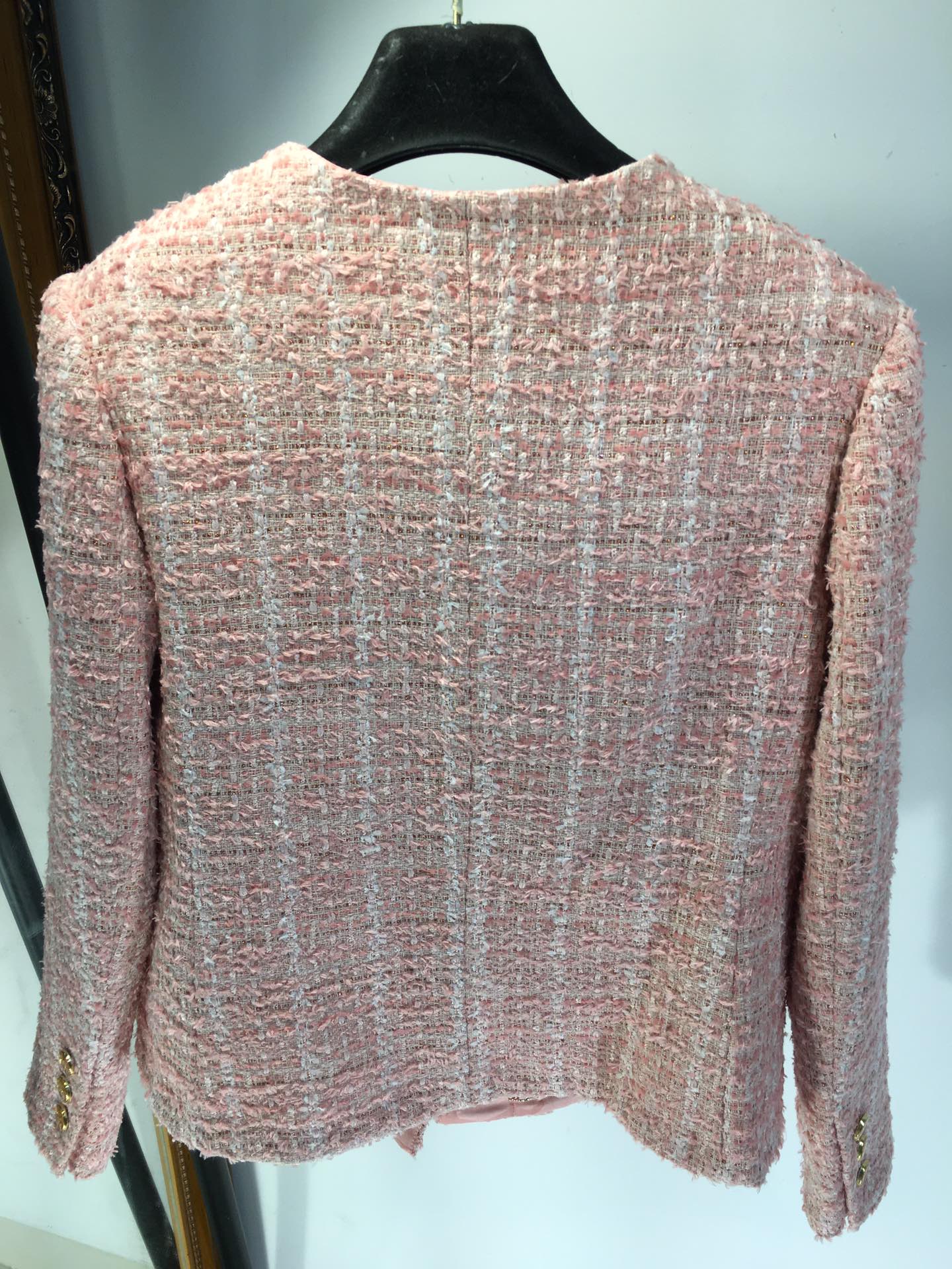 O cardigan Ch é feito com uma malha grossa na cor rosê, contendo um forro em cetim, proporcionando o máximo de conforto na hora do seu uso.