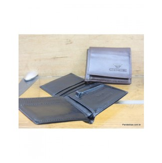 Carteira Masculina pequena com 5 divisórias para cartão com porta moeda interna e divisória porta cedula contendo duas cores preto e marrom.
