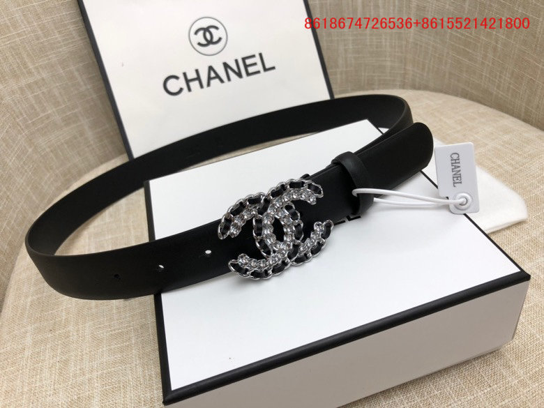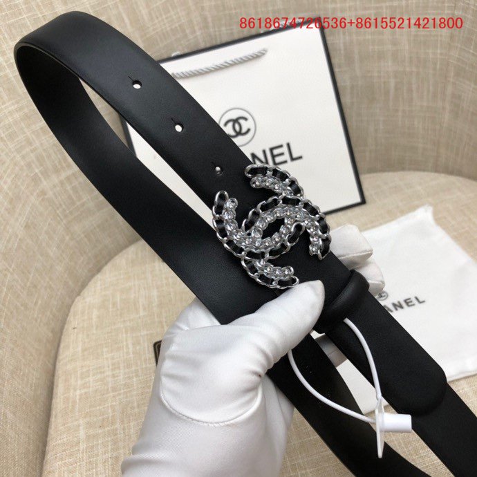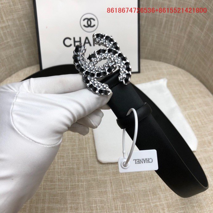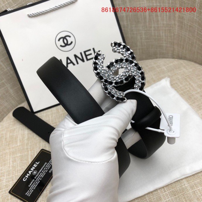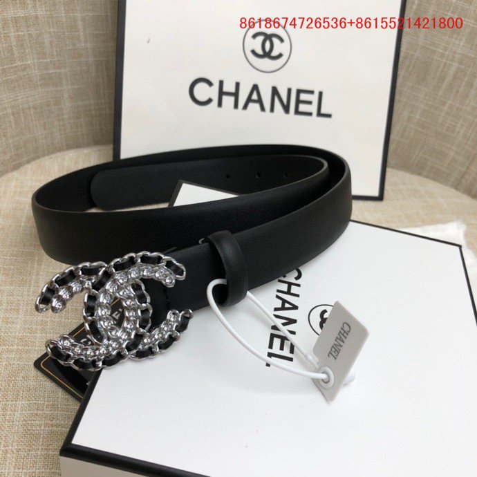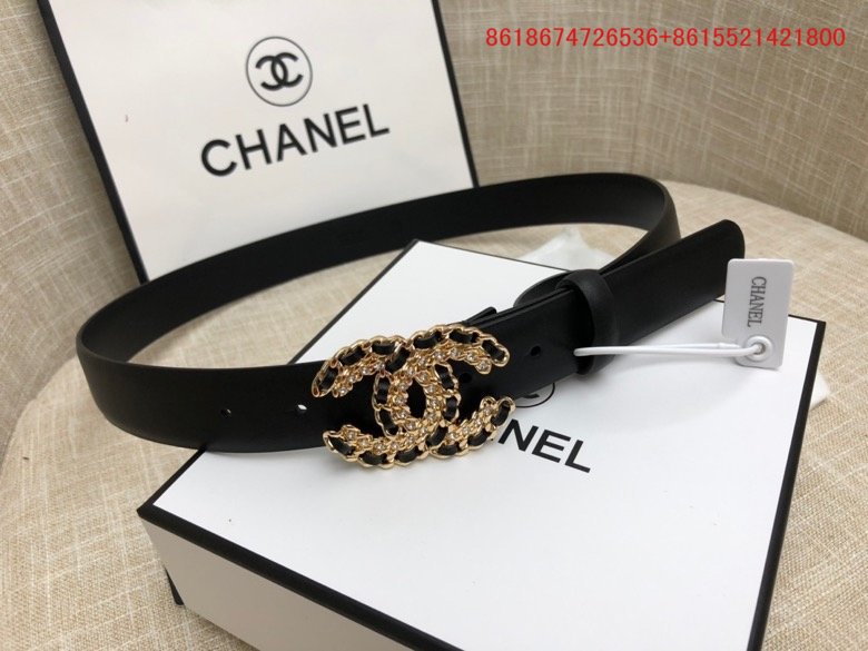 Os cintos Chanel são feitos de couro genuíno ou materiais sintéticos de alta qualidade.