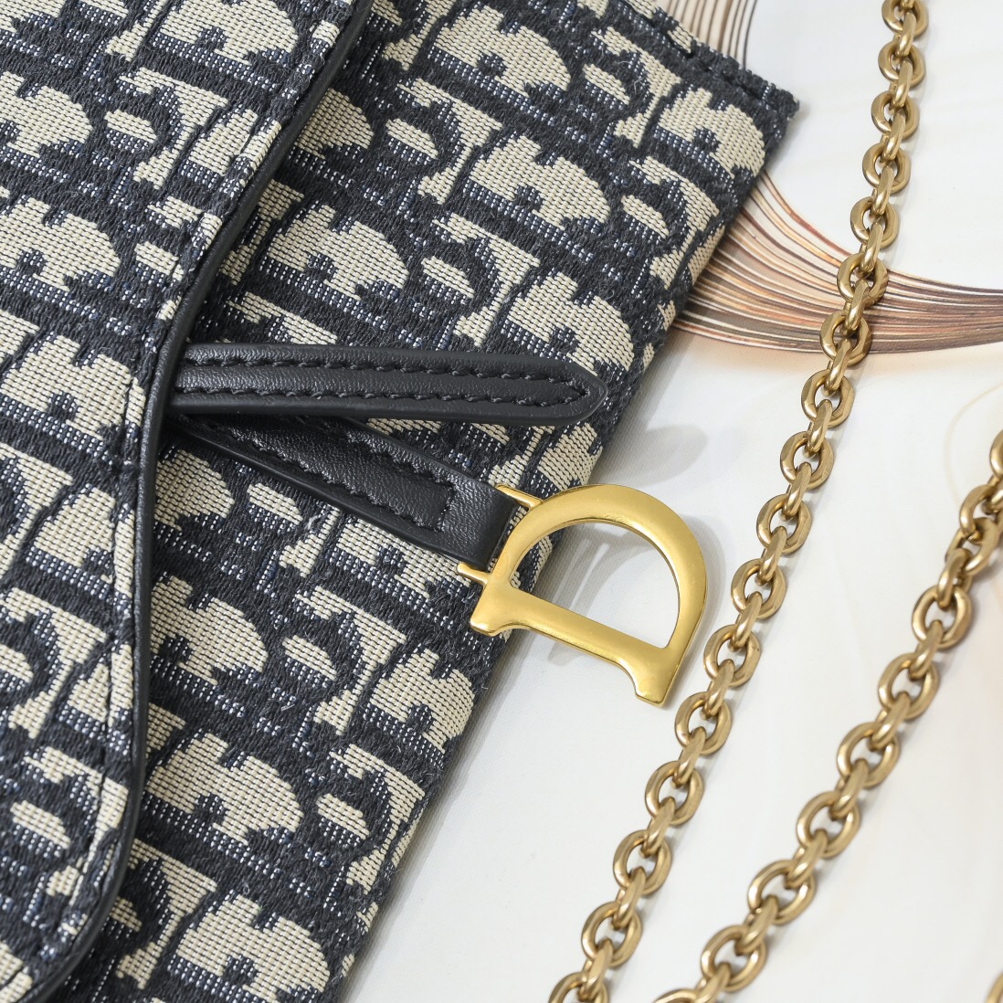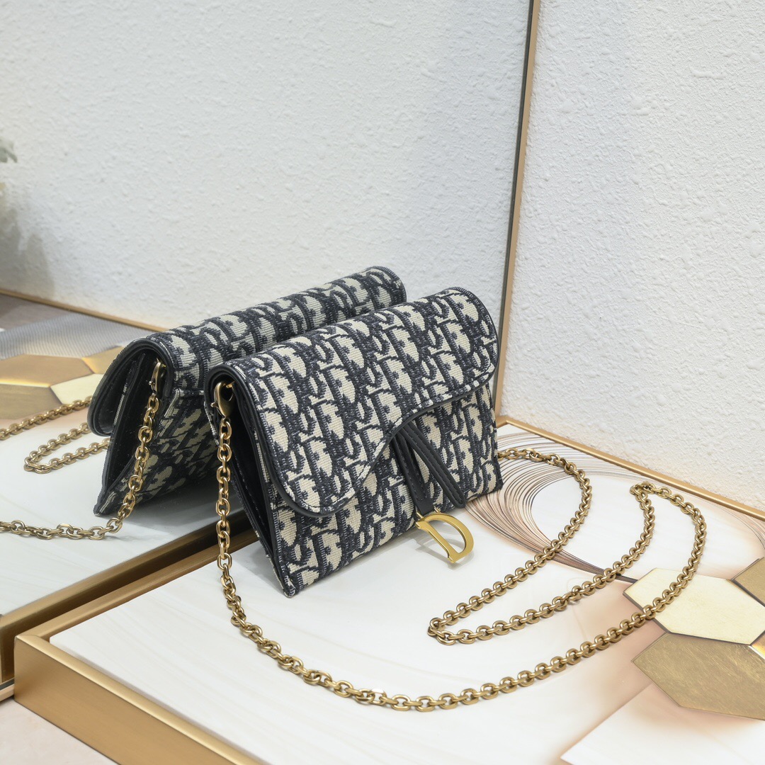 A Clutch Pochette Saddle com alça de corrente é um acessório sofisticado e elegante da Dior. Com o icônico design Saddle, que se destaca pela sua forma curvilínea e aba assimétrica, essa pochette é confeccionada em couro de alta qualidade, refletindo o luxo e a tradição da marca. A alça de corrente dourada adiciona um toque de glamour e versatilidade, permitindo que ela seja usada tanto no ombro quanto na mão. Compacta, porém espaçosa o suficiente para os itens essenciais, essa clutch é a escolha perfeita para ocasiões especiais ou para adicionar um toque de classe ao visual diário.