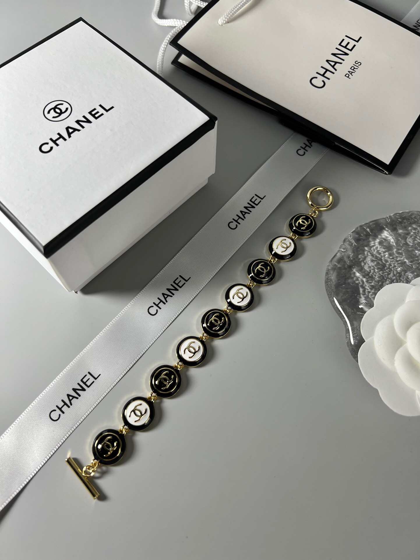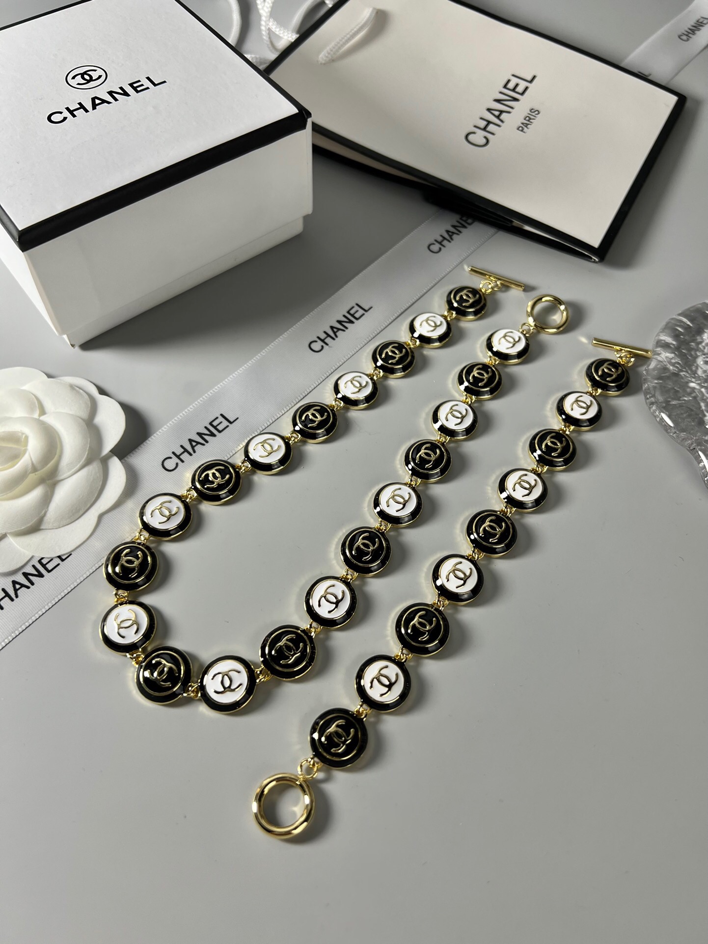 COLAR CHANEL DE LUXO, MODELO EM AÇO E INOX COM BANHO DE RODIUM