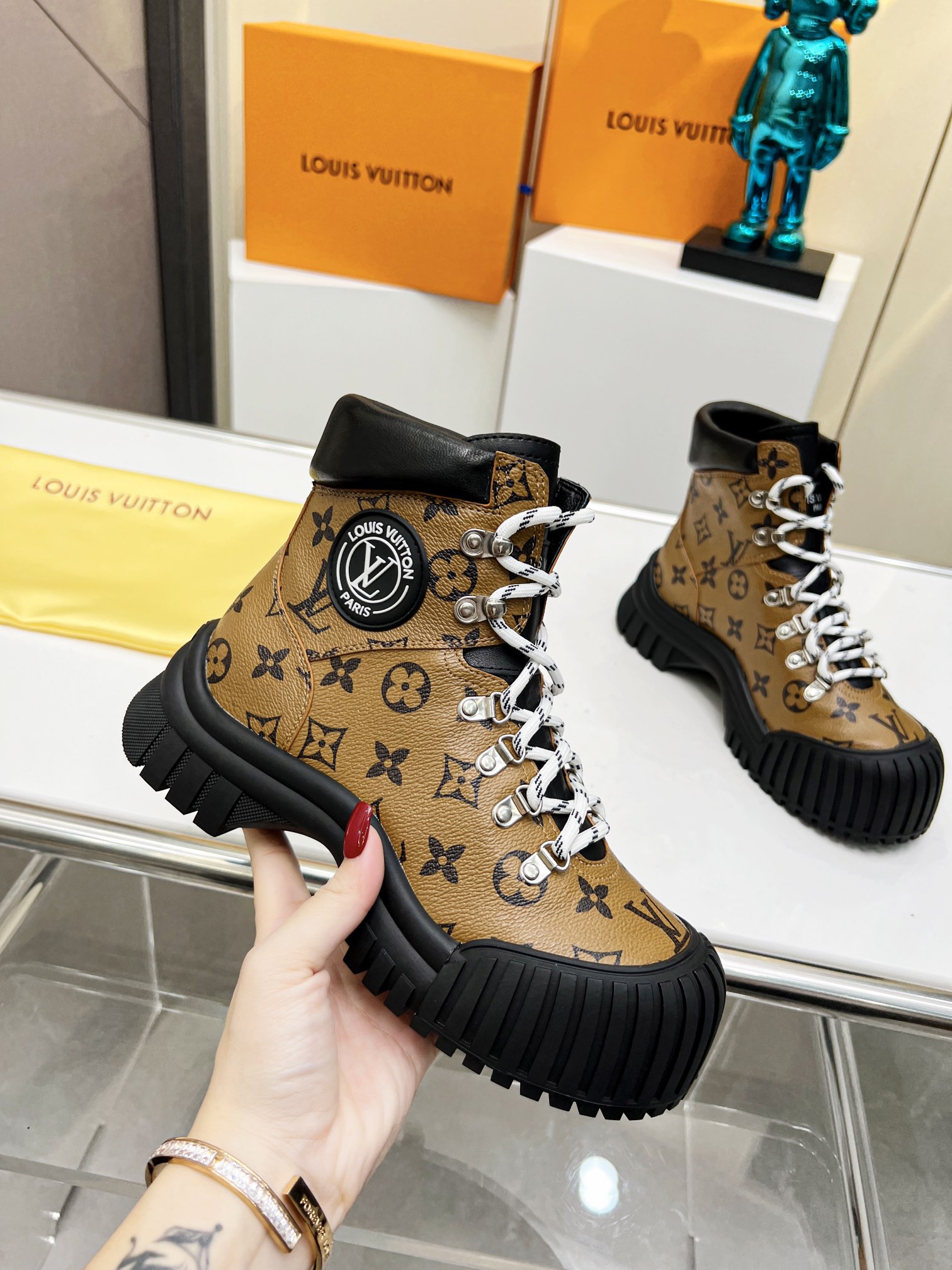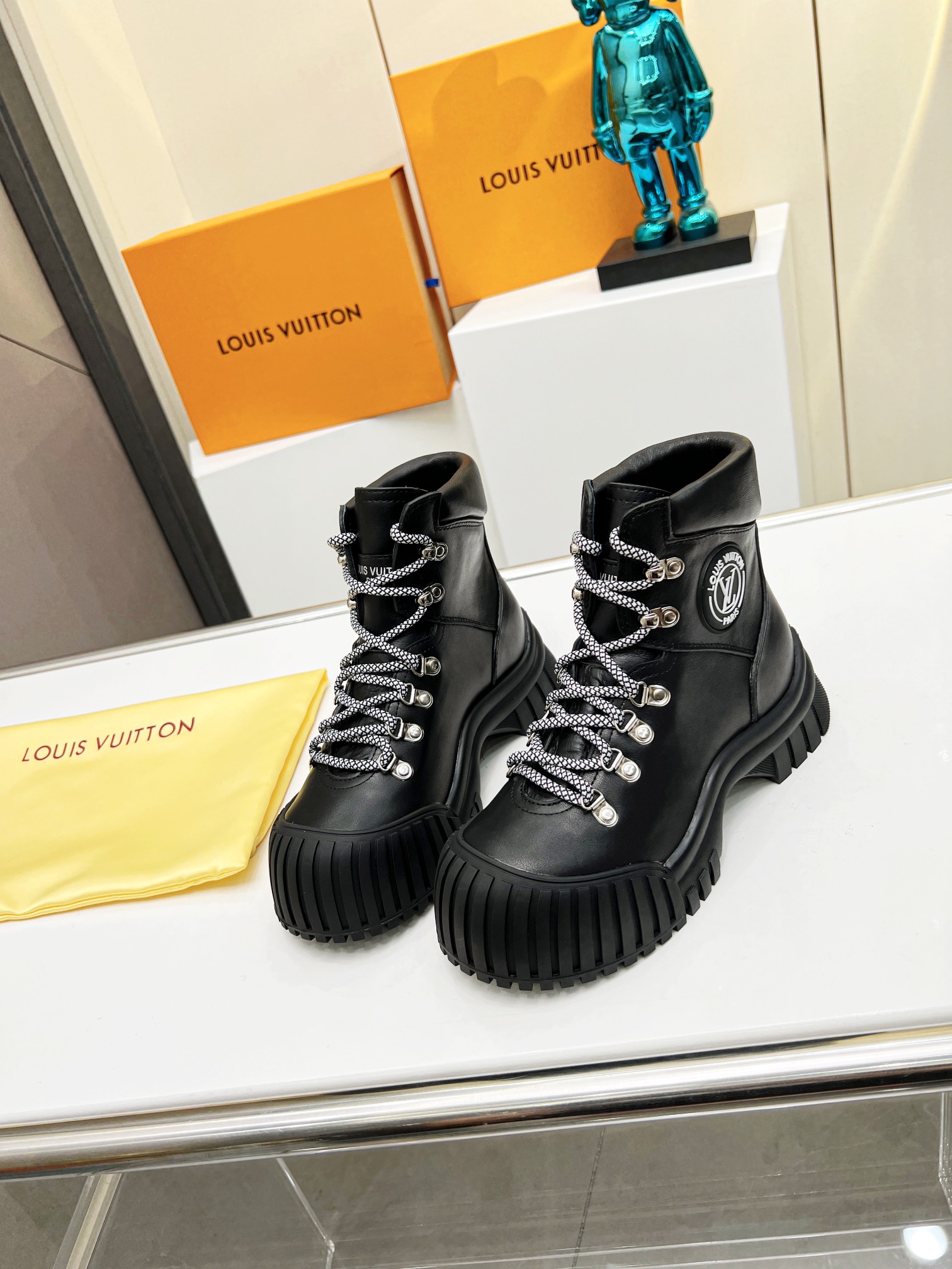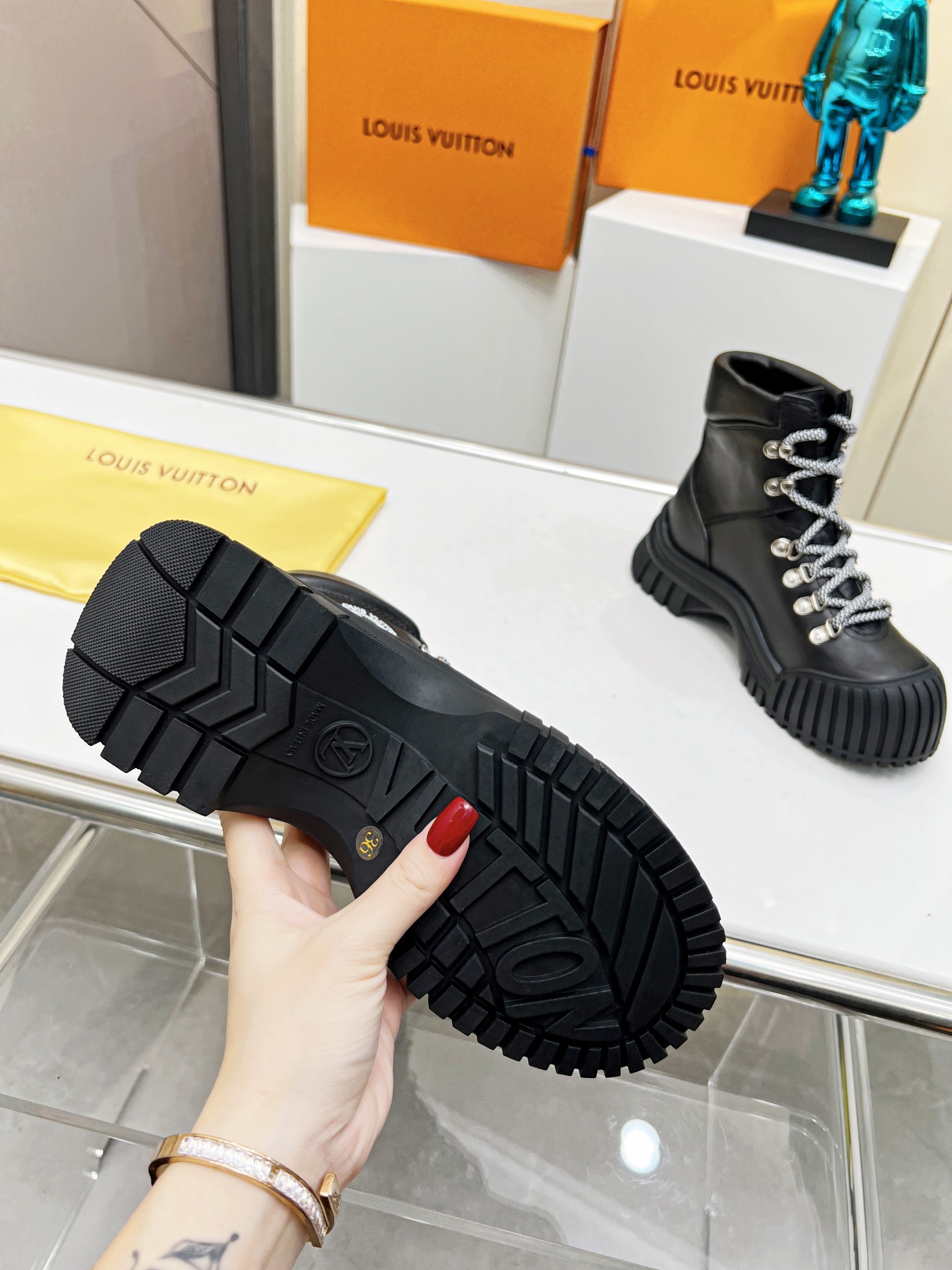 COTURNO RUBY LOUIS VUITTON, COLADO EM BORRACHA, MODELO TODO EM COURO