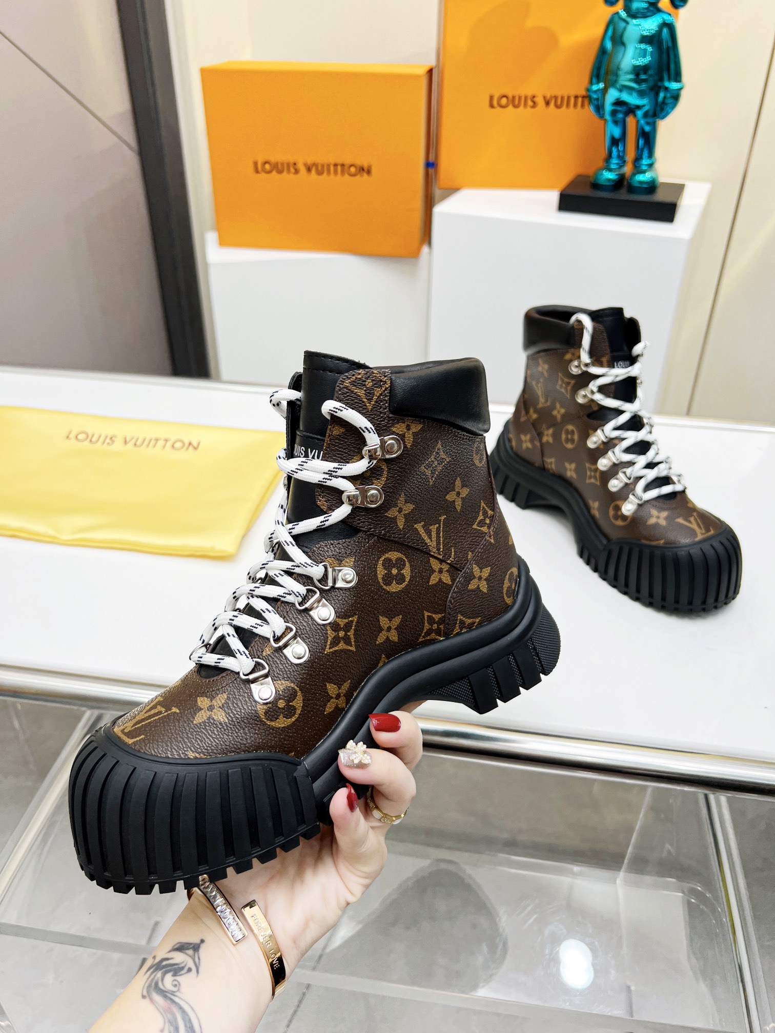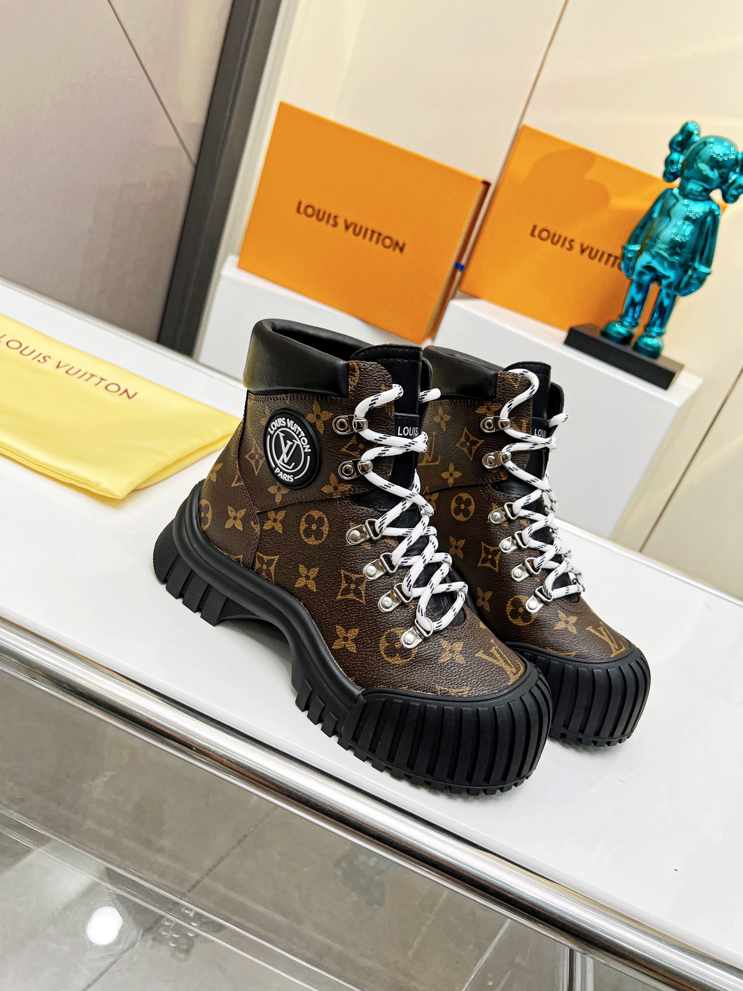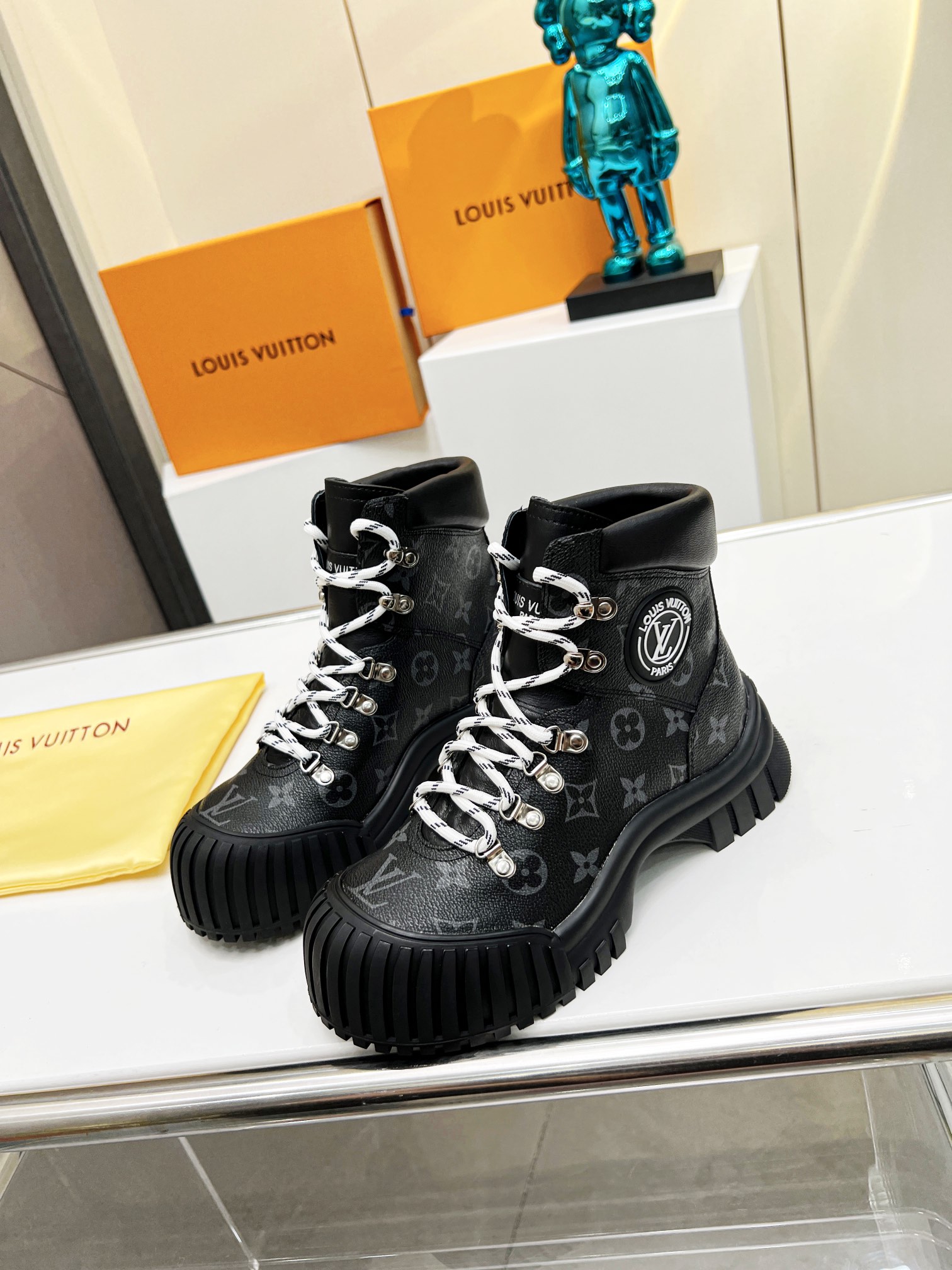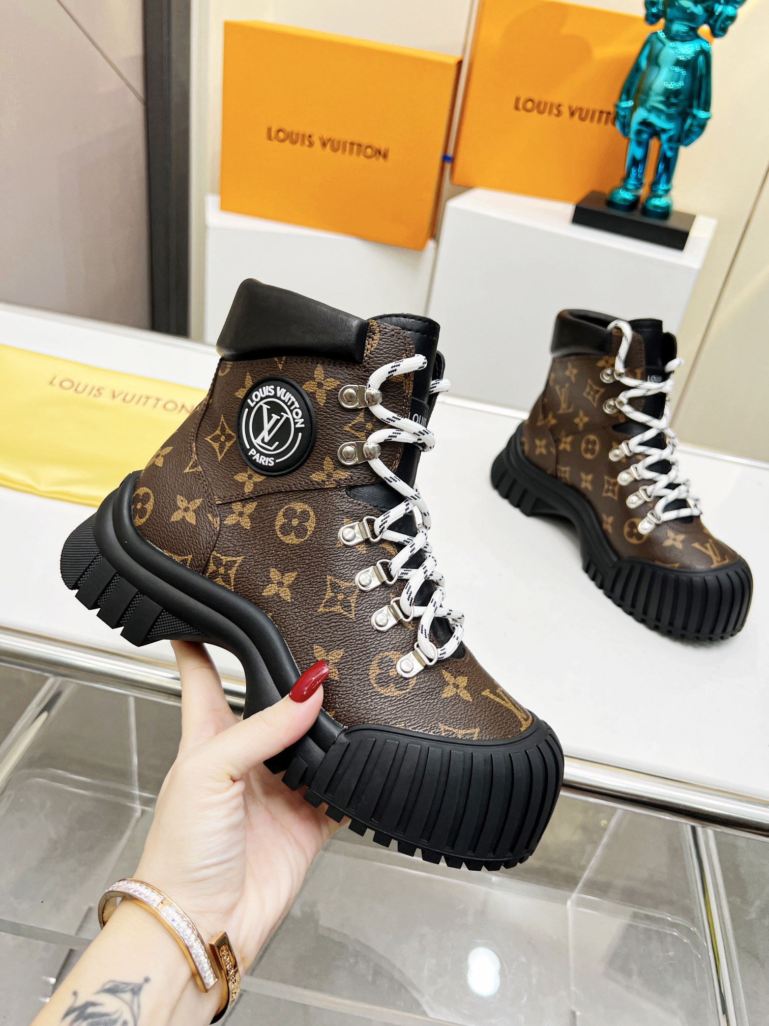 COTURNO RUBY LOUIS VUITTON, COLADO EM BORRACHA, MODELO TODO EM COURO