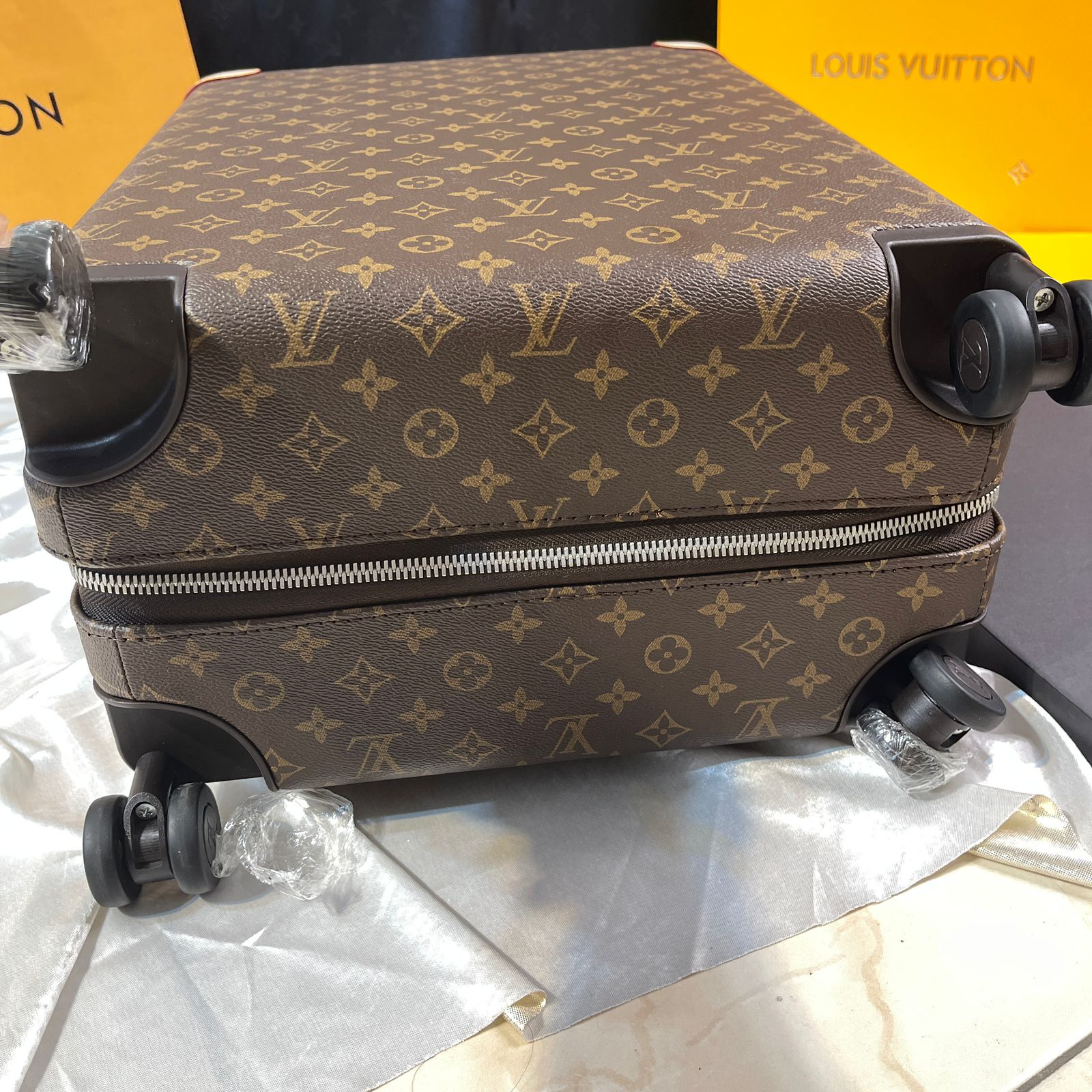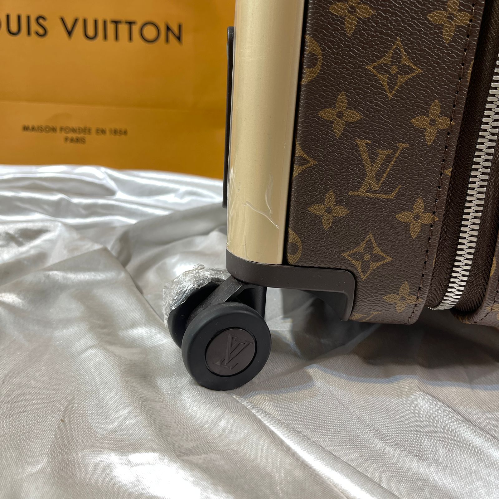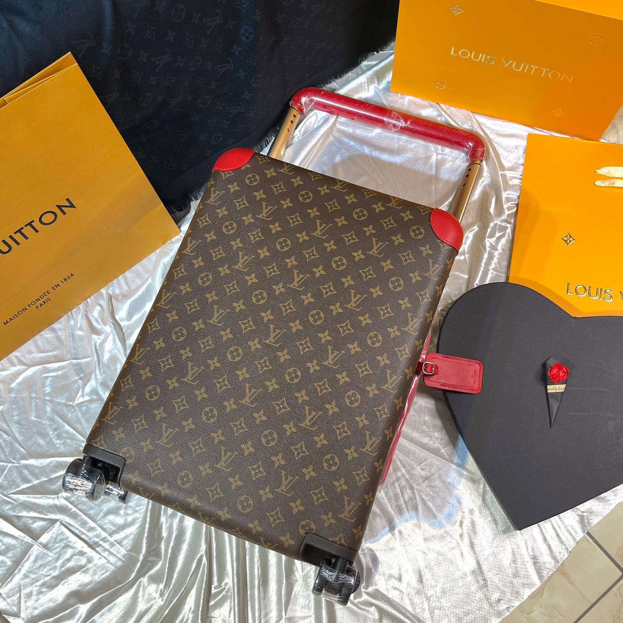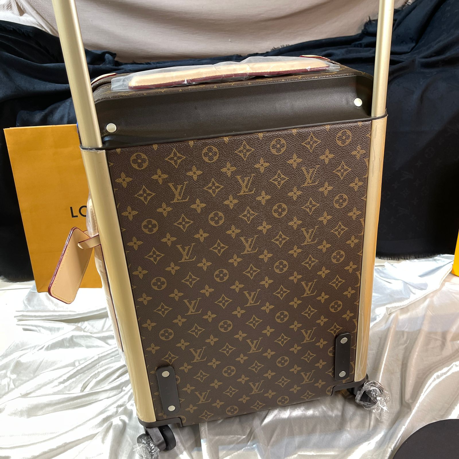 Mala feita de fibra com os acabamentos em couro, cadeado com segredo.