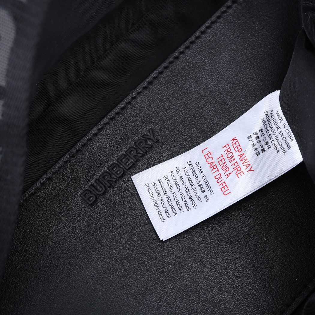 Design Burberry Clássico: A pochete apresenta o padrão icônico da Burberry em preto, um símbolo de luxo e bom gosto.