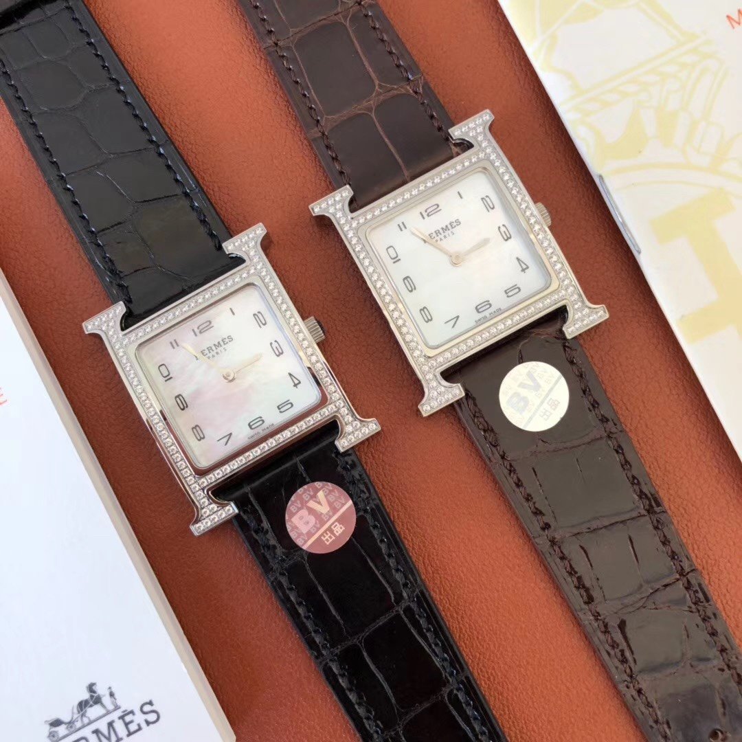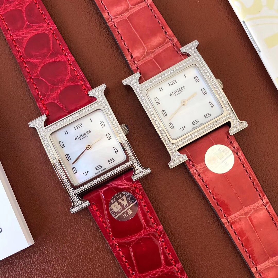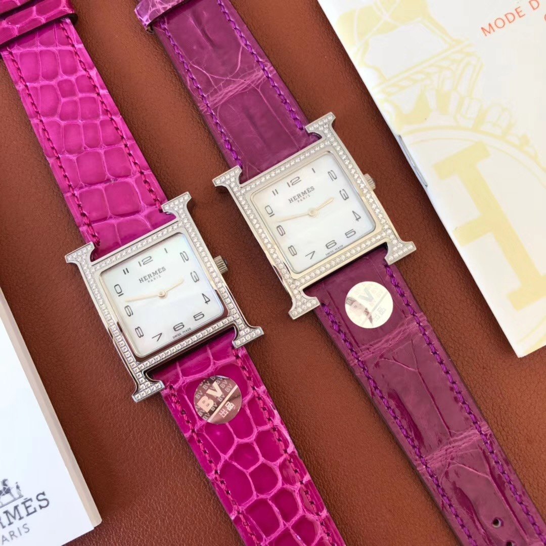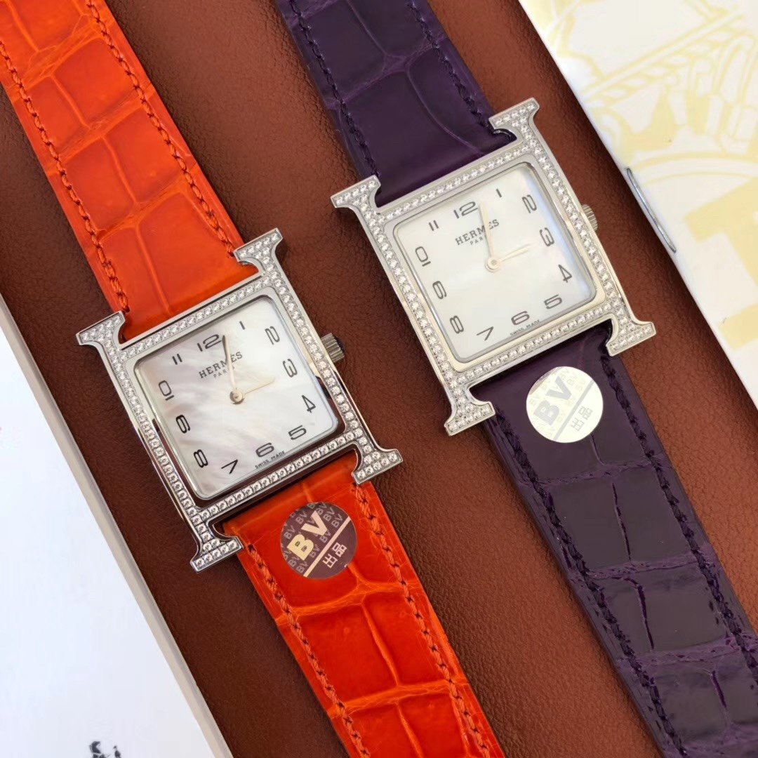Relógio feminino replica da Hermes com o mostrador madrepérola em aço inoxidável
