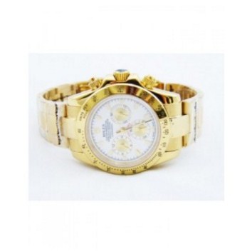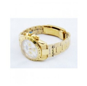 O Rolex Daytona é um relógio de pulso de luxo altamente conceituado e desejado, fabricado pela Rolex, uma das marcas de relógios mais renomadas do mundo. Este relógio é conhecido por sua elegância e precisão. O Daytona apresenta uma caixa de aço inoxidável ou ouro, um mostrador com três submostradores para medir o tempo em diferentes formatos (horas, minutos e segundos), uma luneta com escala taquimétrica e uma pulseira geralmente em aço inoxidável ou couro de alta qualidade. A precisão do movimento mecânico interno é notável, tornando-o um cronógrafo altamente valorizado para entusiastas e colecionadores de relógios. O Daytona é um ícone da relojoaria, conhecido por sua combinação de funcionalidade e elegância intemporal.