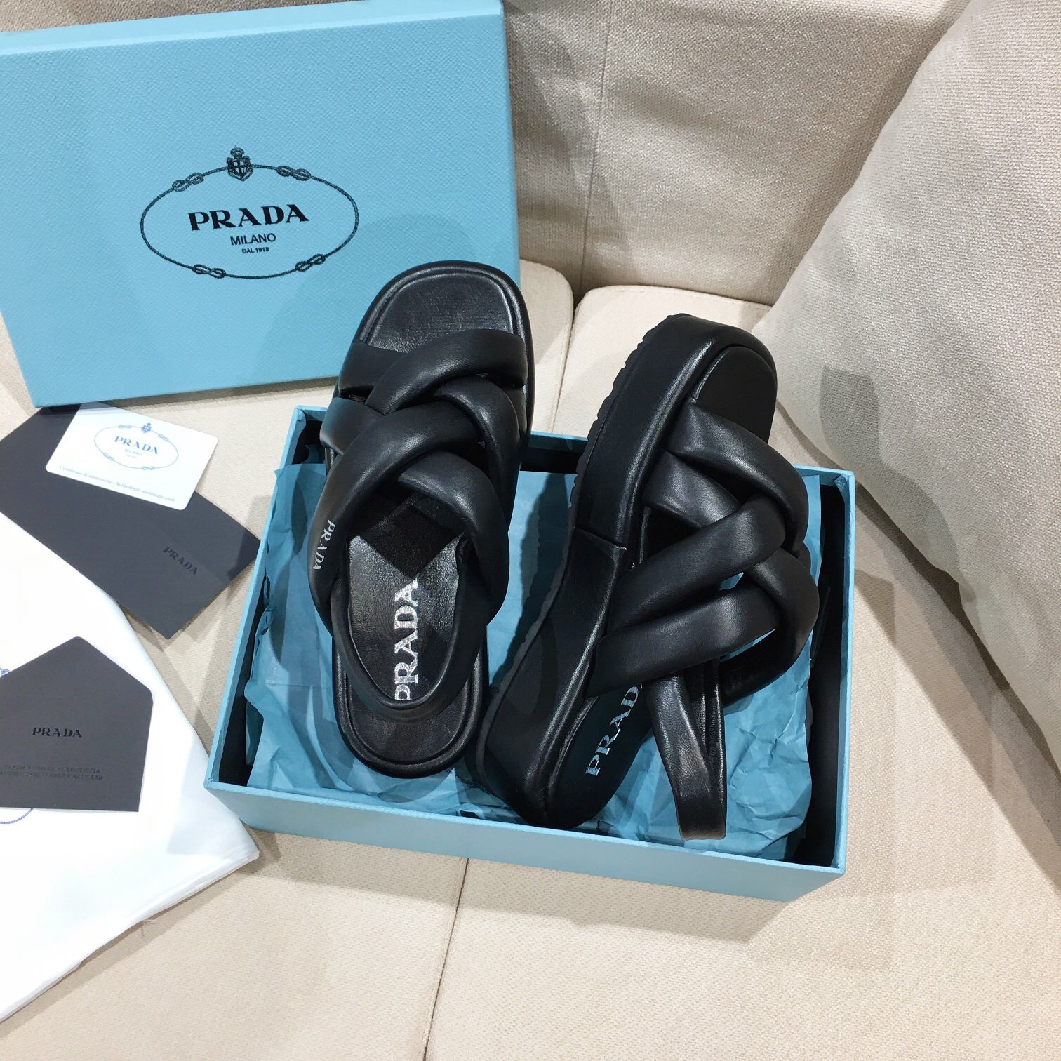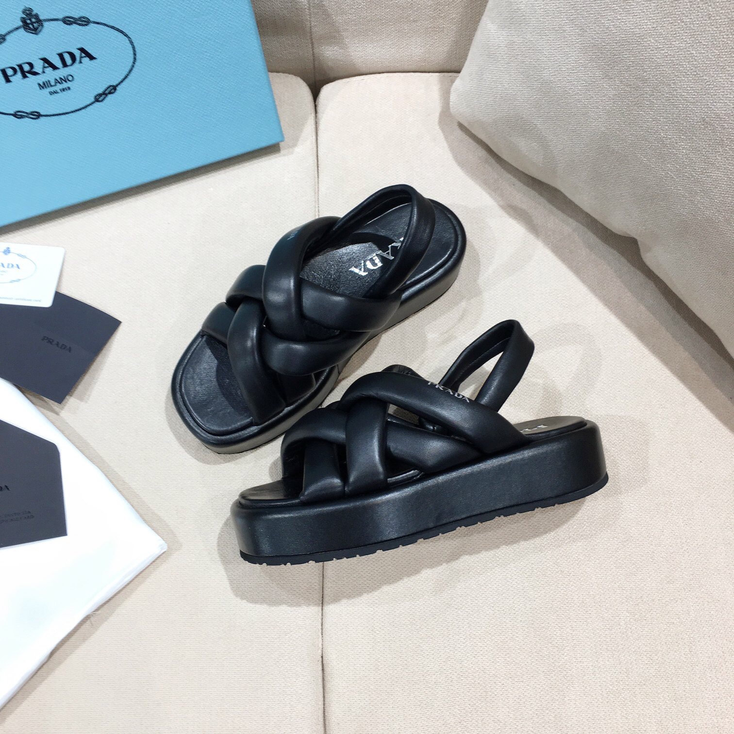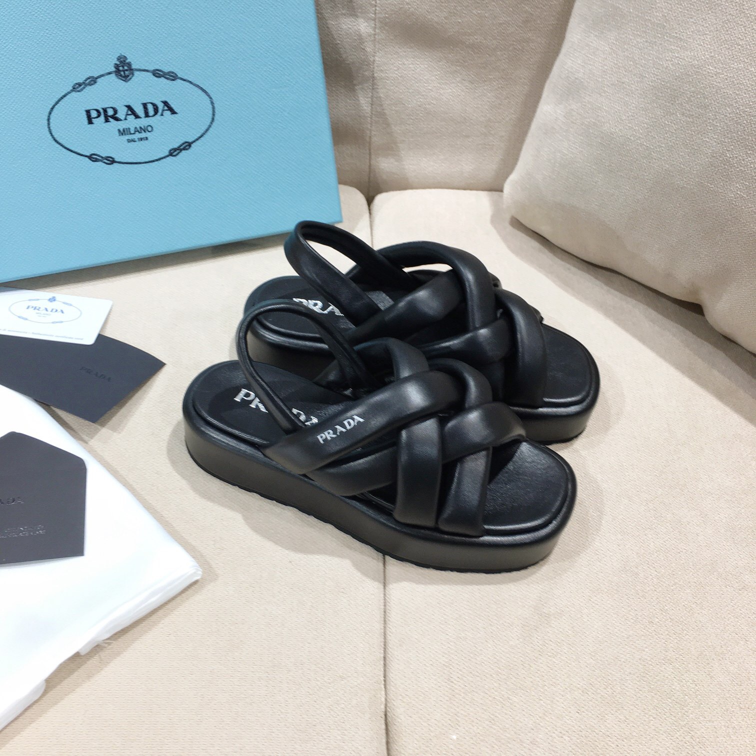 A SANDALIA PLATAFORMA PRADA é um item indispensável para quem busca elegância e sofisticação no dia a dia. Na Paris Deluxe, garantimos a melhor qualidade e acabamento do mercado.