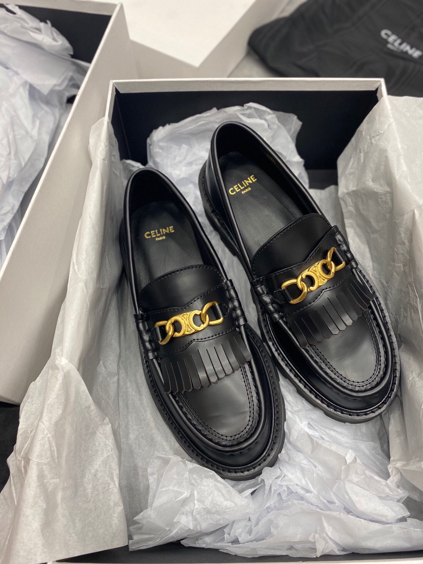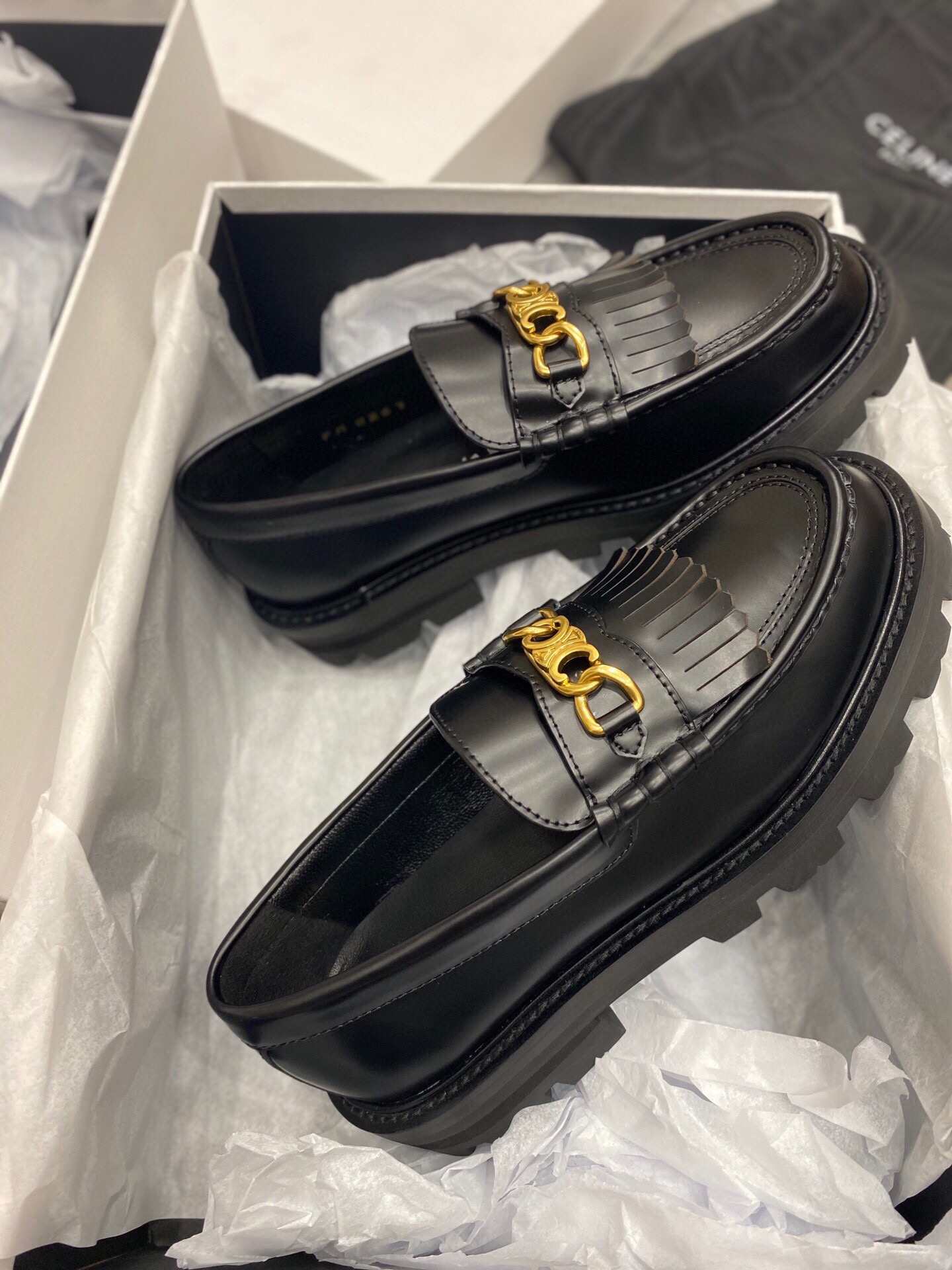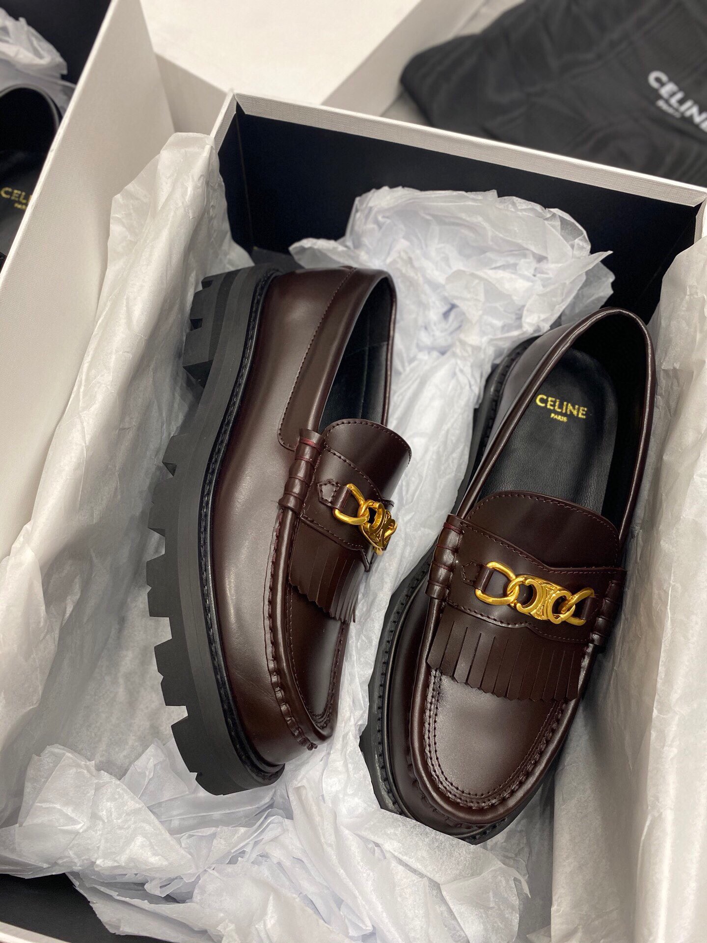 os Sapatos Celine Tratorados Femininos em Couro! Projetados para a mulher moderna que busca estilo, durabilidade e conforto, esses sapatos são o acessório perfeito para elevar qualquer look.