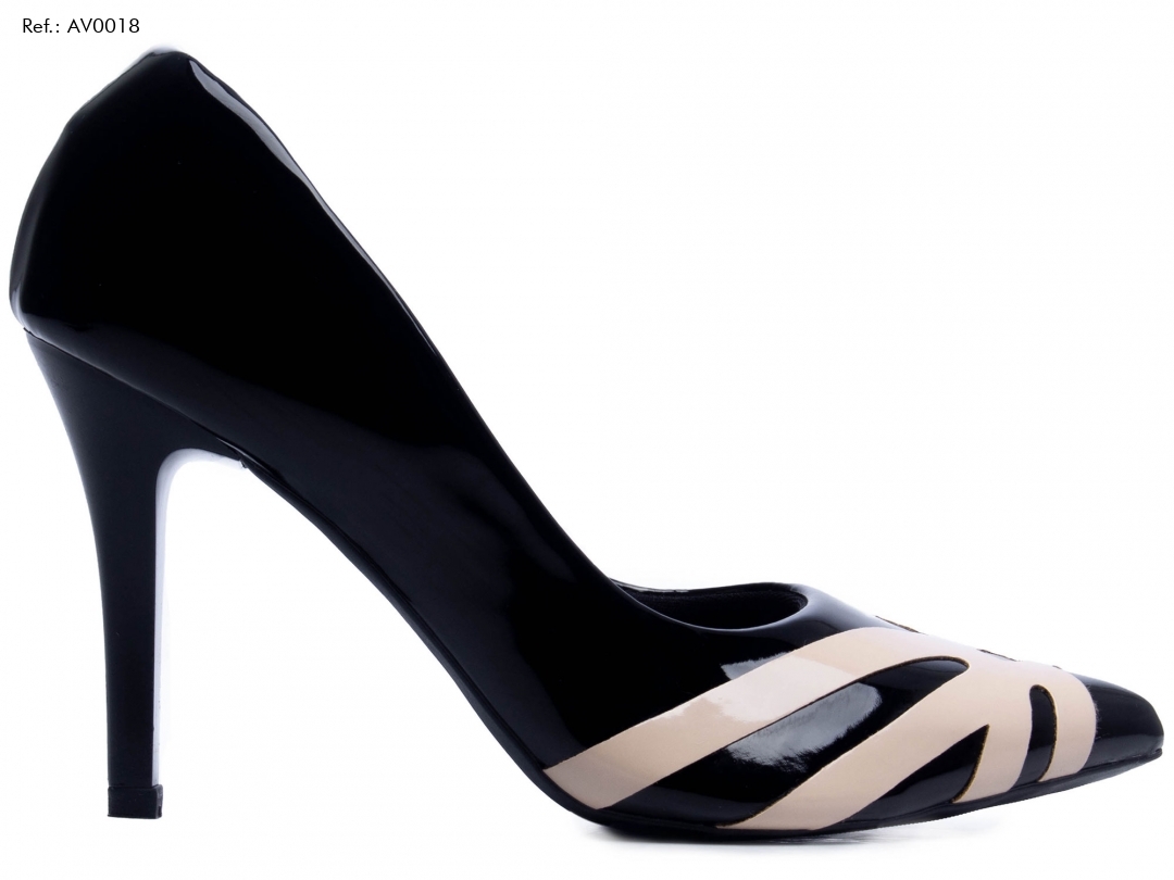 Palmilha: 8 mm de Espessura, Espuma em EVA, Revestida em Verniz Preto e Taloneira Napa Bege;