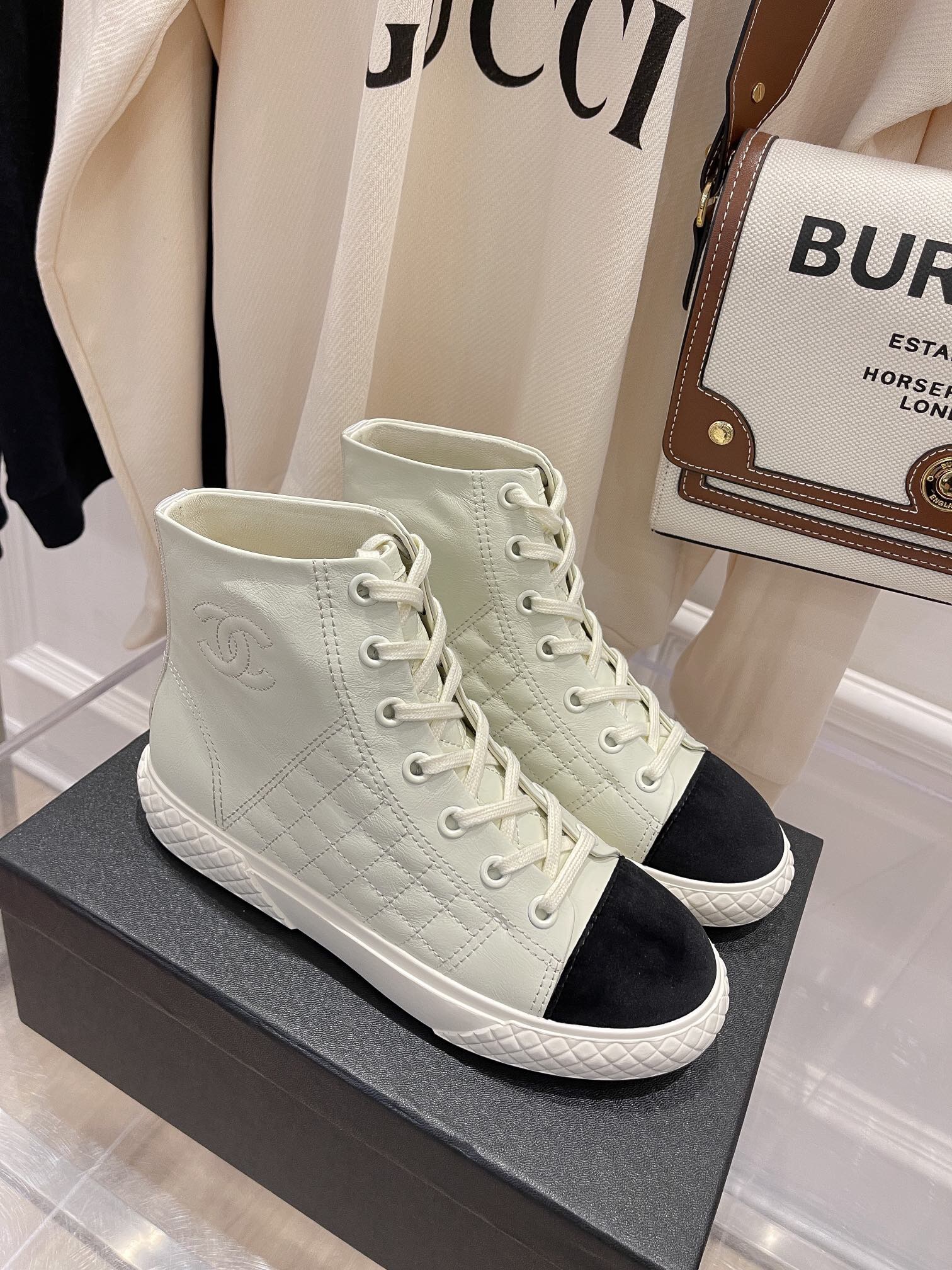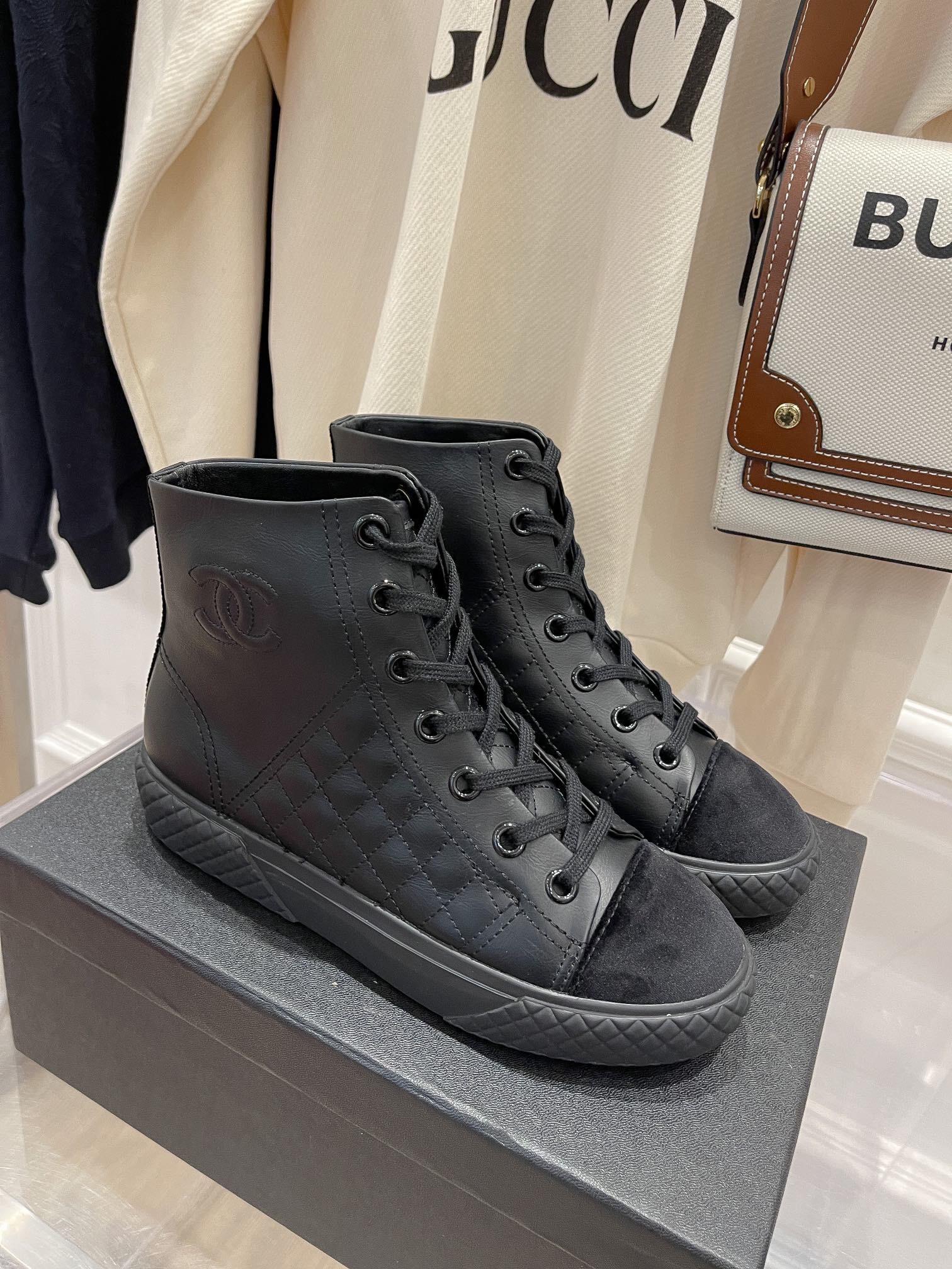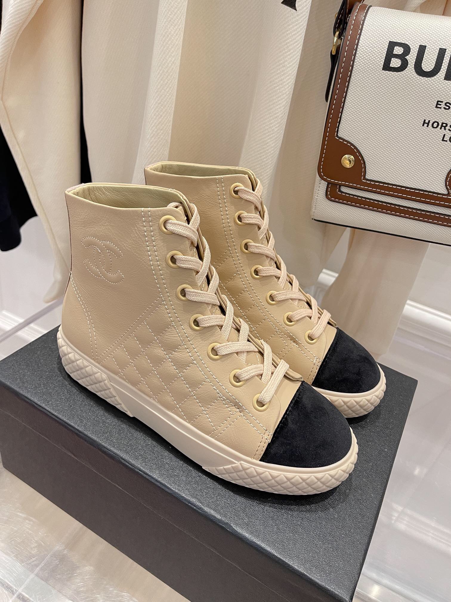 O tênis com cano médio é da marca Chanel, é possui diversas cores, para que você possa escolher a que mais combina com você.