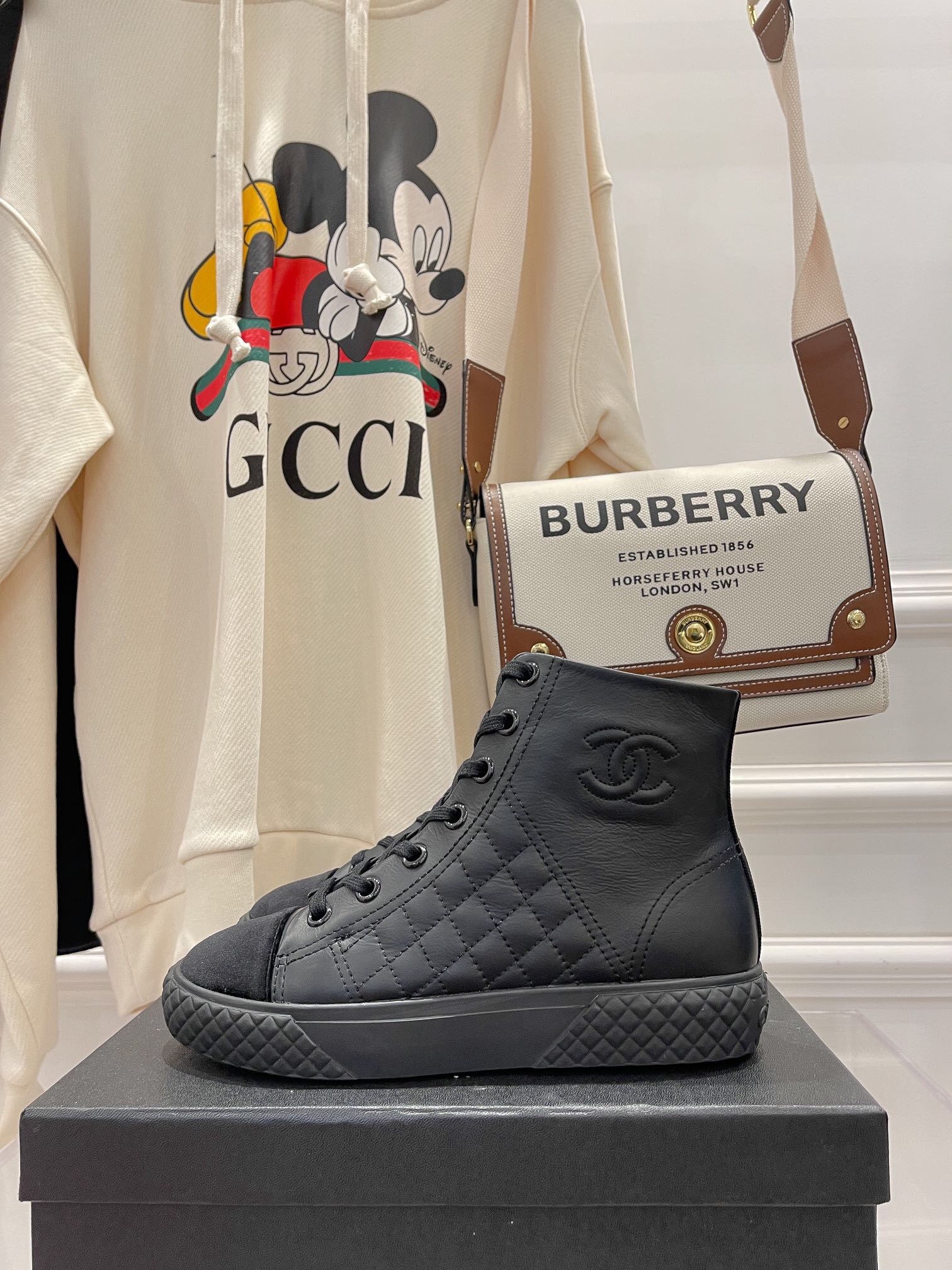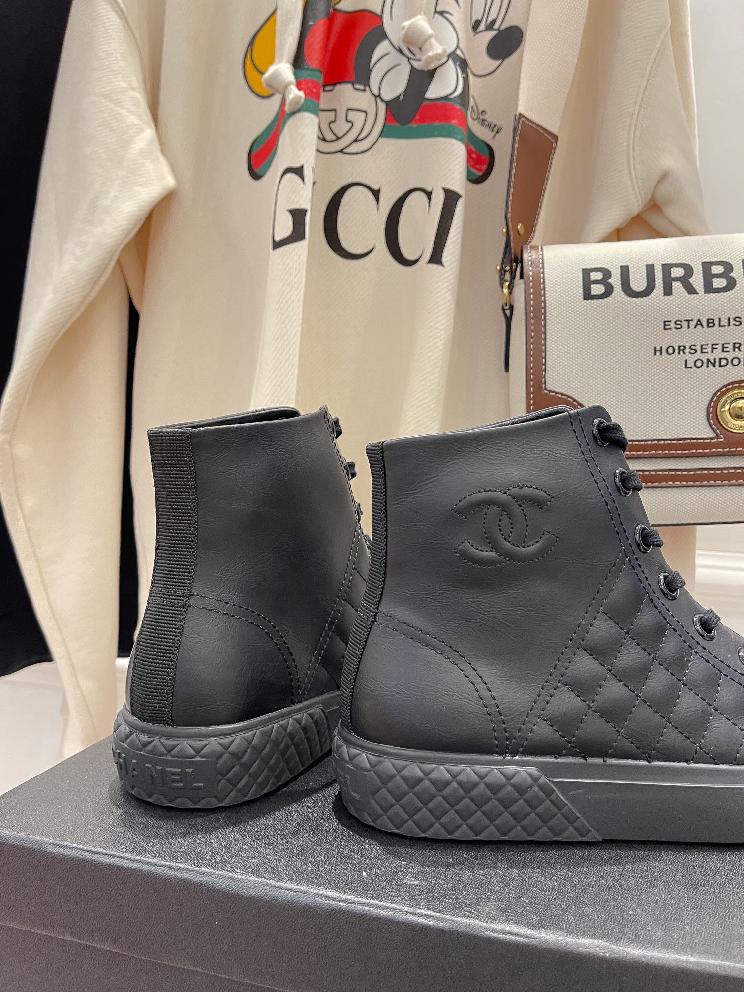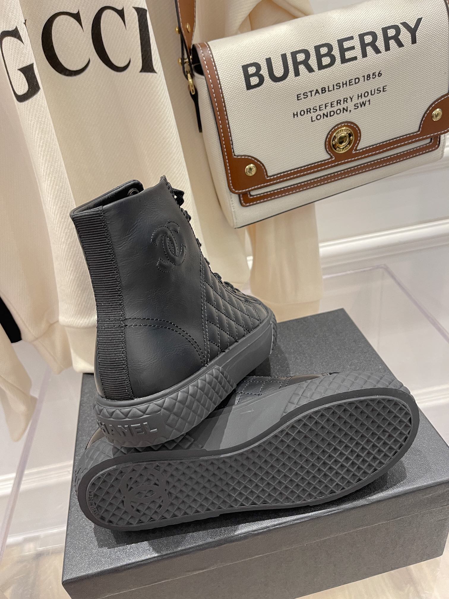 O tênis com cano médio é da marca Chanel, é possui diversas cores, para que você possa escolher a que mais combina com você.