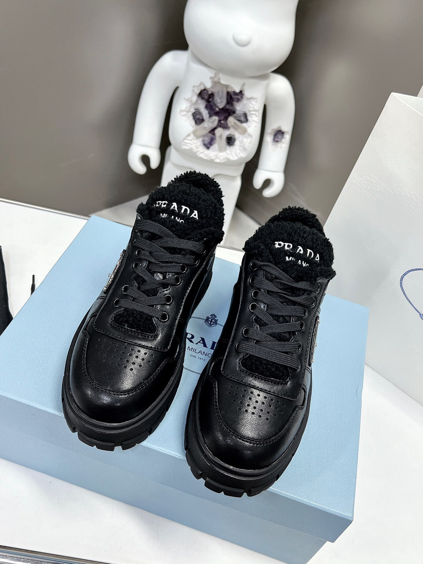 TÊNIS PRADA PLATAFORMA, MODELO COM PLUSH, SOLADO ANATOMICO EMBORRACHADO